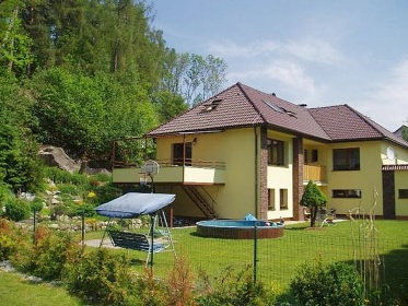 Chalupa Pod komínem s bazénem na zahradě v obci Skalná u Františkových Lázní. Ubytování Krušné hory. Objekt nabízí ubytování pro až 5 osob v celkem 2 pokojích. Vzdušný a čistý apartmán s přímým bezbariérovým výstupem do udržované zahrady se nachází v pěkném prostředí pod skálou. U domu je dětské hřiště, nadzemní bazén, venkovní terasa - klidné a slunné místo s uzamykatelným parkovištěm u objektu. Možnost snídaní nebo polopenze. Moderně vybavená kuchyně s posezením a rozkládacím dvoulůžkem, velká ložnice s jedním jednolůžkem a jedním dvoulůžkem, sociální zařízení s hydromasážním koutem, televizní koutek s LED TV, satelitní přijímač, WiFi, přímý bezbariérový výstup na zahradu s klidnou a slunnou terasou, zahradní posezení s lehátky, uzamčené parkoviště. Pro malé děti bazén a domeček se skluzavkou. Dům je na okraji obce, v údolí potoka Sázek, přímo na cyklotrase č. 36, kousek od lesa, rybníka a přírodního parku Kamenné vrchy. Hostům jsou k dispozici všechny služby nabízené naším 150 metrů vzdáleným penzionem a restaurací Pod Komínem: Možnost snídaní, polopenze nebo plné penze. Poloha v krásném prostředí lesoparku je dětské hřiště se skluzavkami, pískovištěm a houpačkami. Ohniště s posezením, gril, zastřešený bazén, kulečník, masáže. Možnost zapůjčení horských kol, dětské postýlky s ložním vybavením. Zajistíme jízdy na koních. V okolí doporučujeme: Snadno lze dosáhnout bažinaté rezervace SOOS u Františkových lázní (UNESCO), vyhaslé sopky Komorní hůrka, jezera Amerika, Mariánských lázní, lázní Kynžvart, Karlových Varů, Lokte, Bečova a nebo na německé straně "přes kopečky" městečka Schönberg s krásným zámkem a kostelem, lázní Bad Brambach, či rozhledny Kapelenberg, ze které je výborný výhled na Chebskou pánev a Krušné hory (Klínovec).