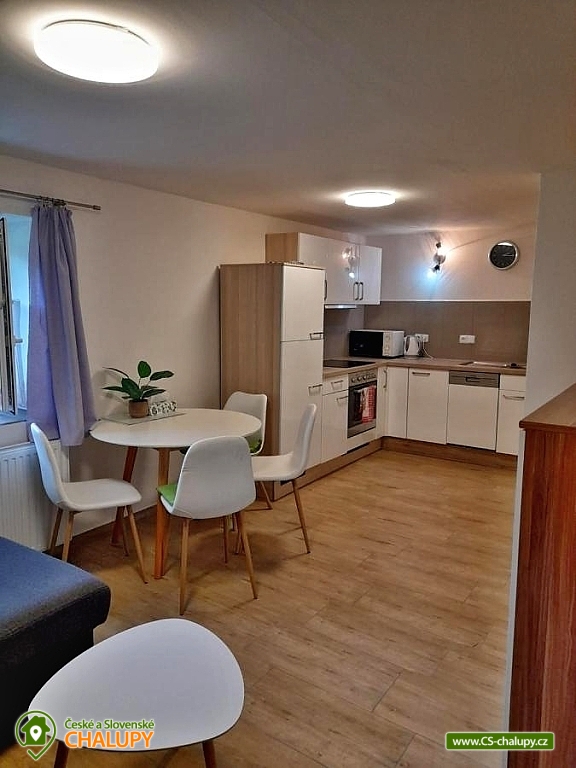Apartmánová chalupa Šumava - rekreační objekt v klidné části obce Nové Chalupy - Nová Pec, rekreační oblast Šumava a jižní Čechy - ubytování v soukromí nedaleko Lipenské přehrady, skiareál Hochficht, výborná lokalita pro letní i zimní sporty, na své si přijdou také milovníci přírody. Apartmánová chalupa nabízí k dispozici celkem 3 samostatné apartmány s kapacitou až 15 osob (3x apartmán pro 5 osob). POPIS: Všechny apartmány mají vlastní vchod, soc. zařízení, posezení s rozkládací pohovkou a kuchyň s kompletním vybavením včetně kuchyňských spotřebičů (lednice, myčka nádobí, trouba a mikrovlnná trouba). Některé apartmány mají balkon nebo patio s výhledem na hory nebo do zahrady. APARTMÁNY: Apartmán č.1 se 2 ložnicemi - Ložnice č.1: 1 manželská postel, Ložnice č.2: 2 jednolůžkové postele, Obývací pokoj: 1 rozkládací pohovka, Terasa s výhledem do zahrady a grilem. Apartmán č.2: Ložnice č.1: 1 velká manželská postel, Ložnice č.2: 2 jednolůžkové postele, Obývací pokoj: 1 rozkládací pohovka, Terasa s výhledem do zahrady a grilem. Apartmán č.3 v přízemí: Ložnice č.1: 2 jednolůžkové postele, Ložnice č.2: 1 velká manželská postel, Obývací pokoj: 1 rozkládací pohovka, krb a výhled do zahrady. K dispozici prostorná kolárna a velká zahrada. V okolí spousta cyklostezek, turistických stezek (Medvědí stezka, plavební kanál, Plešné jezero, Plechý, naučné stezky), možnost rybaření - vodní nádrž Lipno, v létě koupání, celoročně přístupný aquapark a Stezka korunami stromů. Zimní sporty: bílá stopa navazující na Šumavskou magistrálu, zimní areál Lipno a lyžařský areál Hochficht vzdálen cca 22 km. Těšíme se na Vás u nás.
