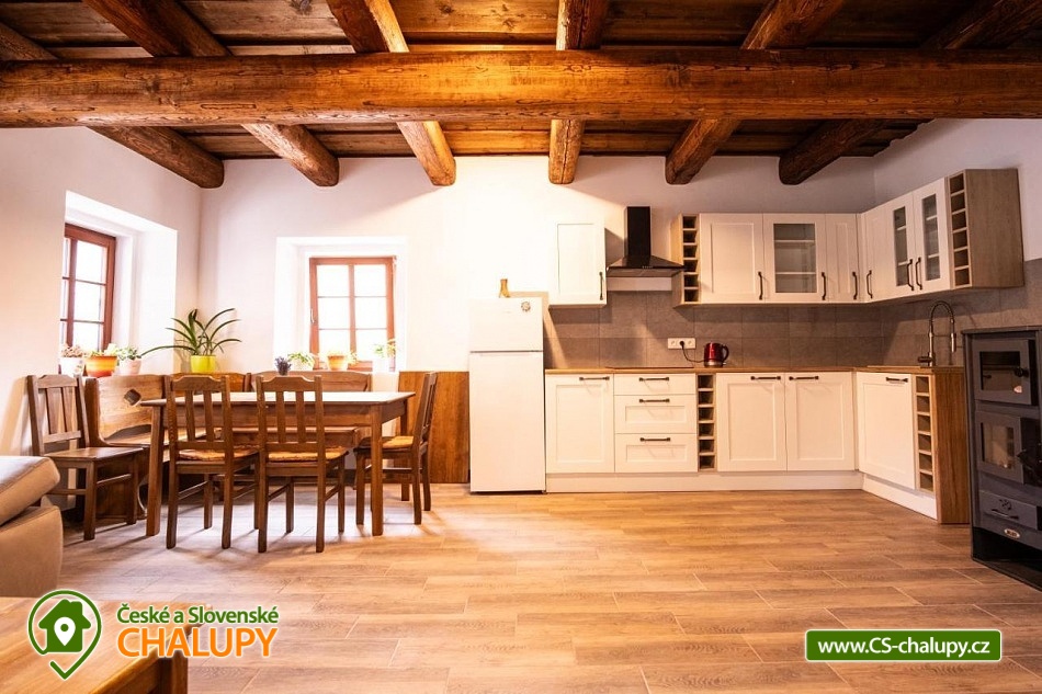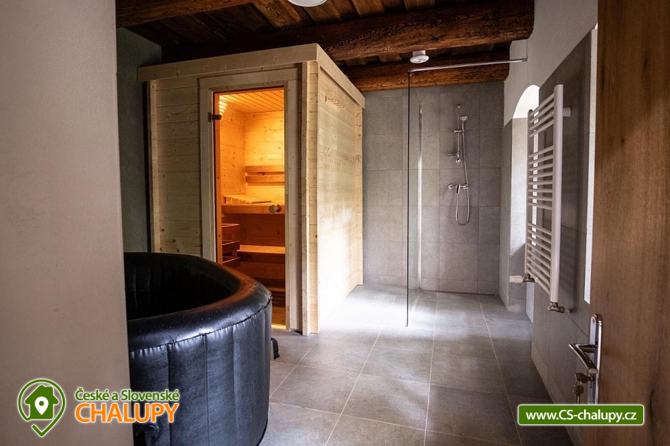 Chalupa Adršpašsko-Teplické skály s vlastním wellness nabízí ubytování pro až 16 osob ve 4 ložnicích. Poloha v obci Hejtmánkovice - Broumov nedaleko Adršpašsko-Teplických skal a polských Stolových hor. Chalupa je vhodná pro rodiny s dětmi, turisty i sportovce. Na cyklostezku se napojíte přímo u chalupy. Na zahradě je posezení i ohniště, nadzemní bazén, dětské hřiště s trampolínou, kolem domu teče potůček. Klidná část obce. Vybavení chalupy: V přízemí je velká chodba, vybavená kuchyň (kuchyňská linka, sporák, varná konvice, lednice, jídelní stůl, židle, televize). Ložnice č.1: jednolůžková postel, patrová postel a velká manželská postel. Ložnice č.2: jednolůžková postel, velká manželská postel. Ložnice č.3: manželská postel a 2 patrové postele. Ložnice č.4: 2 jednolůžkové postele. Sociální zařízení: V přízemí je koupelna s toaletou a sprchovým koutem, dále wellness, sauna vířivka a sprcha. V patře je koupelna s toaletou sprchový kout. Vytápění: Chalupa je vytápěna tepelným čerpadlem a podlahovým topením po celé chalupě. Parkování přímo u chalupy. V okolí výlety: Broumovské stěny, vyhlídka Hvězda, pískovcové skály Ostaš, Adršpašské skály (lanové centrum, vyjížďky na koních, horolezecké kurzy, půjčovna kol), Teplické skály, Police nad Metují – muzeum stavebnice Merkur, výlety a nákupy do Polska - Kudowa Zdrój, Stolové hory - Národní park Góry Stolowe, Náchod - zámek, Ratibořice - zámek, mlýn, Staré Bělidlo, Nové Město nad Metují - zámek, Opočno - zámek, Hospital Kuks. Dvůr Králové - ZOO Safari. Přehrada Rozkoš - koupání, rybaření. Předválečné pevnostní opevnění Dobrošov a Březinka (vybavená vojenskou technikou), pevnostní opevnění z 18. století Josefov s katakombami, klášter Broumov. Vyhlídkové lety - aeroklub Broumov, divadlo Hronov (Jiráskův Hronov). Těšíme se na Vás u nás.