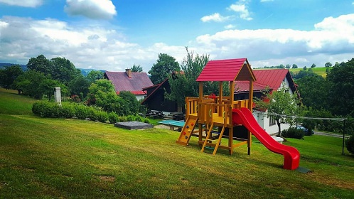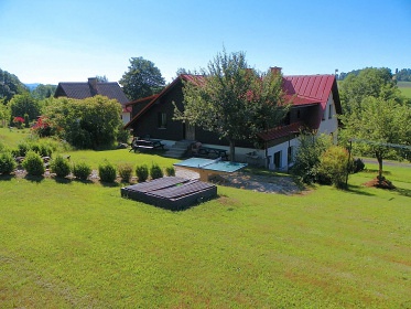 Chalupa s bazénem nedaleko areálu Kamenec - Vysoké nad Jizerou - Horní Tříč. Zastřešený bazén se slanou vodou je k dispozici v letní sezóně - 10x4 m. Hloubka 1,3 m. Chalupa k pronajmutí poskytuje ubytování pro až 18 osob v 5 ložnicích. Klidná příroda, 5 pokojů, 6 koupelen, 5 lednic, zahradní krb, dětské hřiště se skluzavkou, pískoviště. Vybavená kuchyň s myčkou, společenská místnost, wi - fi. Venkovní posezení u domu. Billiard, stolní fotbálek, šipky - zdarma. Ideální místo na dovolenou pro 3 - 5 rodin, skupinu přátel, školení, firemní teambuilding. Pronajímáme samostatně uzavřené 1. patro v rodinném domě. Majitel bydlí celoročně v přízemí (společný je pouze vchod v zimě) - denně odnáší hostům odpad, v zimě denně topí. Venkovní posezení přímo u domu. Uzamykatelná garáž na kola. V létě je k dispozici vlastní vchod. Na patře se nachází 5 vybavených pokojů. V každém pokoji najdete 3 - 4 lůžka, koberec, skříň, stůl a židle, lampičky, poličky nebo noční stolky. Wi - fi po celém objektu. Z každého pokoje je vchod do vlastní koupelny. + k zapůjčení je 1 dětská postýlka a 1 dětská krmící židlička. Sociální zařízení: Na každém pokoji se nachází sociální zařízení (sprcha, WC, umyvadlo) + 6.koupelna je společná na chodbě (WC + vana). Pro 5 pokojů tedy máme 6 koupelen. Topení je ústřední a zajišťuje ho majitel. Parkoviště u domu je zdarma = 6 parkovacích míst. Společenská místnost, vybavená kuchyně (2 sporáky, myčka, mikrovlnka, automatický kávovar Krups na zrnka, kávovar na kapsle DOLCE GUSTO, kávovar, varné konvice, 2x topinkovač, toustovač, nádobí). Celoročně: herna - stolní fotbálek, elektronické šipky a billiard - využití všech uvedených zařízení je samozřejmě zdarma. Wi - fi po celém objektu zdarma. Léto: Zahradní krb, gril, ohniště. Venkovní posezení přímo u domu. Venkovní stolní tenis. Houpačka, pískoviště. Dětské hřiště (pro děti ve věku 3 - 12 let) je k dispozici od 1.dubna do září. Ubytování v soukromí, v klidné přírodě. Skiareály: Kamenec - (300 metrů od domu do mírného kopce k horní části vleku, zpět je možné přijet v případě dobrých sněhových podmínek na lyžích až k domu - Jablonec nad Jizerou), Šachty, Petruškovy vrcha- 2 km autem (Vysoké nad Jizerou). Pro běžkaře je zde více než 35 km značených a upravovaných běžeckých tratí. Sáňkovat či bobovat, případně stavět sněhuláky je možné přímo u domu na loukách. Uzamykatelná garáž na lyže, sáňky a boby. Další lyžařské vleky jsou například v Pasekách nad Jizerou (7 km), Rokytnici nad Jizerou (9 km) nebo v Harrachově (17 km).