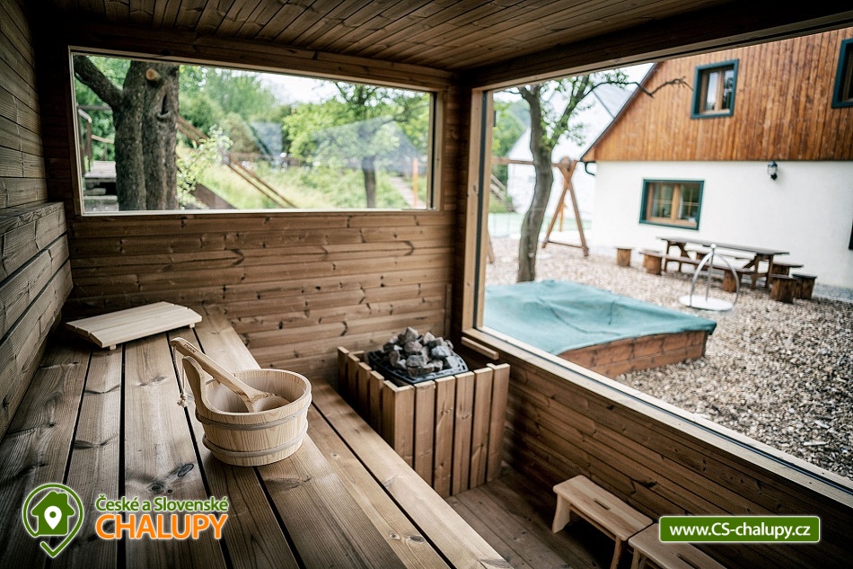 Luxusní chalupa s vyhřívaným bazénem, saunou a koupacím sudem se nachází v podhůří Jeseníků a Rychlebských hor v obci Vápenná. Je vhodná pro rodiny s dětmi, větší skupiny, firmy nebo aktivní sportovce. Nabízí ubytování až pro 20 osob v 5 čtyřlůžkových ložnicích. Ve dvou ložnicích najdete vždy dvoulůžko a palandu, v dalších dvou dvoulůžko a 2x jednolůžko. Poslední ložnice je umístěna v podkroví, kde najdete čtyři jednolůžka. Možnost zapůjčení dětské postýlky. K dispozici je obývací místnost s velkou pohovkou, krbovými kamny, velkým jídelním stolem a plně vybavená kuchyň (3x lednice a mrazák, varná deska, trouba, rychlovarná konvice, mikrovlnná trouba, myčka, kávovar Dolce gusto a výčepní zařízení). Dále je k dispozici společenská místnost s posezením a videoprojekcí na plátno s moderním dynamickým reproduktorem Blaupunkt Bluetooth USB se dvěma mikrofony. Najdete zde také šipky, fotbálek a dětský koutek s hračkami. Sociální zařízení zahrnuje tři moderní koupelny s umyvadlem, sprchovým koutem a tři samostatné WC. K dispozici také pračka a Wi-Fi připojení. Celý objekt má podlahové vytápění, přímotopy a zářiče v pokojích, a navíc lze zatopit v krbových kamnech umístěných ve společenské místnosti. Parkování je možné přímo u chalupy. Možnost nabíjení elektroaut a elektokol. V sousedící stodole se nachází prostorná lyžárna sloužící rovněž jako prostor pro uschování kol a jiného vybavení. V prostorách můžete pořádat také turnaje ve stolním tenise. Na dlážděné terase obklopující celou chalupu je pohodlné posezení, na zahradě luxusní vyhřívaný sud pro dokonalý relax především v chladnějším období. Na zahradě je také k dispozici vyhřívaný bazén a vyhřívaný přístřešek s prostorným posezením, velkoplošnou televizí a přenosným grilovacím ohništěm. Hned vedle možnost posedět u klasického ohniště. Přímo před chalupou se nachází multifunkční hřiště a dětské hřiště s pískovištěm. Nesmíme zapomenout ani na luxusní finskou saunu s proskleným výhledem včetně ochlazovací kádě a závěsného vědra. Z chalupy lze rovnou vyrazit po turistických stezkách. V zimě jsou dostupné blízké špičkové sjezdovky, běžecké tratě a v létě pro změnu cyklostezky a úžasné bikeparky. Tipy na výlety: Lví hora, vodopády Stříbrného potoka, Nýznerovské vodopády, zřícenina hradu Kaltenštejn, vyhlídka Medvědí kámen, kontaktní ZOO Faunapark, Obří skály. Možnosti koupání: v lesích za chalupou lom Vycpálek, lom Rampa. Dále pak koupaliště nebo bazén Priessnitz Jeseník. V zimě najdete v okolí upravované běžecké trasy rozkládající se nedaleko skiareálu v Ramzové poblíž chaty Paprsek. Další například na Červenohorském sedle. Přímo v Rychlebských horách najdete také mnoho dalších běžkařských stop. Blízká lyžařská střediska: ski areál Miroslav - Lipová-Lázně, skiareál Lázeňský vrch, Na Smrťáku - Jeseník, Kovárna - Horní Lipová, skiareály Ramzová. Těšíme se na Vás u nás.
