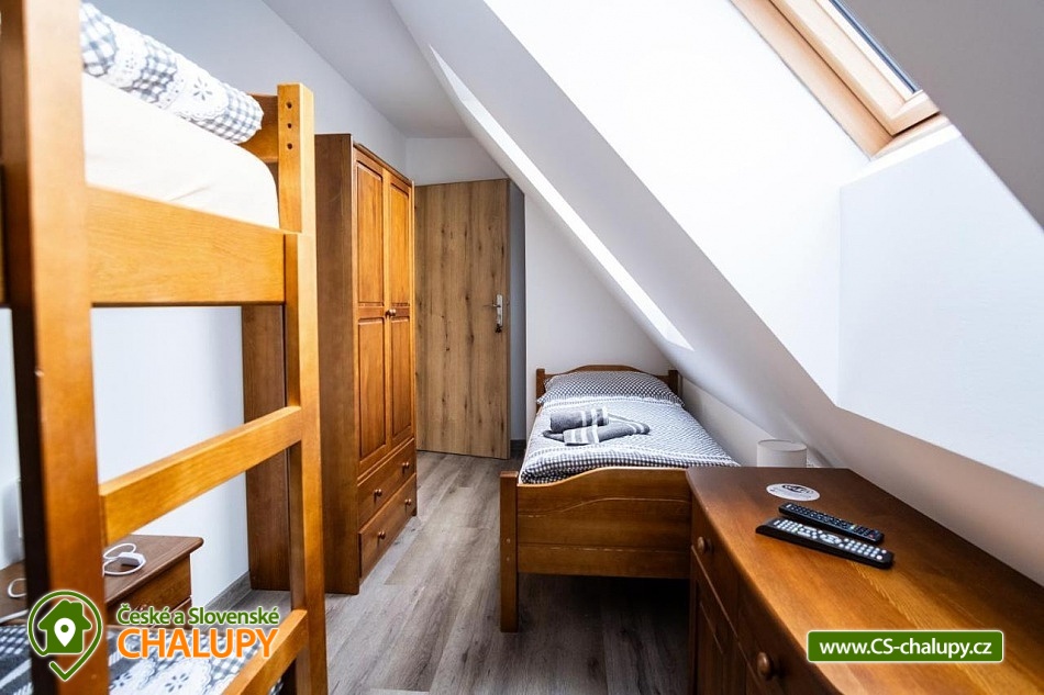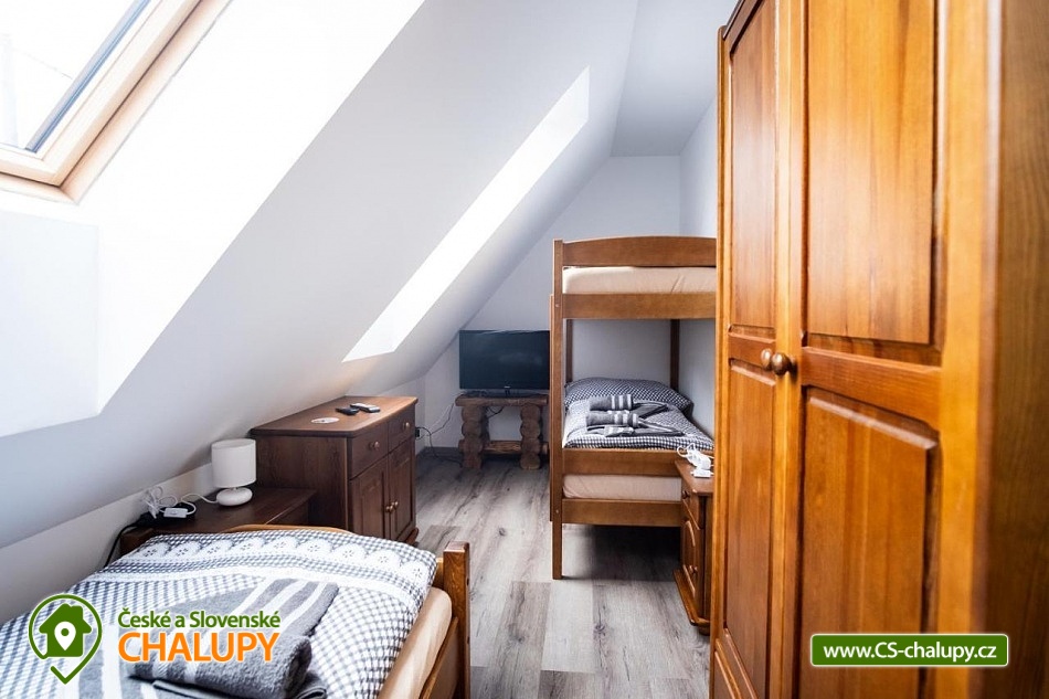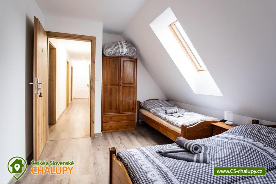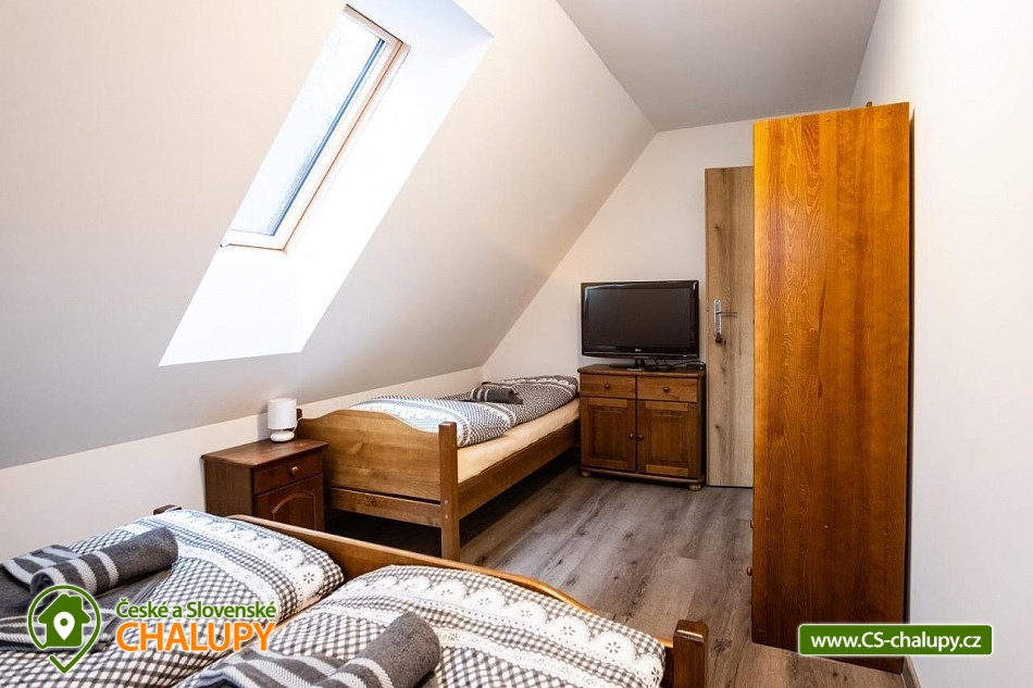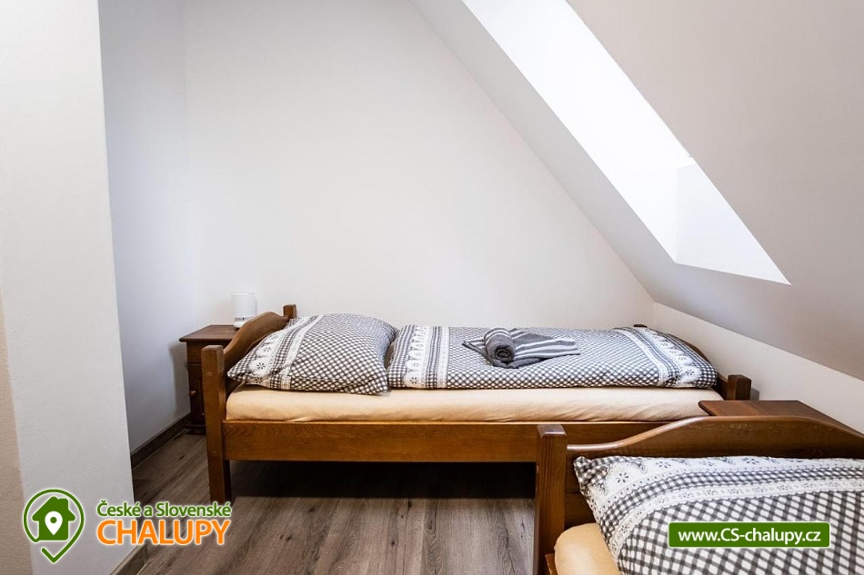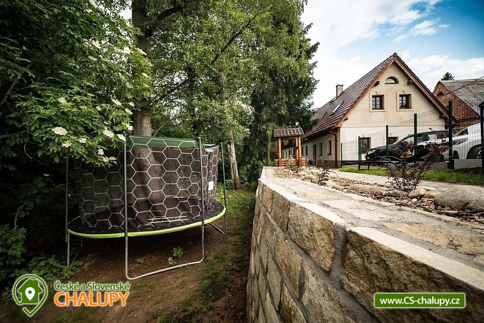 Chalupa Broumovsko s vlastním wellness nabízí ubytování pro až 11 osob ve 4 ložnicích. Poloha v obci Hejtmánkovice nedaleko Adršpašsko - Teplických skal a polských Stolových hor. Chalupa je vhodná pro rodiny s dětmi, turisty i sportovce. Na cyklostezku se napojíte přímo u chalupy. Na zahradě je kryté posezení s ohništěm, nadzemní bazén, dětské hřiště s trampolínou, kolem domu teče potůček. Klidná část obce. Vybavení chalupy: V přízemí je velká chodba, vybavená kuchyň (kuchyňská linka, sporák, varná konvice, lednice, jídelní stůl, židle, televize). Ložnice: 1. pokoj: 3 osoby, 2. pokoj 3 osoby, 3. pokoj 3 osoby a 4. pokoj 2 osoby. Sociální zařízení (2x koupelna a 2x wc): V přízemí je koupelna s toaletou a sprchovým koutem, dále wellness, sauna vířivka a sprcha. V patře je koupelna s toaletou sprchový kout. Vytápění: Chalupa je vytápěna tepelným čerpadlem a podlahovým topením po celé chalupě. Parkování přímo u chalupy. V okolí výlety: Broumovské stěny, vyhlídka Hvězda, pískovcové skály Ostaš, Adršpašské skály (lanové centrum, vyjížďky na koních, horolezecké kurzy, půjčovna kol), Teplické skály, Police nad Metují – muzeum stavebnice Merkur, výlety a nákupy do Polska - Kudowa Zdrój, Stolové hory - Národní park Góry Stolowe, Náchod - zámek, Ratibořice - zámek, mlýn, Staré Bělidlo, Nové Město nad Metují - zámek, Opočno - zámek, Hospital Kuks. Dvůr Králové - ZOO Safari. Přehrada Rozkoš - koupání, rybaření. Předválečné pevnostní opevnění Dobrošov a Březinka (vybavená vojenskou technikou), pevnostní opevnění z 18. století Josefov s katakombami, klášter Broumov. Vyhlídkové lety - aeroklub Broumov, divadlo Hronov (Jiráskův Hronov). Těšíme se na Vás u nás.