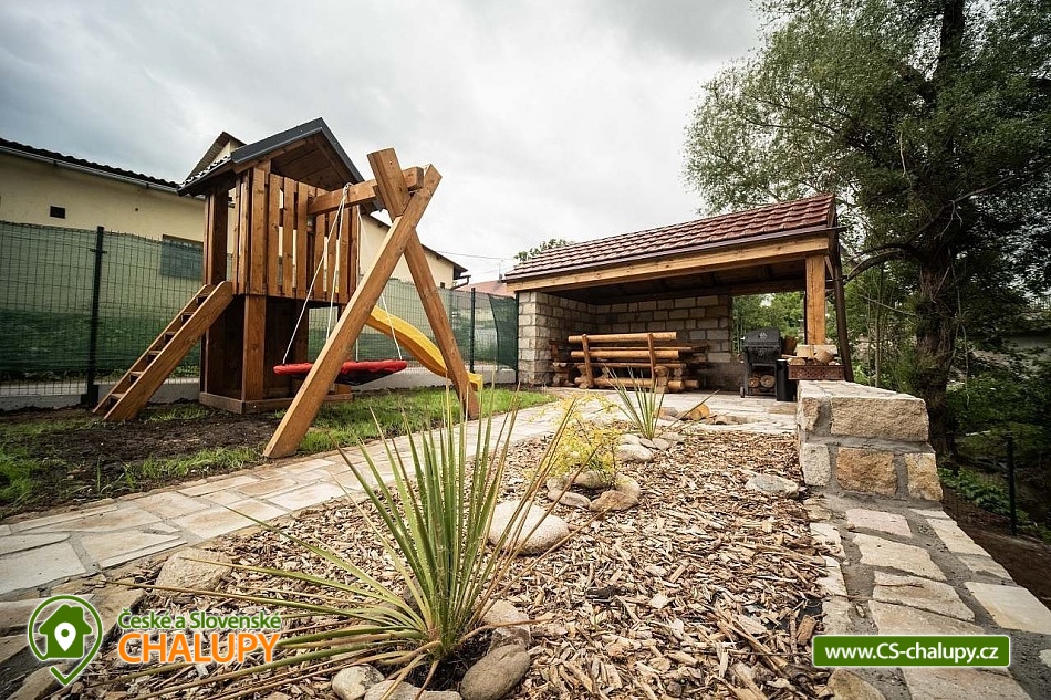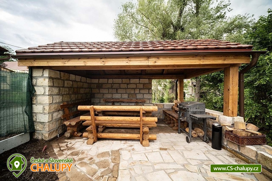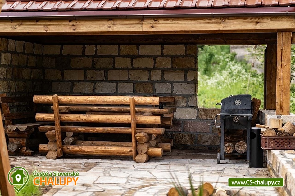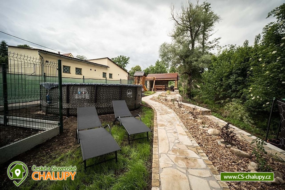„Chaloupka Vižňov - Meziměstí - bazén, sauna a koupací sud.“