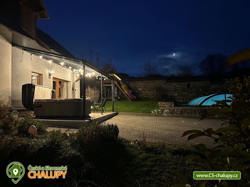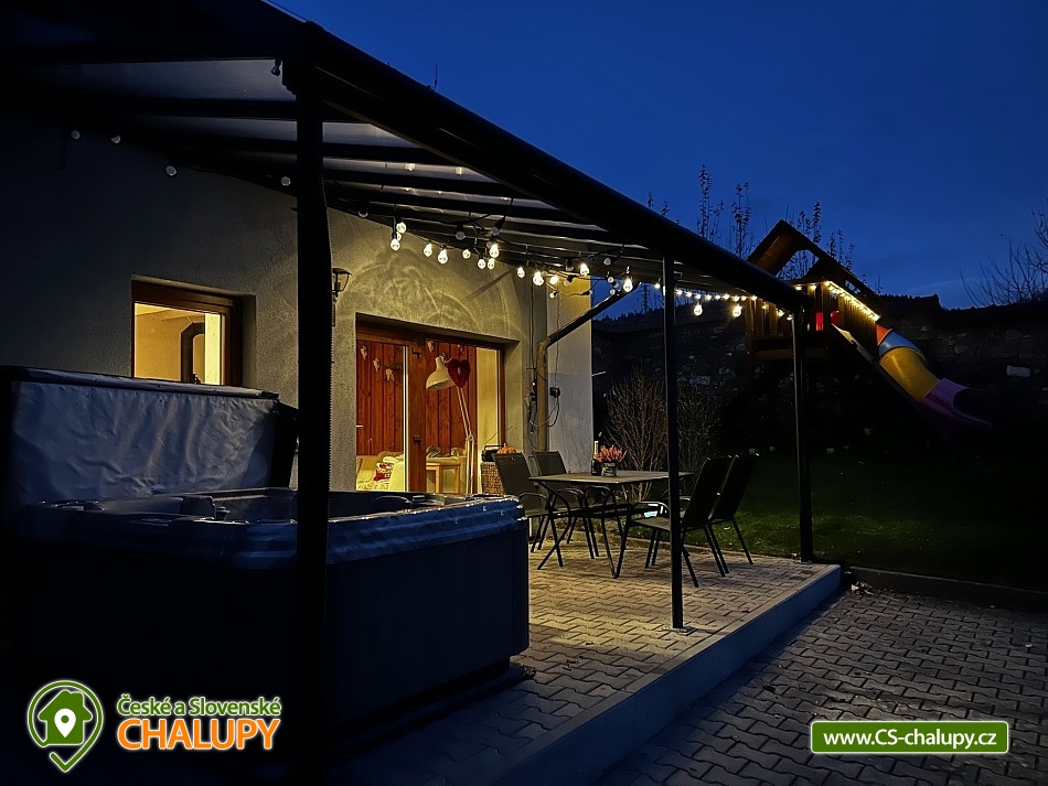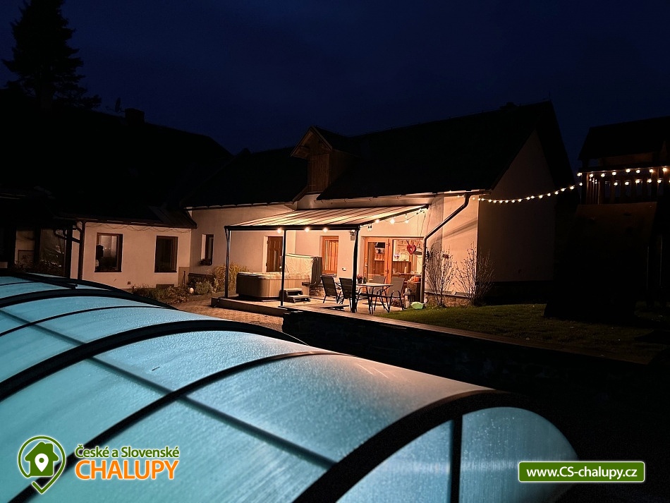 „Chalupa s venkovní vířivkou a bazénem u Bukové hory - Orlické hory.“