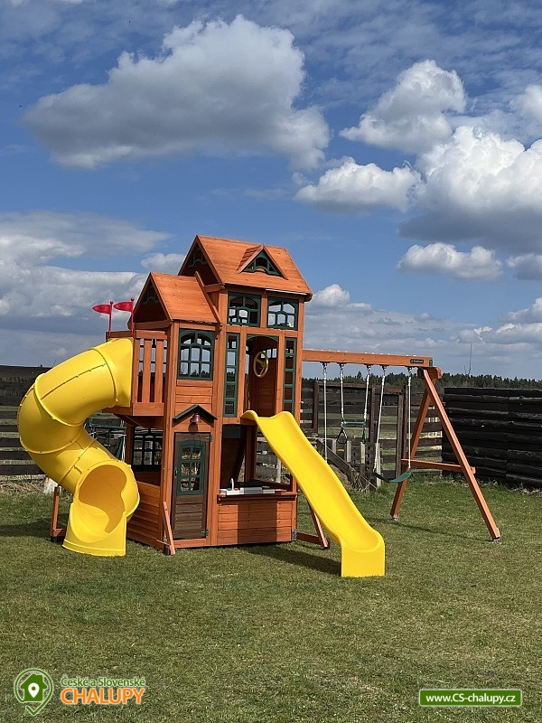 Chalupa s wellness Třeboňsko - jihočeská stylová novostavba chalupy v CHKO Třeboňsko - jižní Čechy. V objektu se nachází plně vybavený apartmán pro až 8 osob s vlastním wellness, venkovním krytým posezením, zahrádkou, kolárnou a parkováním střeným kamerovým systémem. Apartmán zahrnuje: vlastní wellness, společenskou místnost s kuchyní, 4-mi útulnými ložnicemi (čtyři oddělené pokoje s manželskou postelí), koupelnu s WC, samostatné WC, kryté venkovní posezení se zahrádkou, kolárnou a parkováním. Sociální zařízení: koupelna a dvě WC, jedno v samostatné místnosti, druhé v koupelně. Možnost osprchovat se máte na dvou místech. Jedno je ve wellness místnosti, druhé v koupelně. K dispozici jsou ručníky a osušky. Koupelna je vybavena pračkou a fénem na vlasy. Vytápění: Všechny místnosti jsou vytápěny podlahovým topením. Podkroví je navíc vybaveno klimatizací. Další vybavení: italská vířivka Jacuzzi pro šest osob, finská sauna pro dvě až čtyři osoby, xBox se smart TV, kávovar, myčka nádobí, venkovní plynový gril, venkovní třífázová zásuvka pro nabíjení elektroaut. Okolí: Přímo v obci naleznete hospodu, venkovní bar, dětské a multifunkční hřiště. A protože se nacházíte na Třeboňsku, tak rybářství, lázeňství, cyklistika a koupání je na dosah ruky. Ke koupání doporučujeme nedaleké Cepské pískovny s průzračně čistou vodou. Jestli máte rádi cyklistiku, tak nenáročný terén a hustá sít stezek mezi rybníky je vhodný i pro méně zdatné cyklisty. Těšíme se na Vás u nás.