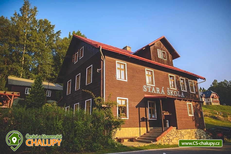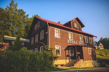 Chalupa Stará škola se nachází v malebné obci Strážné nedaleko místního náměstí v nadmořské výšce 800 m na pomezí Krkonošského národního parku. V chalupě je Vám k dispozici komfortní ubytování s celkovou kapacitou 28 lůžek v celkem 8 pokojích s vlastním sociálním zařízením a WC (1x dvoulůžkový, 2x třílůžkový a 5x čtyřlůžkový). Po celou dobu pobytu je Vám volně k dispozici velká jídelna s kuchyní a krbem. V plně vybavené kuchyni naleznete dvě lednice s mrazákem, myčku, plynový sporák, mikrovlnku, varnou konvici, mixer, toustovač. Dále je Vám k dispozici bar, společenská místnost s kulečníkem, šipkami a finskou saunou. Myslíme i na ty nejmenší hosty, takže je v chalupě k dispozici dětská postýlka a jídelní židlička. Samozřejmostí je WiFi připojení. U chalupy je možné parkovat až 15 aut. Minimální délka pobytu v období sezóny léto (červenec-srpen) je 7 dní, přičemž nástupním dnem je sobota 16:00, ukončení pobytu je rovněž v sobotu v 10:00. V mimosezónních měsících (květen, červen, září, říjen) je možné objednávat i prodloužené víkendové pobyty s minimálním počtem nocí 3 (nástupní den čtvrtek 16:00, odjezd neděle 10:00). Okolí a zážitky: Chalupa se nachází v krásné přírodě a je skvělým místem pro turistiku a cykloturistiku. Krkonošská města a obce nabízí široké množství aktivit a služeb, které zaručeně oceníte s rodinou i partou přátel. Krkonoše jsou protkány tisícovkou pěších tras, které vám umožní poznat zajímavá místa s nezapomenutelnými výhledy, jako je například Stezka korunami stromů. Cyklostezky mají různou obtížnost, jsou dobře značeny a vybaveny orientačními mapami a odpočinkovými místy. Nenechte se odradit velkým převýšením a náročností tras. Určitě lze vybrat i takové, které odpovídají vašim představám a fyzickým možnostem. Těším se na Vaši návštěvu! Milan, majitel Chalupy Stará Škola.