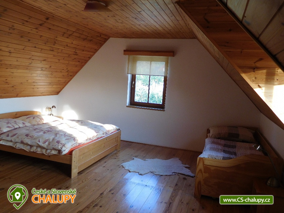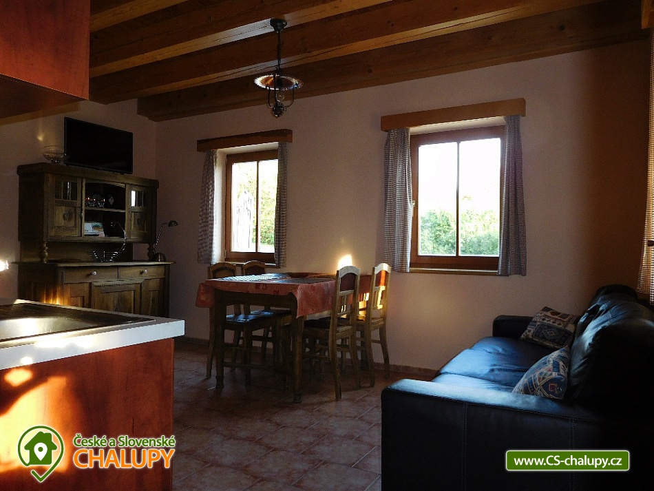 Chalupa u hradu Trosky - Zlatá stezka Českého ráje. Chalupa disponuje dvěma samostatnými apartmány umožňující pobyt jedné nebo dvou rodin s rozsáhlým zázemím kolem objektu. Pronajímat lze jak celý objekt tak jednotlivé apartmány. Kapacita apartmánů se samostatným vchodem je 10 osob (5 + 5 osob). Panorama objektu tvoří výhled do údolí s Podtroseckými rybníky a kulisou hradu TROSKY tyčící se nad terasou včetně nočního nasvícení hradních věží. Dva samostatné apartmány přímo pod hradem Trosky u Zlaté stezky Českého ráje. Vybavení objektu - Každý apartmán má plně vybavenou obývací kuchyň, ložnici, která je umístěna v podkroví (po domluvě je možné umístění dětské postýlky), dále koupelnu s WC a předsíň se šatnou. Navazuje zastřešená terasa, která je vybavena stylovými selskými sety. Součástí vybavení je venkovní gril a zázemí pro děti (pískoviště, houpačky a velký oplocený prostor pro dětské hry a sportovní vyžití). K ubytovacímu objektu patří hospodářská budova, kde je místnost ke společnému posezení a hrám, vybavená LCD televizorem. Zároveň je zde malá letní kuchyň a dostatečný prostor pro uložení kol a ostatní vybavení. Pokoje: kuchyň - lednice, mikrovlnná trouba, varná konvice, varná jednotka, dále je vybavena veškerým nádobím, jídelní kout, pohovka, televize koupelna + WC - sprchový kout, umyvadlový set, - teplá voda ložnice - dvoulůžko, + 2x válenda, noční stolky se světly, vybavena povlečením. Ložnice – vybavení je včetně kompletního povlečení všech lůžek. Na výletech pěšky nebo na kole budete okouzleni scenérií pískovcových skal, malebných údolí se spoustou rybníků a nezapomenutelných výhledů do kraje. Na malém území České ráje na Vás čeká množství hradů, zámků, muzeí a spousta krásných výletních restaurací s příjemným posezením. V okolí doporučujeme: Zámek - Sychrov, Hrubý Rohozec, Hrubá Skála, Kopicův statek - pískovcové sochy vytesané do skal, Chov koní - farma Borčice, Lázně Sedmihorky, Rozhledna Kozákov s výhledem do dalekého okolí včetně hřebenů Krkonoš, Obrácené zvony na zvonici v Rovensku pod Troskami, Skalní město - pískovcové skály s vyhlídkami do okolí, Hrad Kost, Valdštejn, Muzeum panenek v Troskovicích, Hrad Trosky, Jinolické rybníky, Prachovské skály, Přírodní zábavný park ,,Šťastná země" pro děti i dospělé, Lovecký zámeček Humprecht, Údolí Podtroseckých rybníků.