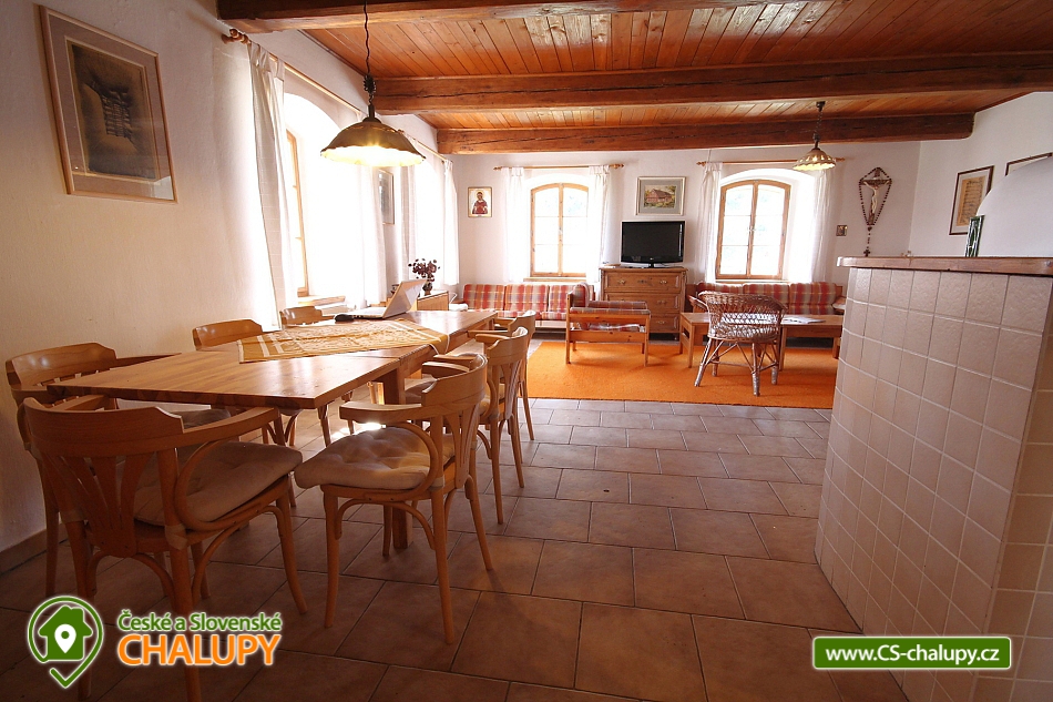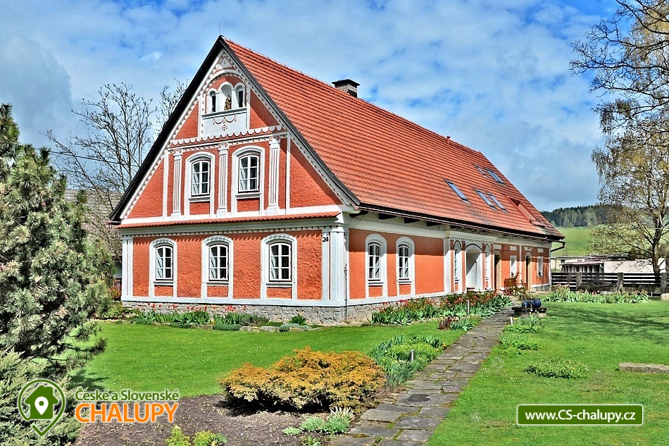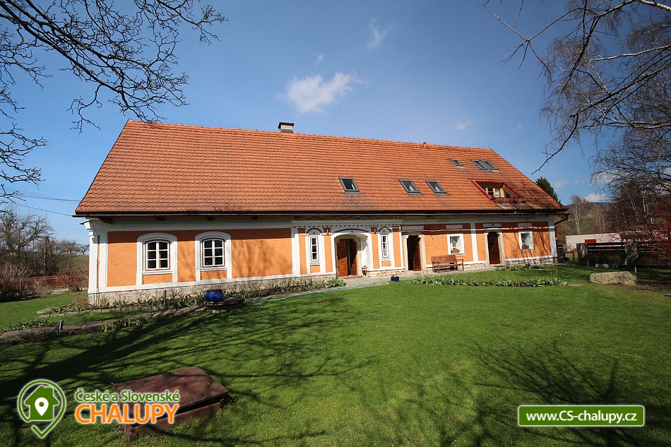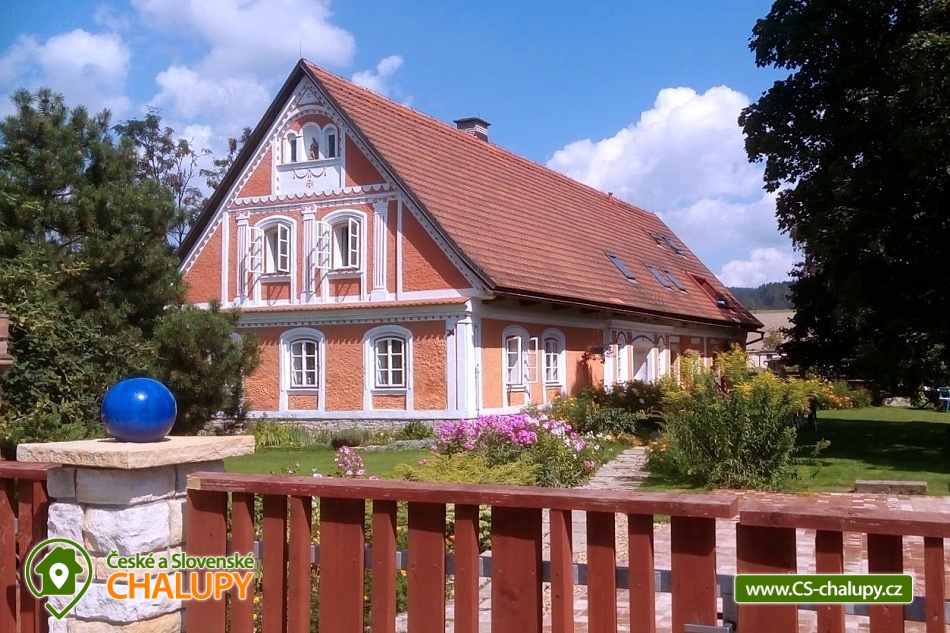Wellness apartmánová chalupa s vnitřním bazénem na rozhraní Krkonoš a Orlických hor. Chalupa s bazénem a saunou - Rtyně v Podkrkonoší, Malé Svatoňovice, v blízkosti Adršpašské skály. Komfortně vybavená chalupa v oplocené zahradě s krytým a temperovaným bazénem, saunou, stolním tenisem a Wi-Fi na úpatí Jestřebích hor. Objekt se sestává ze 2 apartmánů (4 osoby + 12 osob) a části zvané studio (8 osob). Objekt možno pronajmout jako celek z důvodu zachování soukromí klientů v objektu, nebo možno pronajmout jednotlivé části objektu samostatně. V objektu je 1x apartmán s vlastním vchodem - 4 lůžka (dvoulůžko a 2 lůžka na rozkládacím gauči), TV, vybavená kuchyňka, stůl, židle a soc. zařízení (sprcha, WC, automatická pračka). Druhá apartmán má taktéž vlastní vchod a zahrnuje centrální obytnou místnost s krbem, jídelní kout a malou tzv. čajovou kuchyňkou, další samostatná kuchyně je plně vybavená včetně myčky nádobí. V přízemí ložnice se 2 lůžky (dvoulůžko), v patře ložnice se 6 lůžky (dvoulůžko a 4 samostatná lůžka), 4 přistýlky jsou možné v obytné hale v patře na pohodlných rozkládacích křeslech. Sociální zařízení zahrnuje v části zvané chalupa koupelnu s vanou a WC, druhé WC, sprchu bidet a automat. pračku. V patře objektu je studio s vlastním vchodem z opačné strany objektu. Toto studio zahrnuje centrální obytnou místnost se sedací soupravou, kterou je možné rozložit na pohodlné dvoulůžko (bráno jako 2 přistýlky), kuchyň je plně vybavená včetně myčky nádobí. Na obytnou místnost navazuje koupelna s vanou, jídelna a ložnice s dvoulůžkem a rozkládací sedací soupravou (bráno jako 2 přistýlky). Na jídelnu navazuje koupelna se sprchovým koutem a WC. Z obytné místnosti je přístup do další ložnice o patro výš s dvoulůžkem a WC s umyvadlem. V objektu je centrální plynové topení. V objektu je možnost uschování kol a lyží. Na zahradě je posezení s grilem, pískoviště pro děti a stolní tenis. U chalupy je krytý zapuštěný 8,5 m dlouhý bazén s ohřevem tepelným čerpadlem (provoz bazénu od 1.6 do 15.9.), který je stylově řešen v prostoru stodoly (stodola nemá vytápěný interiér) a dále k dispozici vedle bazénu sauna. Parkování je možné na vlastním oploceném pozemku.