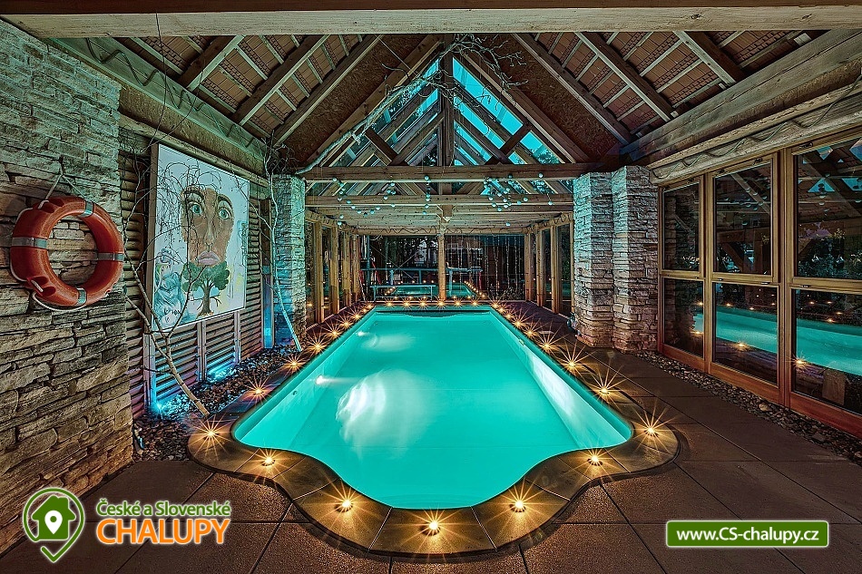 „Luxusní apartmánová chalupa se saunou a krytým vyhřívaným bazénem.“