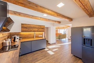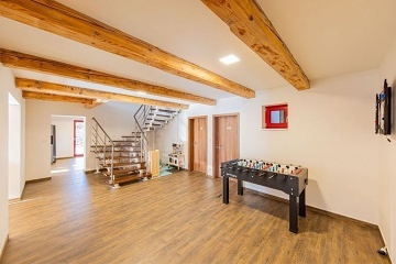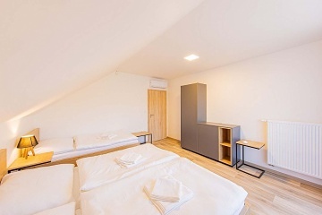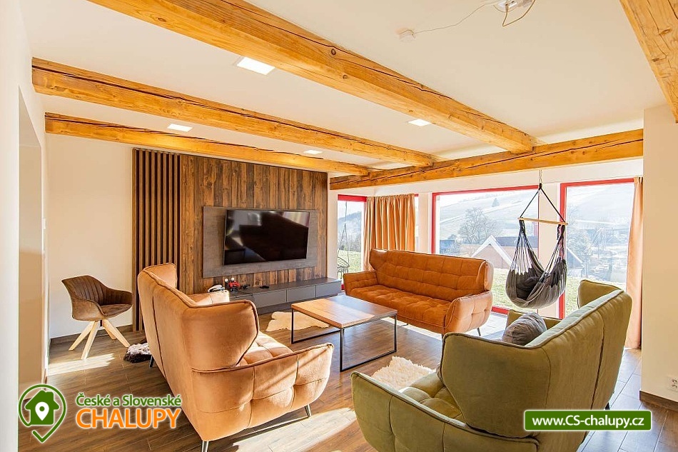 Wellness chalupa s bazénem se nachází v samém srdci Jeseníků v malé vesničce Komňátka, která je součástí obce Bohdíkov u města Šumperk. Ubytování je ideální pro všechny milovníky přírody. Blízké okolí je protkané řadou překrásných turistických a cyklistických tras a nedaleko jsou lyžařské areály. Těšit se můžete na venkovní bazén, saunu a vířivku. Komfortně zařízená Chalupa nabízí ubytování pro až 15 osob v 6 ložnicích, celkem je k dispozici 3x třílůžková ložnice (manželská postel a jednolůžko) a 3x dvoulůžková ložnice (manželská postel). Po domluvě možnost dalších pěti přistýlek. Dětská postýlka je k zapůjčení. Ke společným chvílím slouží obývací místnost se sedací soupravou a s TV s T - Mobile TV a Netlfixem pro filmové večery a s PS4 s virtuální realitou pro hráče. Na obývací místnost navazuje plně vybavená kuchyň (varná deska, rychlovarná konvice, mikrovlnná trouba, lednička, myčka nádobí, toustovač a kávovar) a jídelní část s posezením pro 12 osob. Dětská židlička je k dispozici. V předsíni je připravený dětský koutek, stolní fotbal a šipky. K zapůjčení jsou společenské hry. Sociální zařízení zahrnuje tři koupelny se sprchovým koutem a WC. V celém objektu je k dispozici WIFI připojení na internet. Kolem chalupy se rozléhá travnatá zahrada. Posedět lze na zastřešené terase s grilem nebo u ohniště. K dispozici je navíc také další venkovní gril. Odpočívat lze v závěsné houpačce nebo v lehátkách. K relaxu také slouží venkovní finská sauna pro 6 osob, koupací sud s vířivkou s výhledem do okolní krajiny nebo venkovní bazén. Děti se mohou těšit na venkovní dětské hřiště s prolézačky, skluzavkou, houpačky a trampolínou. Pro chvíle zábavy také slouží sportovní hřiště se sítí na nohejbal a volejbal a brankami na fotbal. Parkovat lze přímo u objektu, parkoviště je hlídané kamerovým systémem. V okolí objektu možnost turistiky, cykloturistiky, koupání, houbaření, běžkování a lyžování. Mezi možnosti koupání patří např.: koupaliště Ruda nad Moravou, koupaliště Bludov - Vlčí Důl, koupaliště Šumperk - Bratrušák, bazén Šumperk - Aquacentrum, koupaliště Rapotín, přehrada Krásné, atd. Chalupa je umístěná nedaleko střediska Dolní Morava, kde krom Stezky v oblacích najdete dětské areály Pískový svět, Mamutíkův vodní park, Lesní zážitkový park, pohádkovou Stamichmanovu stezku, dětské cyklo hřiště, půjčovny koloběžek, segwayů a horských kol, cyklostezky včetně single trailů, bobovou dráhu, lanový park a Disc golf Park. Lanovka na Sněžník vozí v zimě lyžaře a v létě turisty i cyklisty. V zimě nechybí snowpark, sáňkařská a crossová dráha, jízdy rolbou a možnost vyzkoušet fatbiking a skitouring. K dispozici jsou dále lyžařská střediska: Turek, Panorama - Štědrákova Lhota a Zborov. K výletům také láká centrum Šumperka, Pivovarské muzeum Hanušovice nebo Termální koupaliště Velké Losiny. Těšíme se na Vás u nás.