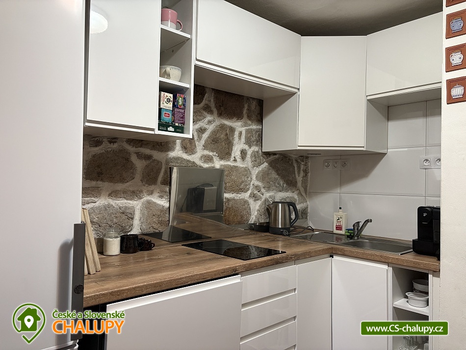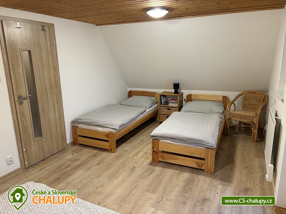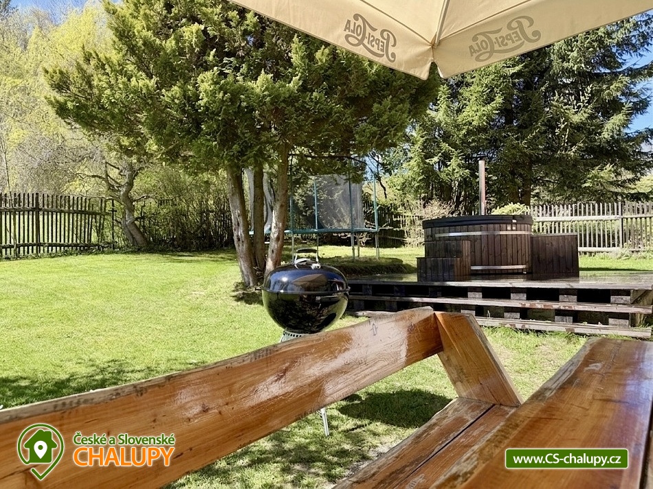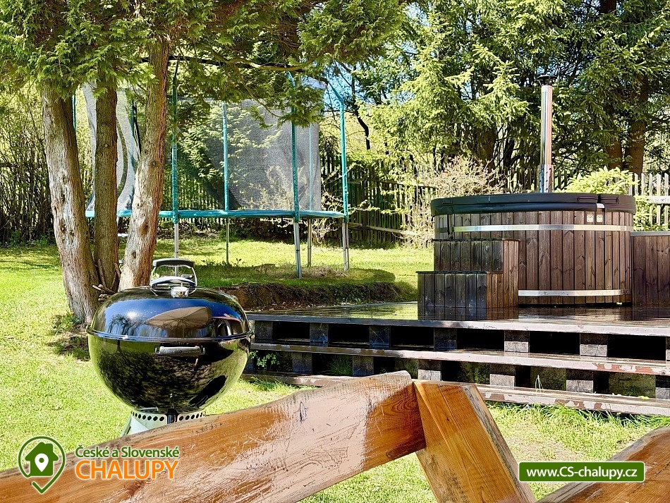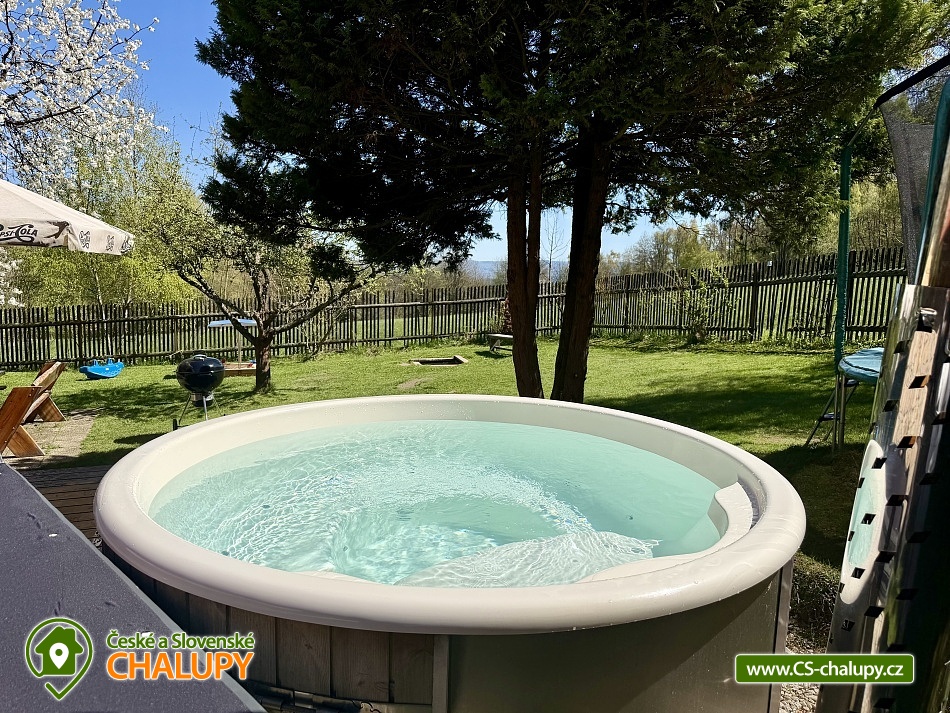 Chata Tereza s koupacím sudem a jacuzzi se nachází v malé obci Oldřiš u Merklína v Krušných horách. Poloha chaty je ideální pro zimní i letní pobyty. Chata k pronájmu poskytuje ubytování pro až 7 osob ve 2 ložnicích. POPIS: 1x ložnice pro 4 osoby (dvoulůžko a 2x jednolůžko) a 1x ložnice pro 3 osoby (dvoulůžko a 1x jednolůžko). V případě potřeby lze rozložit gauč v obývacím pokoji. Dětská postýlka je k dispozici zdarma. Pro nejmenší můžeme také připravit dětskou vaničku či dětské WC prkénko. Kuchyň je plně vybavená pro každodenní vaření: 2 - plotýnková sklokeramická deska, mikrovlnná trouba, lednice s mrazákem, myčka, rychlovarná konvice. K vaření lze také využít kuchyňská kamna, popř. můžete vyzkoušet restaurace v okolí - nejbližší 3 km od chaty (Merklín - Restaurace Pod Lesem). Sociální zařízení: 1x koupelna se sprchovým koutem, WC, podlahovým topením a topným žebříkem a 1x samostatné WC. Vytápění chaty je kamny na dřevo/brikety v obývacím pokoji a v kuchyni. V zimních měsících a chladnějších dnech jsou k dispozici také elektrické přímotopy v ložnicích a podlahové topení v kuchyni, předsíni a koupelně. Na zahradě možnost posezení, grilování. Pro děti trampolína, kruhová houpačka a pískoviště. Parkování pro 2 auta přímo u chaty. Pobyt na chatě si můžete zpříjemnit sportovními aktivitami: V létě cykloturistika nebo pěší, ale i návštěva okolních měst - staré město v Ostrově, radonové lázně Jáchymov či nejznámější západočeské lázně Karlovy Vary. Lanové centrum Plešivec (na Plešivci také obří houpačka, půjčovna terénních koloběžek a čtyřkolek). V zimě: sjezdové lyžování, snowboarding či běžkování. Nejbližšími skiareály jsou Plešivec, Pernink, Boží Dar, Klínovec, Potůčky. Možnost koupání - aquapark Jáchymov. V letním období je možnost využít i výlet parním vlakem na úzkokolejné trati v Německu, hned za hranicemi za Božím Darem. Těšíme se na Vás u nás.