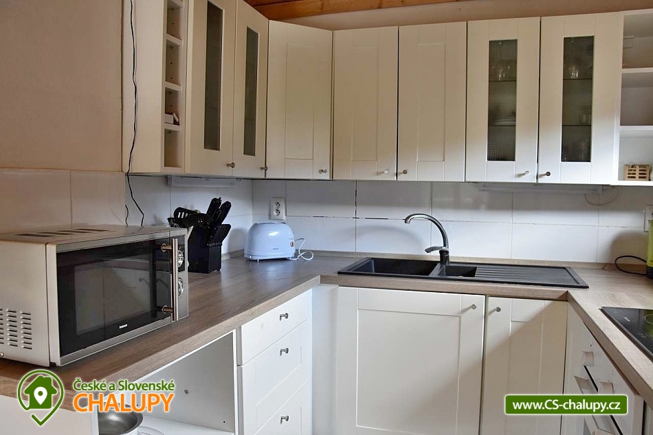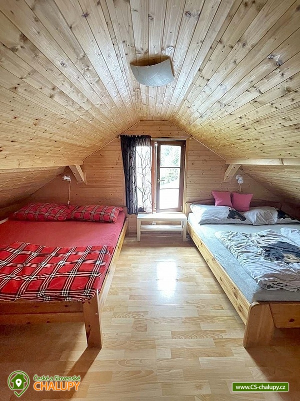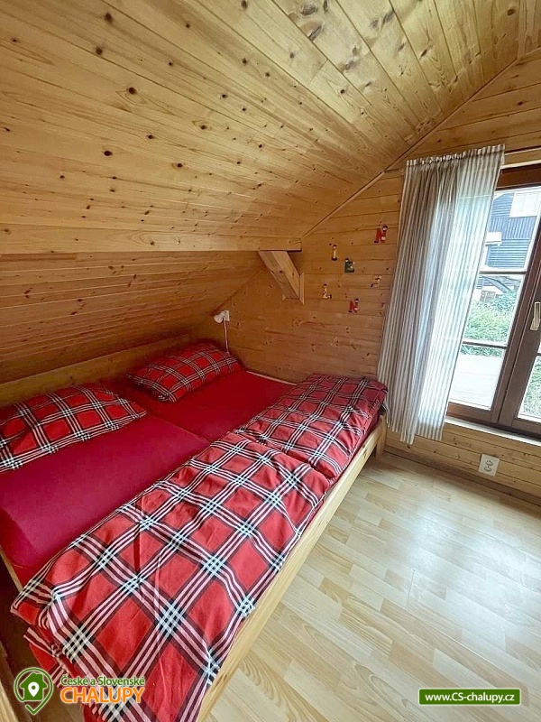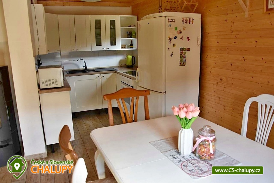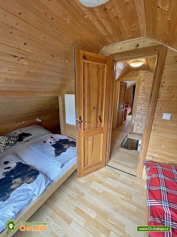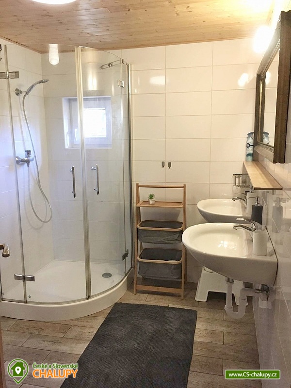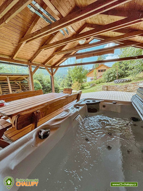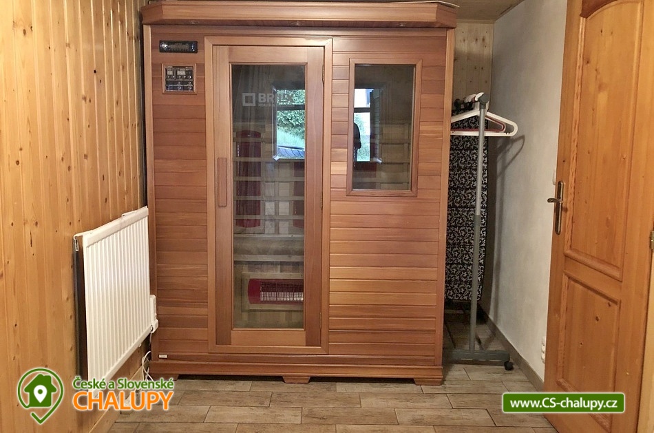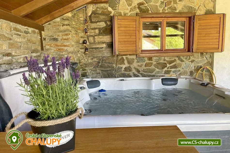 Chata s wellness (sauna a vířivka) se nachází pod Medvědí horou u říčky Desná v CHKO Jeseníky. Chata nabízí ubytování pro až 9 osob ve dvou ložnicích. Ložnice jsou umístěné v podkroví, celkem je k dispozici jedna čtyřlůžková ložnice (2x dvoulůžko) a jedna pětilůžková ložnice (2x dvoulůžko a 1x jednolůžko). K zapůjčení je dětská postýlka. Po domluvě může rozkládací gauč u sauny sloužit jako další přistýlka. V přízemí lze trávit společné chvíle ve společenské místnosti s krbovými kamny, sedací soupravou, TV, jídelním stolem a společenskými hrami. Součástí místnosti je plně vybavený kuchyňský kout (varná deska, trouba, mikrovlnná trouba, lednice, mrazák, rychlovarná konvice, toustovač a kávovar Dolce Gusto). Užívat si můžete také odpočinek v sauně. V celém objektu je k dispozici WIFI připojení na internet. Sociální zařízení zahrnuje jednu koupelnu v přízemí se sprchovým koutem a WC a jedno další samostatné WC. Vytápění je řešeno krbovými kamny a podlahovým topením ve společenské místnosti. Dále je v přízemí a v ložnicích k dispozici elektrický olejový radiátor. V koupelně je k dispozici topný žebřík. Z hygienických potřeb je pro ubytované připravené mýdlo na ruce, utěrka, jar, houbička na nádobí, 2 ks toaletního papíru a základní úklidové prostředky. Za poplatek je možné zapůjčit ložní prádlo, ručníky je nutné mít vlastní. Venku lze posedět na zastřešené terase se zahradním nábytkem, krbem, grilem a venkovní vířivkou, ve které lze od květná do září (dle počasí) relaxovat. Děti se mohou těšit na spoustu venkovních hraček a pískoviště. Parkovat lze přímo u objektu. V okolí chaty možnost turistiky, cykloturistiky, koupání, rybaření, houbaření, běžkování a lyžování. V blízkosti jsou tenisové kurty a minigolf. Mezi možnosti koupání patří např.: Velké Losiny - termály, termální koupaliště Velké Losiny, bazén Domašov - Bělá pod Pradědem, koupaliště Rapotín, Bazén Karlova Studánka, koupaliště Jeseník, Hynčice pod Sušinou - rybník Úžas, přehrada Krásné, bazén Jeseník - Priessnitz, atd. V zimním období jsou k dispozici blízká lyžařská střediska: Kouty nad Desnou, Kareš - Kouty nad Desnou, Přemyslov, OAZA – Loučna nad Desnou, Kocián - Loučná nad Desnou a další. K výletům v okolí láká přečerpávací vodní elektrárna Dlouhé Stráně, Sportovně rekreační areál Kociánov a zámecky park Loučná nad Desnou, Ruční papírna a muzeum papíru Velké Losiny, Rozhledna Bukovka Rapotín, veterán muzeum a Zoo park Rapotín nebo Pradědovo dětské muzeum v Bludově. Těšíme se na Vás u nás.