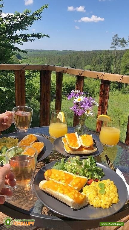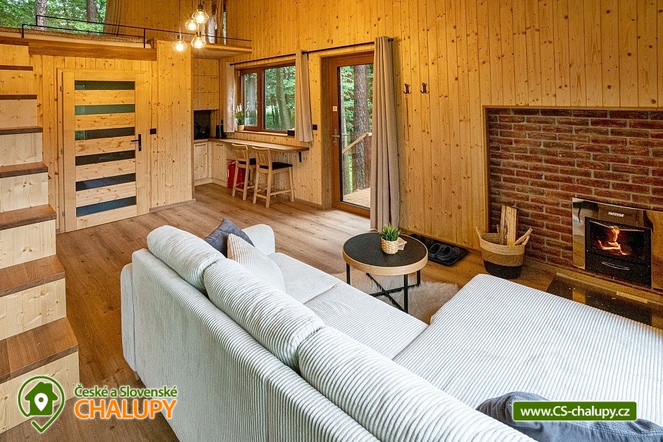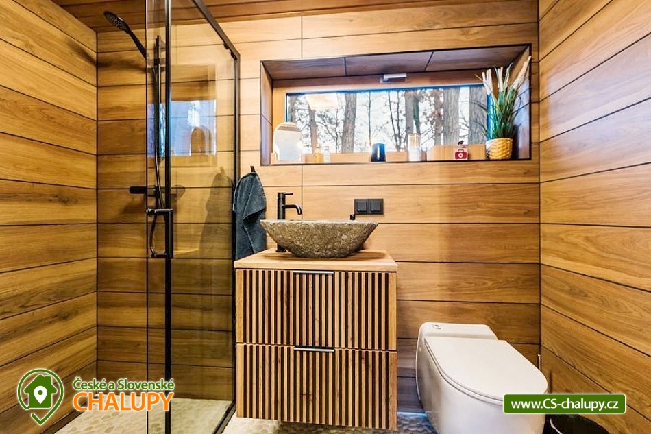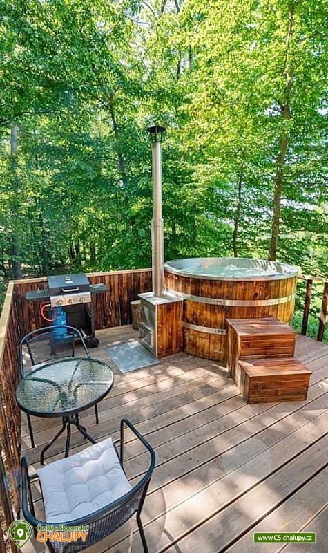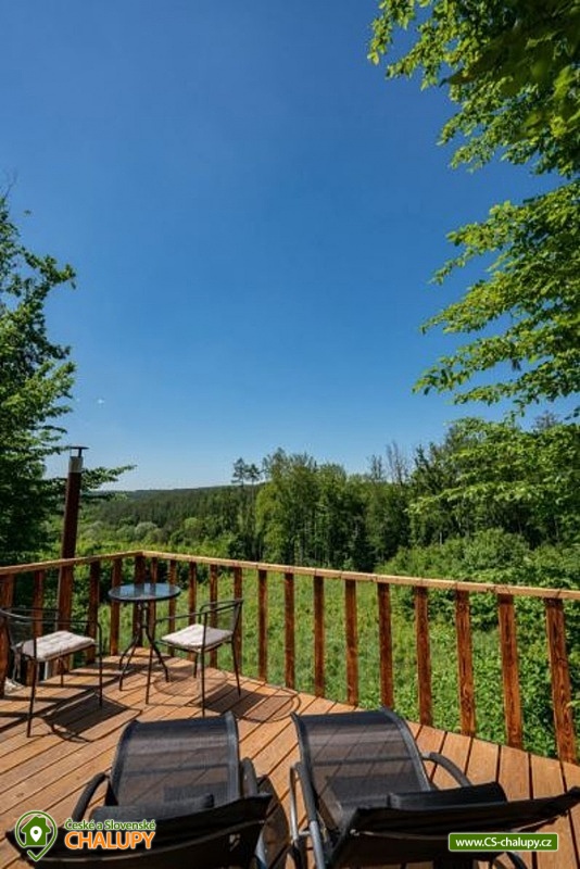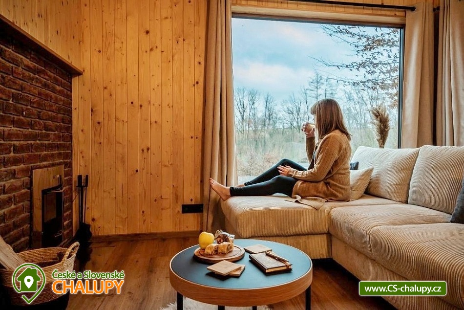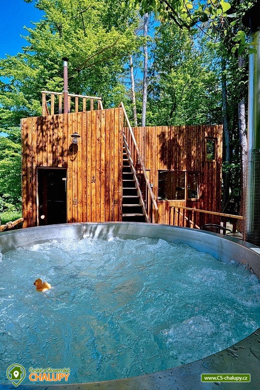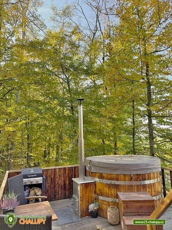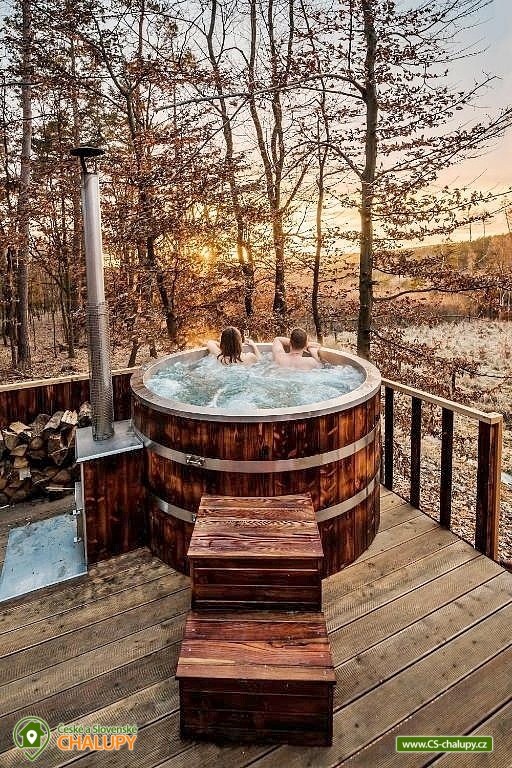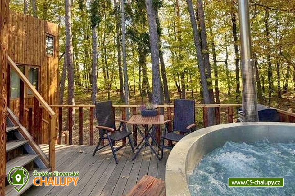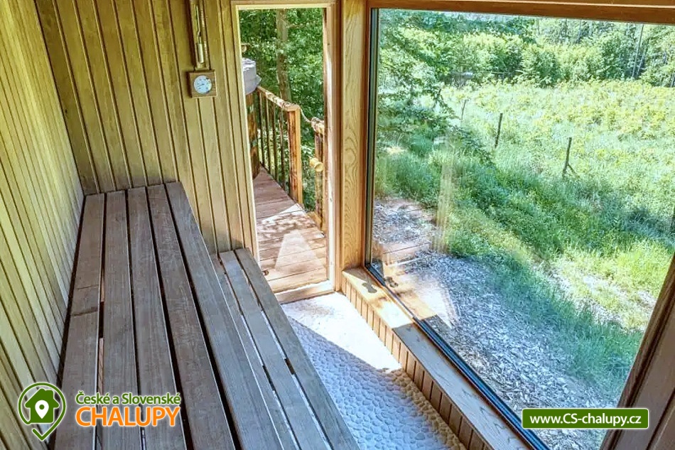 Netradiční ubytování - Glamping s wellness (sauna a koupací vyhřívaný sud) u CHKO Bílé Karpaty. Chata s výhledem na okolní přírodu, kde zažijete šumění listů i zpěv ptáků, má kapacitu až 4 osoby. Celkem je k dispozici 1x manželská postel a 2x přistýlka (rozkládací pohovka). Popis: Interiér chaty je útulný a téměř celý ze dřeva. V přízemní části se nachází komfortní obývací pokoj s krbovými kamny, která dotvářejí příjemnou atmosféru, dále je zde sedací souprava a kuchyňský kout s barovým posezením (kempinkový plynový vařič, rychlovarná konvice, lednice a kuchyňské nádobí). Celé místnosti dominují velká panoramatická okna, která celý prostor prosvětlují a můžete si díky nim po celý pobyt užívat krásné výhledy do okolní přírodní krajiny. Po dřevěných schodech vystoupáte do podkrovní ložnice s velkým letištěm na spaní, ze kterého můžete koukat do korun stromů. Sociální zařízení zahrnuje jednu stylovou koupelnu se sprchovým koutem, umyvadlem a WC. K dispozici jsou měkké župany, ručníky, fén na vlasy a přírodní sprchový gel, šampon na vlasy, mýdlo - speciální kosmetika z důvodu ekologické separace odpadů. Dále jsou k zapůjčení prostěradla do sauny a přezůvky pro možnost chození po terase (zahrnuto v ceně pobytu). Vytápění je řešeno plynovým topením. V celém objektu je k dispozici WIFI připojení na internet. V objektu je zajištěná pitná voda (v pet lahvích). Venku si lze užívat příjemné chvíle na vyvýšené terase s posezením, lehátky, plynovým grilem a koupacím sudem. Z terasy lze vstoupit do finské sauny s velkým panoramatickým oknem. K dispozici je úschovna pro kola a lyže. Parkovat lze přímo u objektu. K dispozici je 1 parkovací místo. Nutné je zohlednit, že k chatě vede cesta se ztíženým přístupem. Z těchto důvodů je možné ponechat automobil na odstavném parkovišti v obci Rudimov. Na přesun hostů k chatě je možné zajistit převoz Jeepem. V okolí objektu možnost turistiky, cykloturistiky, koupání, lyžování, běžkování, rybaření a houbaření. V blízkosti jsou tenisové kurty. Mezi možnosti koupání patří např.: Aquaparku Defín Uherský Brod, Koupaliště Duha Pozlovice, Vlachovice či Štítná nad Vláří, Městská plovárna Luhačovice atd. V zimním období jsou k dispozici lyžařské areály: Dubečky, Újezd nebo skiareál Pechancovy Lúky. K výletům v okolí láká historické centrum lázeňského města Luhačovice, Vizovické vrchy, Zříceniny hradů Světlov, Sehradice a Pulčín, Hvězdárna Uherský Brod, Rozhledny Doubrava a Královec, sportovní a rekreační areál Brumov-Bylnice, Zlín - město Tomáše Bati - zámek, muzea a zoo; dále historické centrum města Uherské Hradiště. Těšíme se na Vás u nás.