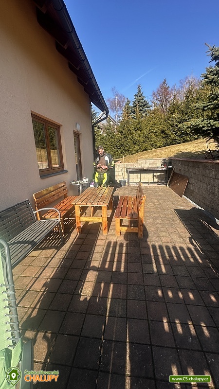 Horská chata se saunou a krásným výhledem na okolní krajinu se nachází 3 km od moderního Skiarélu Klínovec, který nabízí vyžití jak v zimních tak v letních měsících. Chata u Cestáře nabízí ubytování pro až 10 osob ve 3 ložnicích. POPIS: Suterén: vstup do objektu, lyžárna, sauna, sprcha a WC. 1. patro: obývací pokoj spojený s plně vybavenou kuchyní a vinotékou. V obývacím pokoji jsou krbová kamna. Dále se na patře nachází samostatná koupelna se sprchovým koutem, umyvadlem, WC a vstup na venkovní terasu. Kuchyně: Digestoř, horkovzdušná trouba, sklokeramická deska, lednice, myčka, kávovar, rychlovarná konvice, nádobí a příbory. 2. patro: 3 dvoulůžkové pokoje (+4 přistýlky) s TV a jedna koupelna s umyvadlem, vanou a WC. Sociální zařízení: 3x koupelna s WC. Vytápění: Podlahové topení (tepelné čerpadlo). Krbová kamna. U chaty je terasa se zahradním nábytkem a grilem. Parkování až 5 aut přímo před objektem. Objekt je střežen kamerovým systémem. V okolí: Turistické a cyklistické trasy, Božídarské rašeliniště, 2km Oberwiesenthal - úzkokolejka s parními lokomotivami a aquapark. V blízkosti chaty je přírodní rezervace Horská louka a zaniklá osada Köningsmühle. Možnosti koupání: aquapark Jáchymov, Koupaliště Perštejn a aquapark Klášterec nad Ohří. Blízká lyžařská střediska: Klínovec, Loučná pod Klínovcem, Kovářská, Neklid - Boží Dar a Hranice - Boží Dar. Těšíme se na Vás u nás.
