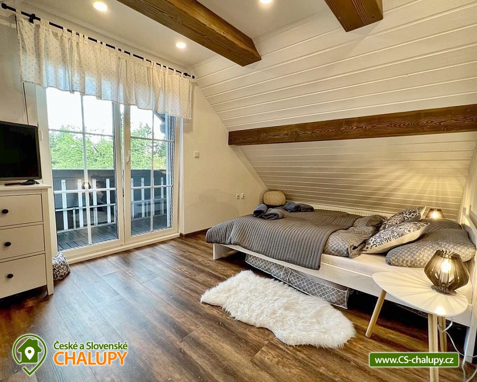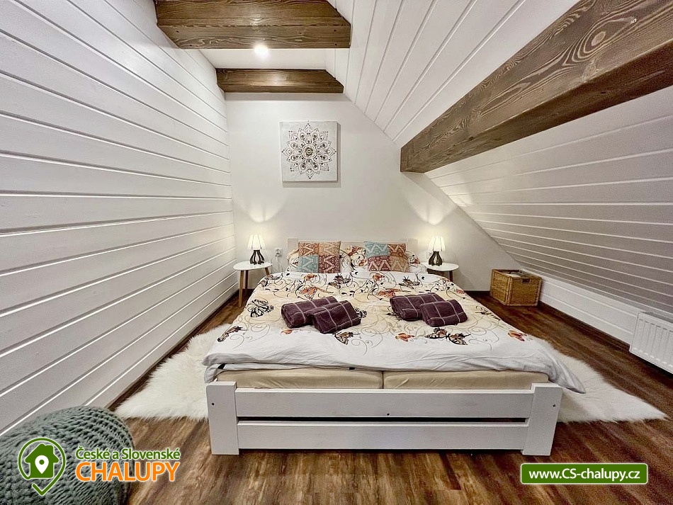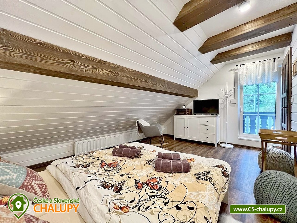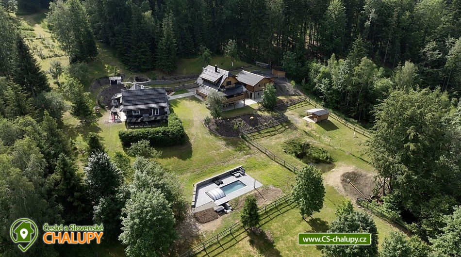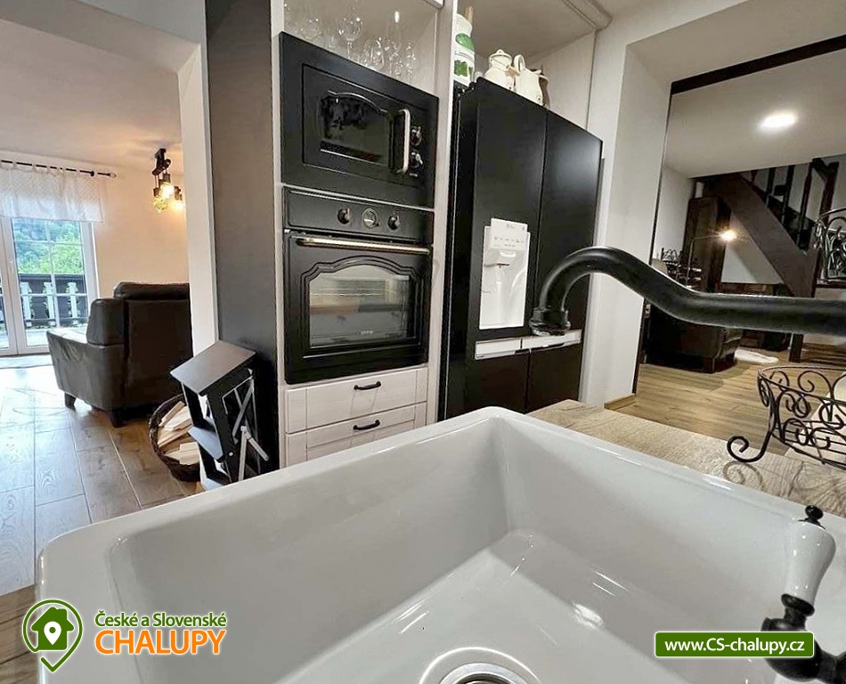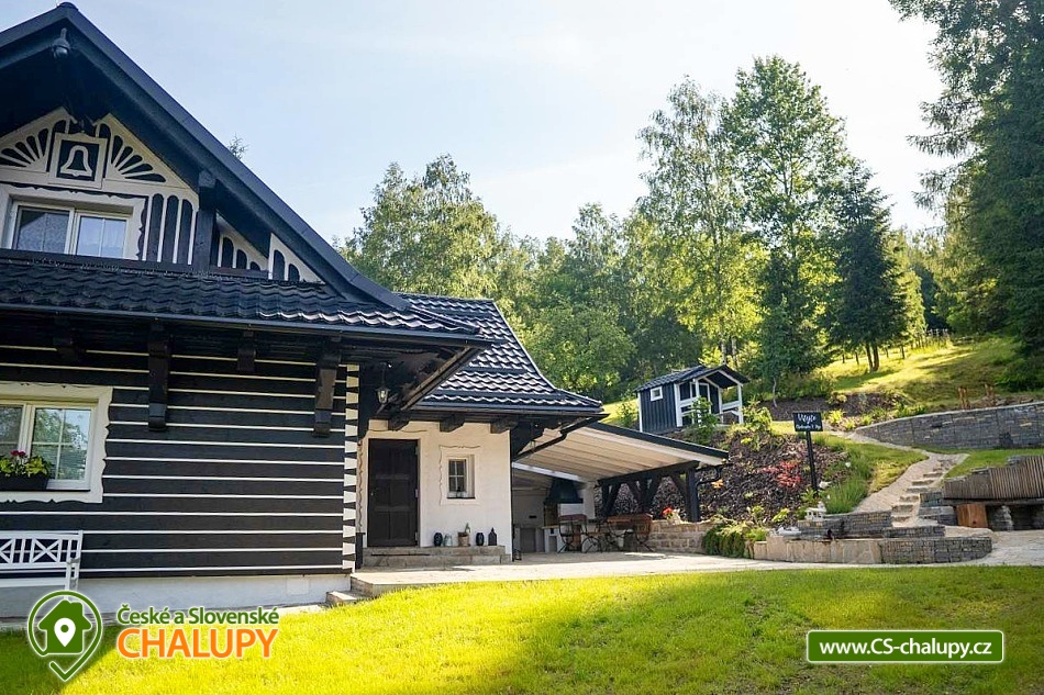 Valašská chalupa s bazénem a wellness leží v horské obci Horní Bečva, v srdci Valašska, v blízkosti Beskydských Pusteven, obklopena lesy, potůčky a přírodou. Ubytování s venkovním bazénem využívaným v letních měsících (1.6.-30.9. - dle počasí), venkovní saunou a vířivkou pro 8 osob ve třech samostatných ložnicích (2x dvoulůžková - manželská postel 180cm, 1x čtyřlůžková - manželská postel 160cm + rozkládací pohovka. K zapůjčení dětská postýlka vždy po domluvě předem. K dispozici je obývací pokoj s krbovými kamny, TV, pohovkou, křeslem, jídelním stolem, který se dá dle potřeby rozložit na větší, dětská jídelní židle taktéž k dispozici a plně vybavená kuchyň (americká lednice, mrazák, mikrovlnná trouba, rychlovarná konvice, myčka, trouba, sporák a kávovar DeLonghi na zrnkovou kávu. Sociální zařízení zahrnuje jednu koupelnu s umyvadlem, sprchovým koutem, volně stojící vanou, pračkou se sušičkou a samostatné WC s umyvadlem a vyhřívaným bidetovým prkénkem, které oceníte hlavně při návštěvě v chladnějším období. Ručníky, šampón, mýdlo, fén na vlasy - to vše je samozřejmě součástí. Na chodbě ke schodišti, je umístěna menší knihovnička s polohovacím křeslem a lampou tzv. čtecí koutek. Z obývacího pokoje je vchod na velkou terasu s posezením a vířivkou, kde se můžete kochat výhledy na okolní lesy a v noci pozorovat krásnou noční oblohu. K dispozici je Wi-Fi připojení. Objekt je vytápěn tepelným čerpadlem a krbovými kamny. Parkování přímo u chalupy v oploceném areálu s kamerovým systémem až pro 4 auta, z toho 3 kryté místa. K dispozici 1x připojení elektro. Na zahradě je připraven vyhřívaný bazén s posezením, lehátky a závěsnými křesly, který je využíván pouze v letních měsících v období, dětské hřiště se skluzavkou, houpačkami a věžičkou a u chalupy kryté venkovní posezení jak pro velké, tak pro malé s kamenným grilem na dřevo a pizza pecí. Hned vedle je umístěno ohniště s posezením k opékání špekáčků. Pro otužilce je zde ochlazovací přírodní jezírko, které je umístěno vedle venkovní sauny a do kterého stále přitéká voda. Možnost otužování celoročně. Na chalupě je pro vás připraveno spoustu deskových her, play station, ale také venkovní hry, jako je Pétanque, Kuželky a Cornhole. Nudit se zde určitě nebudete. Součástí areálu je ještě jedna chalupa, která je sporadicky využívána pouze majiteli k rekreaci - soukromí zajištěno. Chalupa je ideálním místem pro odpočinek, turistiku, kolo, běžky či lyže. Tipy na výlety: procházka k Pustevnám a stezka Valaška nebo na kopec Martiňák, centrum obce Horní Bečva, rozhledna Sůkenická, naučná stezka Soláň a Čertův mlýn, Karlovské muzeum, Tarzanie - horský lanový park, Valašské muzeum v přírodě a ledová galerie - Rožnov pod Radhoštěm. Možnosti koupání: přehrada na Horní Bečvě, biotop na Prostřední Bečvě, koupaliště Velké Karlovice a koupaliště Rožnov pod Radhoštěm. V zimě jsou v blízkosti lyžařská střediska: lyžařská sjezdovka Mečová, areál Kocianka, ski areál Rališka nebo ski areál U Sachovy studánky. Těšíme se na Vás u nás.