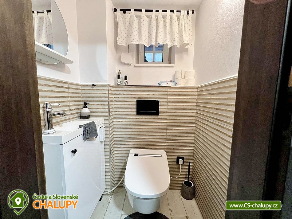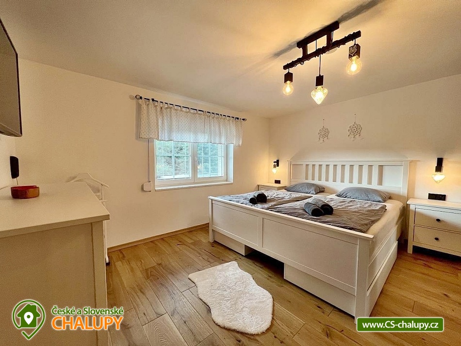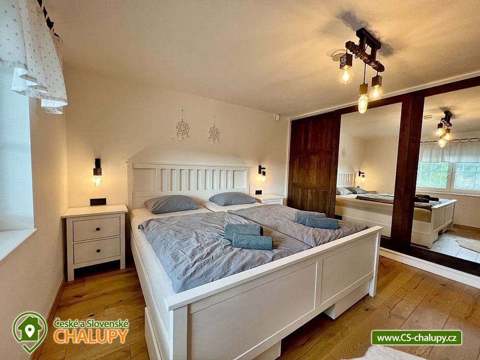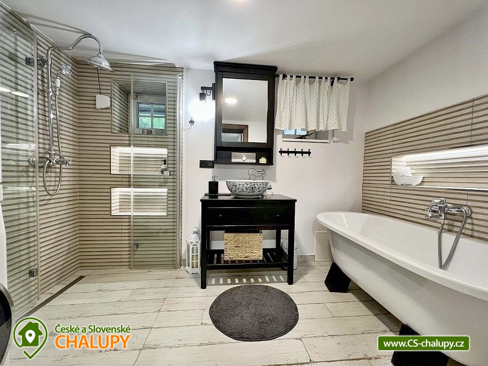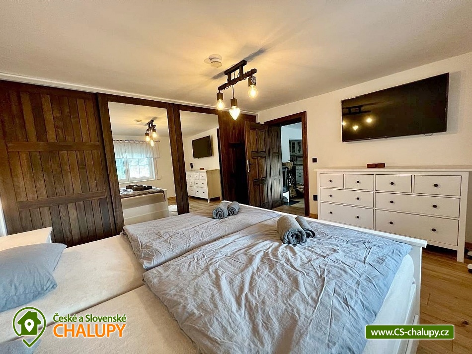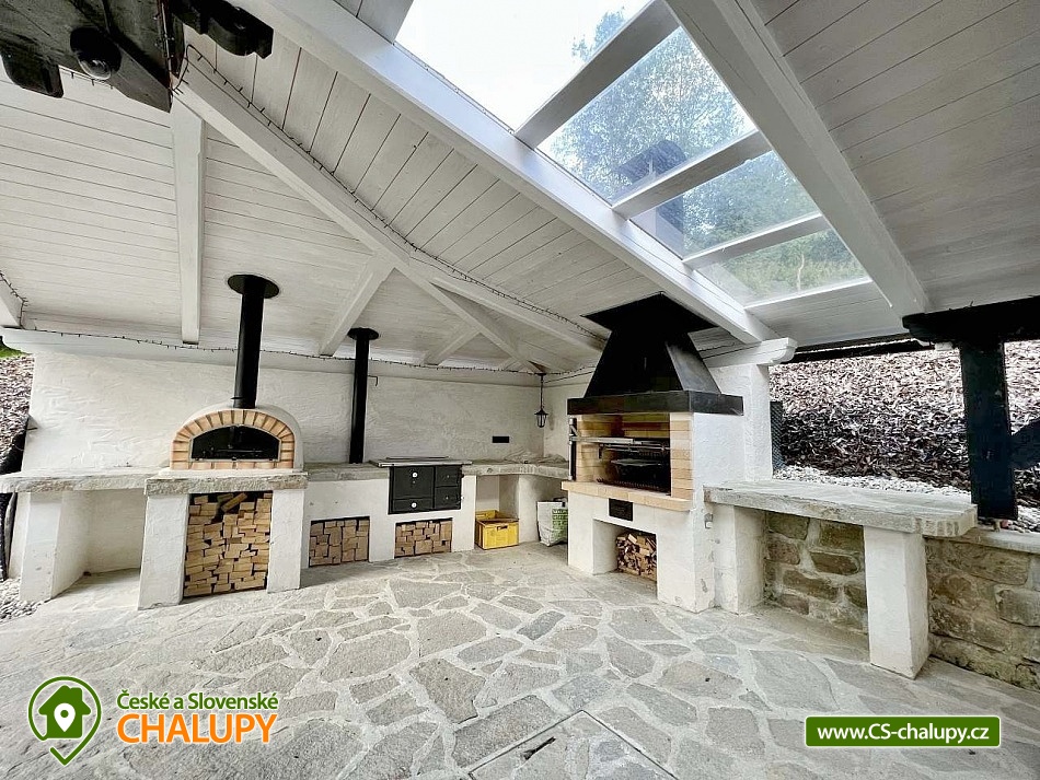 Valašská chalupa s bazénem a wellness leží v horské obci Horní Bečva, v srdci Valašska, v blízkosti Beskydských Pusteven, obklopena lesy, potůčky a přírodou. Ubytování s venkovním bazénem využívaným v letních měsících (1.6.-30.9. - dle počasí), venkovní saunou a vířivkou pro 8 osob ve třech samostatných ložnicích (2x dvoulůžková - manželská postel 180cm, 1x čtyřlůžková - manželská postel 160cm + rozkládací pohovka. K zapůjčení dětská postýlka vždy po domluvě předem. K dispozici je obývací pokoj s krbovými kamny, TV, pohovkou, křeslem, jídelním stolem, který se dá dle potřeby rozložit na větší, dětská jídelní židle taktéž k dispozici a plně vybavená kuchyň (americká lednice, mrazák, mikrovlnná trouba, rychlovarná konvice, myčka, trouba, sporák a kávovar DeLonghi na zrnkovou kávu. Sociální zařízení zahrnuje jednu koupelnu s umyvadlem, sprchovým koutem, volně stojící vanou, pračkou se sušičkou a samostatné WC s umyvadlem a vyhřívaným bidetovým prkénkem, které oceníte hlavně při návštěvě v chladnějším období. Ručníky, šampón, mýdlo, fén na vlasy - to vše je samozřejmě součástí. Na chodbě ke schodišti, je umístěna menší knihovnička s polohovacím křeslem a lampou tzv. čtecí koutek. Z obývacího pokoje je vchod na velkou terasu s posezením a vířivkou, kde se můžete kochat výhledy na okolní lesy a v noci pozorovat krásnou noční oblohu. K dispozici je Wi-Fi připojení. Objekt je vytápěn tepelným čerpadlem a krbovými kamny. Parkování přímo u chalupy v oploceném areálu s kamerovým systémem až pro 4 auta, z toho 3 kryté místa. K dispozici 1x připojení elektro. Na zahradě je připraven vyhřívaný bazén s posezením, lehátky a závěsnými křesly, který je využíván pouze v letních měsících v období, dětské hřiště se skluzavkou, houpačkami a věžičkou a u chalupy kryté venkovní posezení jak pro velké, tak pro malé s kamenným grilem na dřevo a pizza pecí. Hned vedle je umístěno ohniště s posezením k opékání špekáčků. Pro otužilce je zde ochlazovací přírodní jezírko, které je umístěno vedle venkovní sauny a do kterého stále přitéká voda. Možnost otužování celoročně. Na chalupě je pro vás připraveno spoustu deskových her, play station, ale také venkovní hry, jako je Pétanque, Kuželky a Cornhole. Nudit se zde určitě nebudete. Součástí areálu je ještě jedna chalupa, která je sporadicky využívána pouze majiteli k rekreaci - soukromí zajištěno. Chalupa je ideálním místem pro odpočinek, turistiku, kolo, běžky či lyže. Tipy na výlety: procházka k Pustevnám a stezka Valaška nebo na kopec Martiňák, centrum obce Horní Bečva, rozhledna Sůkenická, naučná stezka Soláň a Čertův mlýn, Karlovské muzeum, Tarzanie - horský lanový park, Valašské muzeum v přírodě a ledová galerie - Rožnov pod Radhoštěm. Možnosti koupání: přehrada na Horní Bečvě, biotop na Prostřední Bečvě, koupaliště Velké Karlovice a koupaliště Rožnov pod Radhoštěm. V zimě jsou v blízkosti lyžařská střediska: lyžařská sjezdovka Mečová, areál Kocianka, ski areál Rališka nebo ski areál U Sachovy studánky. Těšíme se na Vás u nás.