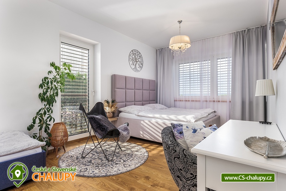 Komfortní chalupa - apartmán s biosaunou a přírodním jezírkem se nachází v obci Kublov, v malebné krajině CHKO Křivoklátsko, a je tak ideálním místem pro milovníky turistiky, cyklistiky a odpočinku. Ubytování je umístěno v horní části chalupy, kde budete mít po celou dobu pobytu své soukromí (přízemí chalupy je prázdné). Vchod je ze zadní strany chalupy. Chalupa nabízí ubytování pro 12 osob ve třech ložnicích. K dispozici je 1x dvoulůžková ložnice, 1x třílůžková a 1x sedmilůžková (3x lůžko v obývacím pokoji na pohodlné sklápěcí manželské posteli a výklopném jednolůžku a 4x lůžko v otevřeném mezonetu nad obývákem). V obývacím pokoji najdete také jídelní sezení s lavicí a židlemi, TV, vstup na venkovní terasu, schody do otevřené mezonetové ložnice a plně vybavený kuchyňský kout (nádobí, lednice, mrazák, myčka, sporák, trouba, mikrovlnná trouba, automatický kávovar, topinkovač a rychlovarná konvice). Sociální zařízení zahrnuje 2x koupelnu se sprchovým koutem a 2 toalety. K dispozici je fén, ručníky a také Wi-Fi připojení. V objektu je vytápění na elektřinu. K chalupě náleží oddělená soukromá zahrada určená výhradně pro hosty, biosauna s přírodním jezírkem se slanou vodou a terasa s posezením, která je přístupná přímo z obývacího pokoje. Další venkovní posezení se nachází u vstupu do chalupy. Hosté mohou využít přístřešek na kola s možností nabíjení elektrokol a parkovací místa až pro čtyři vozy. Za příplatek je k dispozici také vířivka. Možnosti koupání: koupaliště Zdice, aquapark Hořovice. Tipy na výlety v okolí: hrad Křivoklát, naučná stezka Údolí ticha, Vraní skála, zřícenina hradu Točník, hrad Žebrák, Skryjská jezírka, rozhledna Velká Buková, zámek Nižbor. Těšíme se na Vás u nás.