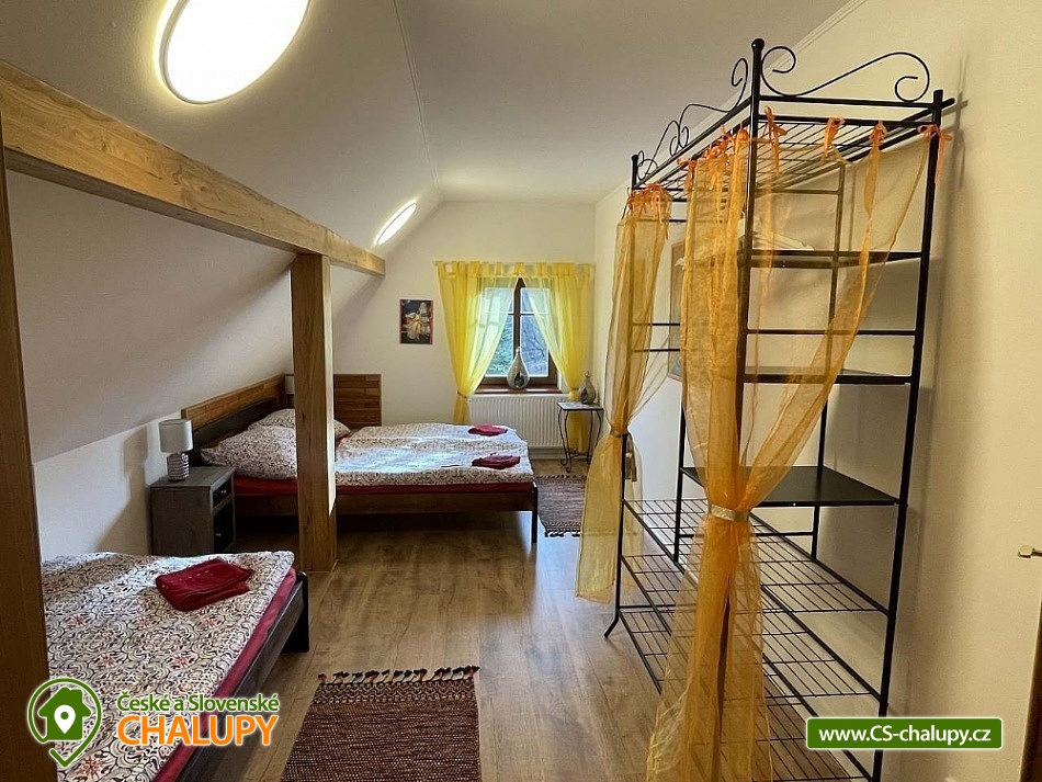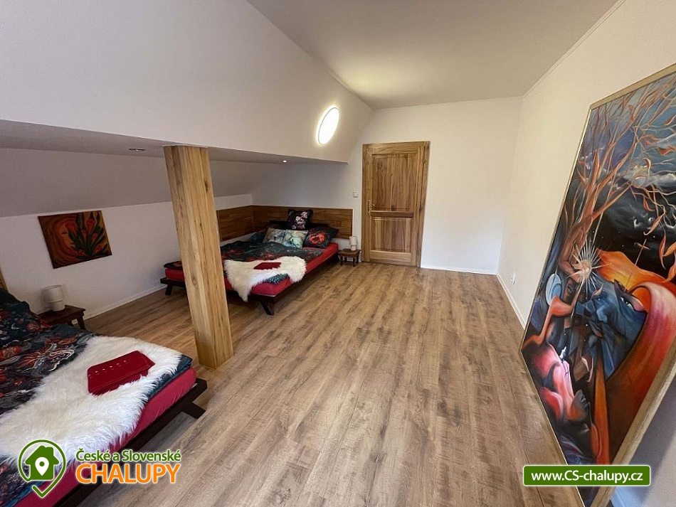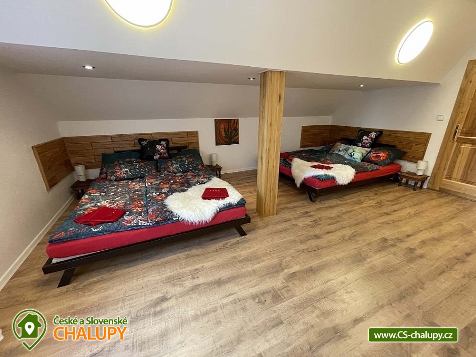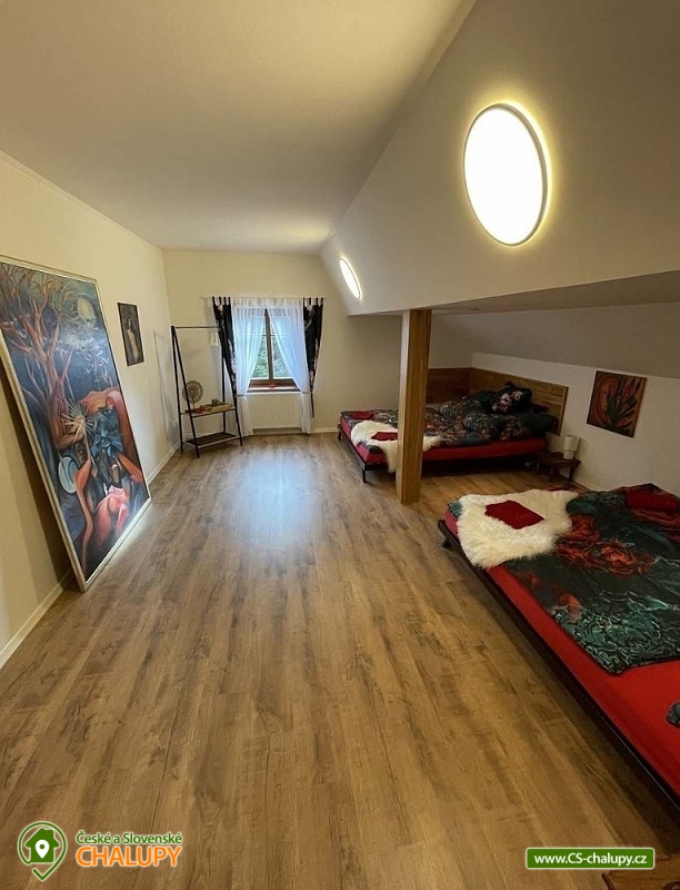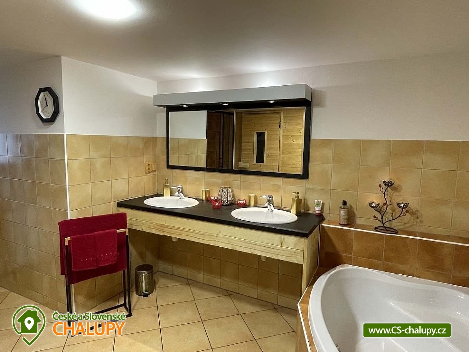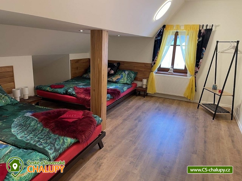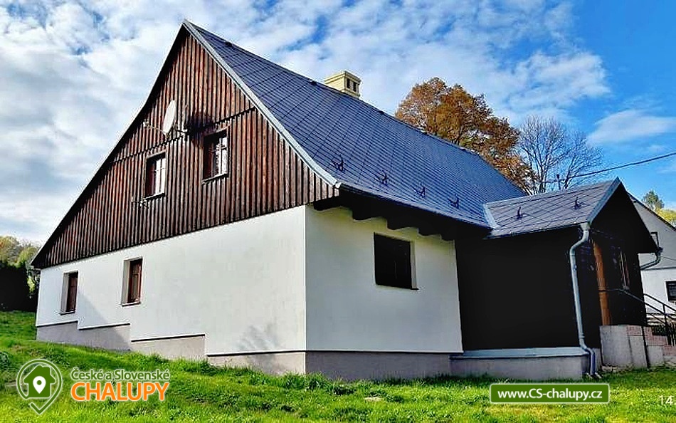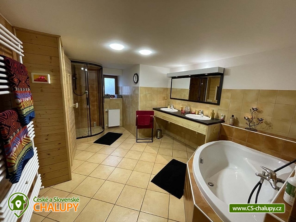 Wellness chalupa Jeseníky nabízí originální wellness ubytování s finskou saunou, venkovní vířivkou a posezením s krytým ohništěm s grilem. Chalupa přímo v srdci Jeseníků, nedaleko lázní Karlova Studánka, města Zlaté Hory, Jeseník a hory Praděd, obec Heřmanovice. V okolí chalupy se nachází sjezdovky, běžkařské a turistické trasy a cyklotrasy. Chalupa k pronájmu poskytuje ubytování pro až 13 osob ve 4 ložnicích. Ložnice a pokoje: Ubytování je ve čtyřech oddělených pokojích, z čehož jeden je umístěn v přízemí a tři v prvním patře. Kapacita je 13 osob, možnost přistýlky + dětská herna s postýlkou, hračkami a posezením pro děti. Přízemí: 2 x kuchyně (lednice s mrazákem, sklokeramická varná deska, trouba, varná konvice, kávovar, topinkovač), TV, WIFI a finská sauna v koupelně. Sociální zařízení v přízemí: 1x koupelna se sprchovacím koutem a vanou, finská sauna v koupelně, 1x WC s umyvadlem. Vrchní patro: 1x WC s umyvadlem. Vytápění: Automatický kotel s regulací s posuvným přikladačem na uhlí, ohřev vody bojlerem. Chalupa je obklopena částečně oplocenou zahradou s wellness zónou včetně venkovní vířivky a relax posezení s grilem. Parkování u chalupy. Je zde prostor pro kola, lyže a jiné. Chalupa je citlivě zrekonstruovaná zachovává některé prvky ze své původní stavby a tvoří tak jedinečné místo s duší. Nachází se v CHKO Jeseník a v chalupě teče voda z místních pramenů. V okolí - výlety: Aquapark Bruntál a Rýmařov, Nejvyšší hora Jeseníků Praděd s nadmořskou výškou 1491 m. Naučná stezka vodopády Bílé Opavy, Rešovské vodopády, Rejvíz a Mechová jezírka. Biskupská kupa, nejstarší rozhledna v Jeseníkách. Přečerpávací vodní elektrárna Dlouhé Stráně. Přehrada Slezská Harta. Stezka v oblacích Dolní Morava a nejdelší vysutý most na světě. Hrad Sovinec. V zimě: Lyžařský vlek Horní Údolí (8 km), Ski Aréna Vrbno pod Pradědem (14 km), Skiareál Kopřivná (25 km) a Ski Aréna Karlov 12 km propojených sjezdovek (29 km). Těšíme se na Vás u nás.