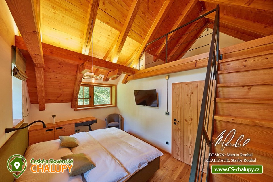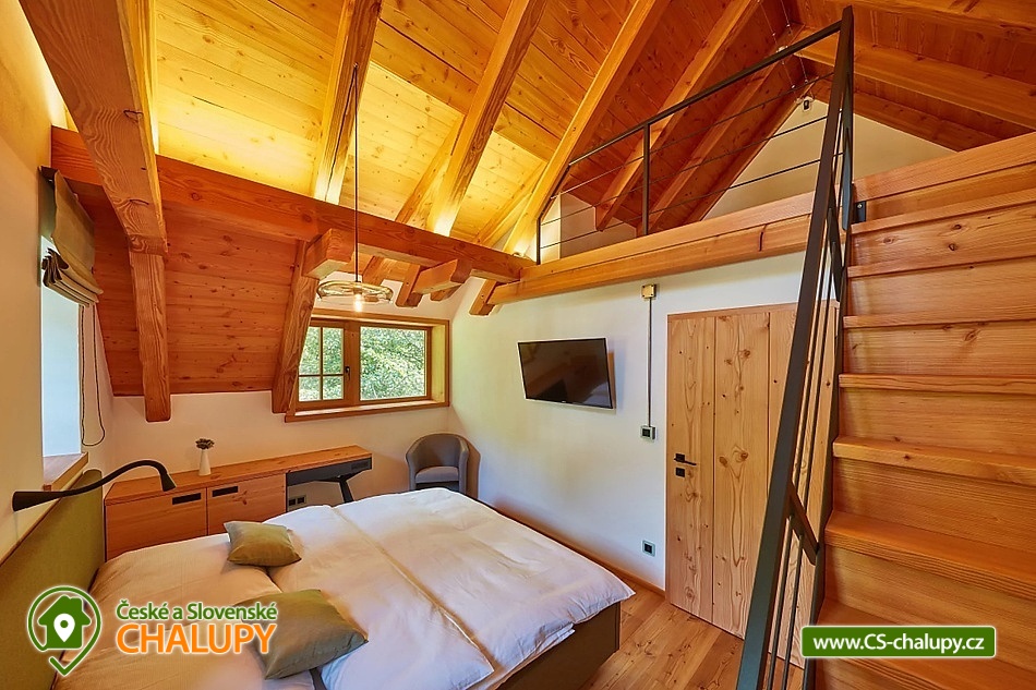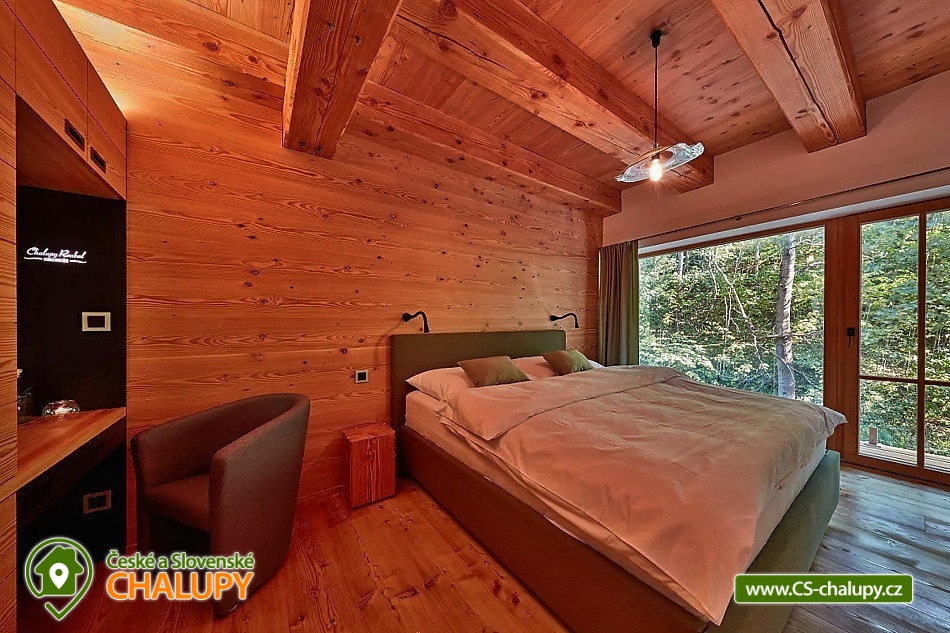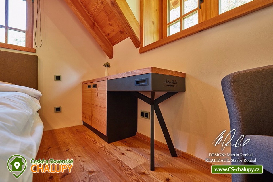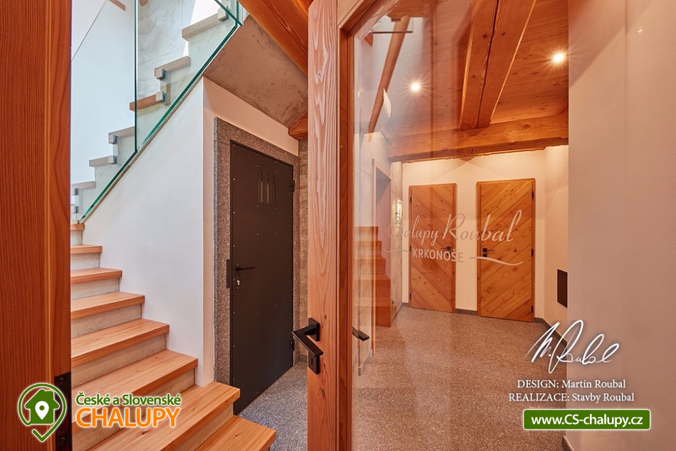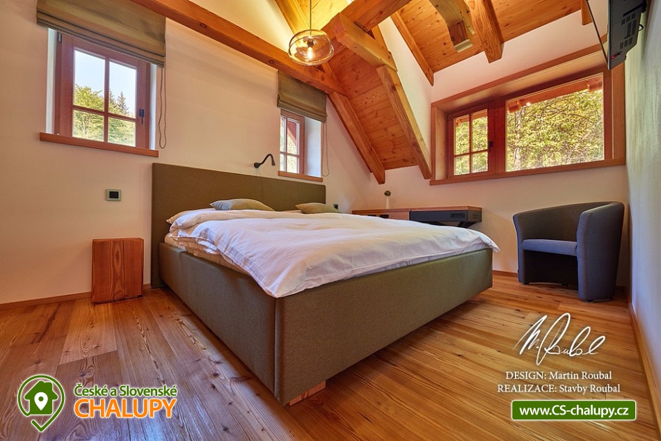 Mimořádný zážitek - Nadstandardně vybavená luxusní Wellness chalupa Krkonoše - roubená chalupa se saunou, vyhřívaným koupacím sudem a kachlovými kamny se nachází pod Černou horou nedaleko janských Lázní, středisko Černý důl v okrese Trutnov. Kapacita chalupy je až 12 osob ve 4 ložnicích. V chalupě jsou k dispozici dva 4-lůžkové apartmány a dva 2-lůžkové pokoje. Roubenka je postavena z jehličnatého stromu - borovice douglasky, je v moderním čistém stylu a tudíž má větší prosklená okna, než je zvykem u klasických roubenek. Díky nim Vám poskytne nádherný výhled do korun stromů. Interiér chalupy je v moderním provedení za použití materiálů žuly, skla a železa. Chvíle pohody Vám zpříjemní kachlová kamna a sauna s venkovním koupacím sudem. Součástí roubenky je i vinný sklípek. Příjemný pocit z relaxace navodí svým celodenním příjemným šumem i blízký horský potok. Okolní příroda vybízí k turistice a cykloturistice, v zimě jsou zde ideální podmínky pro lyžování. Poloha chalupy zaručuje romantické ubytování uprostřed krásné krkonošské přírody. Turisté zde najdou mnoho zajímavých turistických cílů, okolí je hustě protkáno značenými trasami vedoucími např. rozhlednu na Černé hoře, ze které se Vám naskytne nádherný pohled na panorama Krkonoš, Jeseníky, Orlické hory, Českomoravskou vrchovinu, dominanty Českého ráje i krajinu v sousedním Polsku. Další Vaše kroky můžou vést na nejvyšší horu Krkonoš Sněžku, kam se necháte vyvézt lanovkou nebo vyšlápnete pěšky. Za výlet stojí zajisté i návštěva horských středisek Pec pod Sněžkou a Janské Lázně i nedaleké město Vrchlabí, které vás okouzlí svým renesančním zámkem.