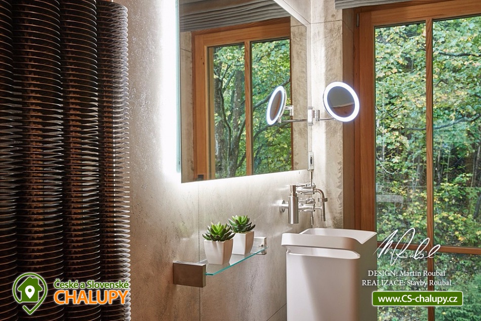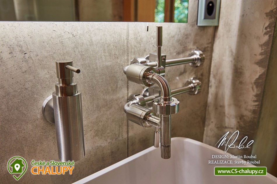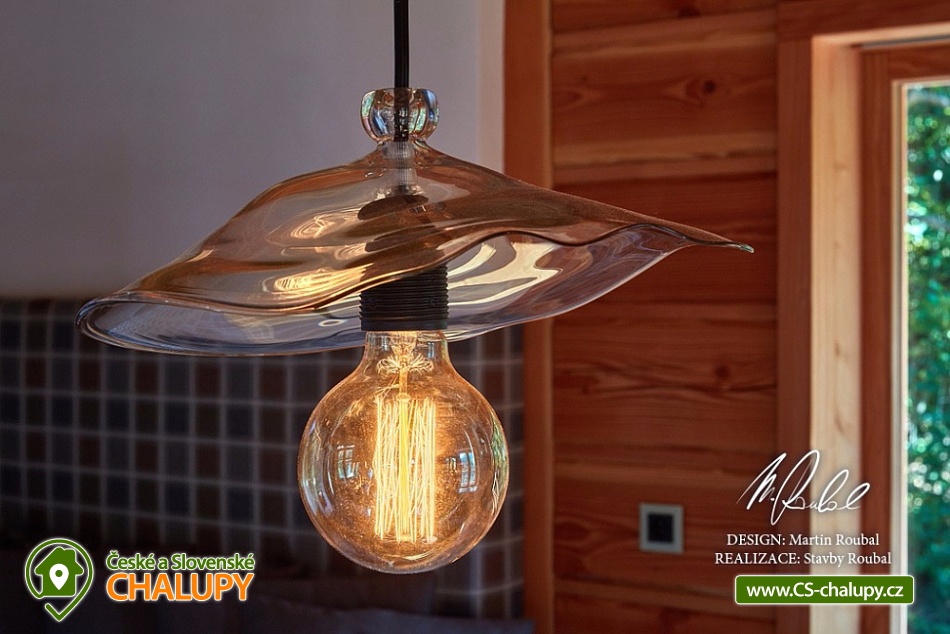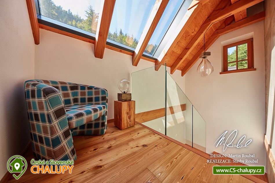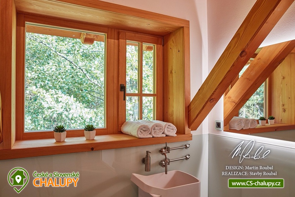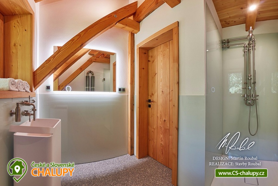 „Designová roubenka s kachlovými kamny, saunou a koupacím sudem“