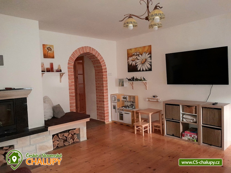 Wellness chalupa se nachází v malé obci Police u Jemnice. Leží na rozhraní Vysočiny, jižní Moravy a jižních Čech nedaleko Vranovské přehrady. Okolí je plné lesů, rybníků a vybízí k mnoha turistickým a sportovním aktivitám. Komfortně zařízená chalupa, je již více než 150 let stará a sloužila jako kovárna, dodnes se dochovala i dílna s pecí, kde je nyní zabudovaná kuchyň. Nyní se hosté mohou těšit na sportovní vyžití v krásné stodole (stolní fotbal, šipky, fotbálek, krb a relax) i úžasnou wellness zónu v okrasné zahradě s horkým koupacím sudem pro 8 osob a luxusní finskou saunou s proskleným výhledem do zahrady. Wellness chalupa Na Kovárně poskytuje ubytování pro 11 osob ve třech ložnicích. K dispozici je jedna samostatná 4 – lůžková ložnice. Další dvě ložnice jsou rozdělené pouze galerií, spodní ložnice má k dispozici 3 lůžka, horní ložnice disponuje 4 lůžky. Zapůjčit si lze dětskou postýlku. Společné chvíle lze trávit ve společenské místnosti s krbem. Součástí místnosti je plně vybavená kuchyň (lednička s mrazákem, varná deska, trouba, mikrovlnná trouba, varná konvice, atd,) a jídelní stůl s posezením. K dispozici je dětská jídelní židlička. Dále je v chalupě k dispozici TV, DVD domácí kino a velký šachový stůl. Při vánočním pobytu je zde připravený nazdobený vánoční stromeček (na přání lze domluvit přinesení dárků Ježíškem). Sociální zařízení v chalupě zahrnuje 1x koupelnu s rohovou vanou, pračkou, WC a umyvadlem, 1x koupelnu se sprchovým koutem, WC a umyvadlem a 1x venkovní WC s umyvadlem. Vytápění je řešeno elektrokotlem a krbem s horkovzdušnými rozvody. V celém objektu je k dispozici WIFI připojení na internet. Venku na oploceném (uzavřeném) dvorku a zahradě si mohou hosté užívat polozapuštěný bazén (průměr 3,6 m, hloubka 0,9 m) nebo zmíněnou wellness zónu s koupacím sudem a finskou saunou. K dispozici je také zahradní nábytek, lehátka, slunečník, plynový gril a ohniště. Děti se mohou na zahradě těšit na dětskou trampolínu (průměr 1,8 m) a pískoviště se zahradní kuchyňkou pro děti. Součástí objektu je také bývalá stodola, která byla přebudována ke sportovně - odpočinkovým účelům, je zde k dispozici stolní tenis, profi šipkový automat (pro 8 hráčů) a profi fotbálek. Součástí stodoly je také posezení s velkým vnitřním krbem s komínem, dětský koutek, tabule na kreslení křídami a WC. Ze dvora je přístupný také malý chladný sklípek, kde je možnost zakoupit víno, slivovici nebo skladovat potraviny. K dispozici je také úschovna jízdních kol. Parkovat lze přímo u objektu. V okolí chalupy možnost turistiky, cykloturistiky, koupání, houbaření a rybaření. V blízkosti jsou tenisové kurty, jízdárna a hřiště. Mezi možnosti koupání patří např.: Bítovská zátoka, Biotop Jemnice, koupaliště Nimpšov, rybník Hrachovec, rybník Dolní Modletický, Vranovská přehrada, přehrada Plichťák, koupaliště Moravské Budějovice, atd. V okolí spoustu možností pro výlety – Zámek Police, Jemnice s krásným náměstím, historické město Telč, Stanovice, rozhledna Valtínov nacházející se v České Kanadě, ZOO Bítov, Vranovská přehrada či NP Podyjí. Pobyt na chalupě láká také v zimním období, kdy se v Polici koná tradiční štědrovečerní průvod ovcí, ve kterém lidé zvoní na zvony, bučí a zpívají koledy a následně se u vánočního stromku na náměstí nalévá punč, svařák a čaj a všichni si užívají příjemnou vánoční atmosféru. Těšíme se na Vás u nás.