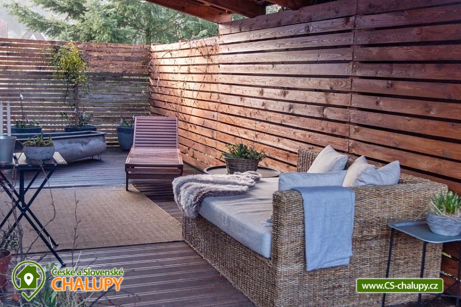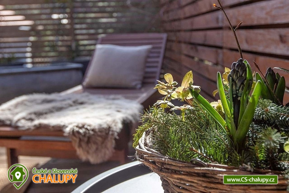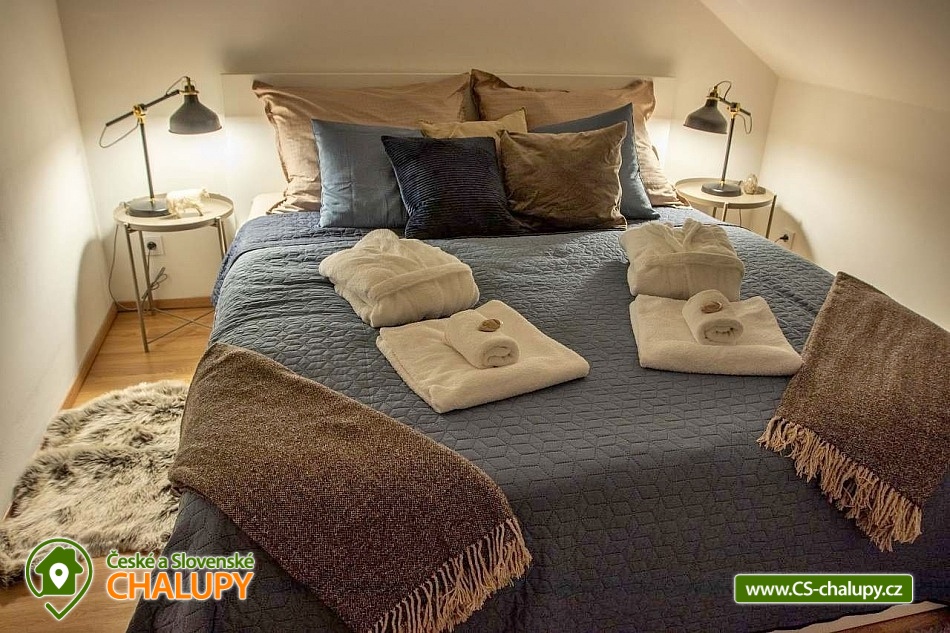 Stylová chata s wellness zónou se nachází na okraji obce Votice v části Amerika, v srdci České Sibiře. V okolí k turistice láká krásná příroda CHKO Blaník. Tato komfortně zařízená chata se skládá ze dvou pater. V horním patře se můžete ubytovat ve stylovém apartmánu a v přízemí relaxovat ve wellness zóně s finskou saunou se saunovým textilem ze lnu, vířivkou, vnitřním bazénem s protiproudem, lehátky a barem. Vše v naprostém soukromí a klidu. Wellness chata s klimatizací nabízí ubytování pro 2 osoby. Po domluvě lze zajistit snídani nebo brunch ve formě koše plného čerstvých surovin. Domácí mazlíčci jsou vítáni. K dispozici je jedna dvoulůžková ložnice (1x manželská postel 180 cm) s výhledem do zahrady a příjemným jemným osvětlením pro klidný spánek. Součástí apartmánu je také obývací pokoj se sedací soupravou, jídelním stolem, TV se SAT, dobovým gramofonem a plně vybavenou kuchyní (trouba, mikrovlnná trouba, lednička, mrazák, varná deska, myčka nádobí, rychlovarná konvice, kávovar a základní suroviny). K dispozici jsou úložné prostory, lůžkoviny a ručníky. Sociální zařízení zahrnuje 2 koupelny a 2 WC. V koupelně u ložnice je umístěná vana a v koupelně ve wellness je sprchový kout. K dispozici jsou základní hygienické i značkové kosmetické potřeby, fén, pračka a sušička. Dále jsou k zapůjčení pantofle a župan. V celém objektu je k dispozici WIFI připojení na internet. Kolem chaty se rozléhá oplocená zahrada s venkovním posezením a ohništěm s grilovacím plátem. Dále je možné posedět na jedné ze dvou stylově zařízených teras se zastřešením a venkovními lehátky k odpočinku. U chaty najdete také ovocnou zahrádku, ze které si můžete utrhnout čerstvé plody. Přímo ze zahrady je krásný výhled na kapli sv. Vojtěcha, která stojí za návštěvu. Parkovat lze přímo u objektu. K dispozici je kryté parkoviště pro 2 auta. Pro bezpečnost hostů je zajištěn venkovní kamerový systém a bezpečnostní alarm. V okolí objektu možnost turistiky, cykloturistiky, koupání, houbaření, rybaření, lyžování, běžkování, bruslení a skialping. V blízkosti jsou také tenisové kurty. Mezi možnosti koupání patří např.: Biotop Přírodní koupaliště Votice, Libohošťský rybník, Rybník Strašík, Lom Štětkovice (Bořená Hora), Koupaliště Mladá Vožice, Bazén Benešov atd. V zimním období je výhodou blízkost lyžařského areálu Monínec (cca 18 km od chaty) - sjezdovky, večerní lyžování, běžkařské trasy a v letním období řada cyklotras. K výletům v okolí láká Klášter sv. Františka z Assisi Votice, Motýlárium Votice, Skanzen Vysoký Chlumec, zámek Konopiště, poutní cesta Říp - Blaník, Zámek Neustupov, Muzeum loutek na dlouhých nitích Bystřice nebo Zámek Vrchotovy Janovice. Těšíme se na Vás u nás.