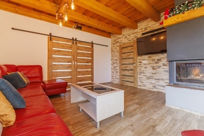 Chalupa s bazénem a saunou u rozhledny Suchý vrch s výhledem na Bukovou horu se nachází v obci Mlýnický Dvůr, která je součástí obce Červená Voda v Orlických horách. Chalupa poskytuje ubytování pro až 26 osob ve čtyřech čtyřlůžkových ložnicích a dvou pětilůžkových. Dvě ložnice mají k dispozici vlastní koupelnu se sprchovým koutem a WC, další dva pokoje mají vlastní vanu s WC. Všechny pokoje jsou klimatizované. V přízemí ke společným chvílím slouží společenská místnost se sedací soupravou, TV, připojení na dataprojektor, krbovými kamny s pecí, jídelním koutem s posezením z jasanového dřeva a plně vybavenou kuchyní (indukční deska, trouba, lednice, mikrovlnná trouba, myčka nádobí, kávovar, rychlovarná konvice a nádobí). Dále je součástí přízemí lyžárna, herna pro děti. V celém objektu je k dispozici WIFI připojení na internet. Sociální zařízení zahrnuje celkem 5 koupelen s WC a jedno samostatné WC. K dispozici je pračka se sušičkou. Vytápění je v přízemí řešeno krbem, podlahovým vytápěním a klimatizací. V prvním patře jsou k dispozici klimatizace (v létě chladí, v zimě topí), koupelny mají vlastní podlahové vytápění. Venku u chalupy je umístěná terasa s venkovním posezením. K dispozici je gril. Děti se mohou těšit na pískoviště, trampolínu a prolézačky. V teplém počasí si lze užívat venkovní bazén. Parkovat lze přímo u objektu. V okolí chalupy možnost turistiky, cykloturistiky, koupání, houbaření, lyžování a běžkování. Mezi možnosti koupání patří např.: přehrada Pastviny, Štíty - Acrobat Park, koupaliště Králíky, koupaliště Jablonné nad Orlicí, koupaliště Ruda nad Moravou, koupaliště Bludov - Vlčí Důl, Lanškroun - Dlouhý rybník, koupaliště Šumperk - Bratrušák, bazén Zábřeh, bazén Mezilesí, rybník Postřelmov, koupaliště Letohrad, bazén Šumperk - Aquacentrum, atd. V zimním období jsou k dispozici lyžařská střediska: Červená Voda - Buková hora, Heroltice, Čenkovice, Šanov, Ovaz Výprachtice, Bystřec, Panorama - Štědrákova Lhota a další. K dalším výletům v okolí láká rozhledna Suchý vrch, muzeum papíru Losiny, vojenská tvrz Bouda, Skiresort Buková hora se spoustou atrakcí: lanová dráha, horské káry, apresski bar, disc golf, elektrokola, koloběžky a pumptrek, Dolní Morava s bobovou dráhou, a lanovým centrem a rozhlednou Stezka v oblacích, Rozhledna Křížová hora, Králický Sněžník, ZOO park v Rapotíně a Letohrad. Těšíme se na Vás u nás.
