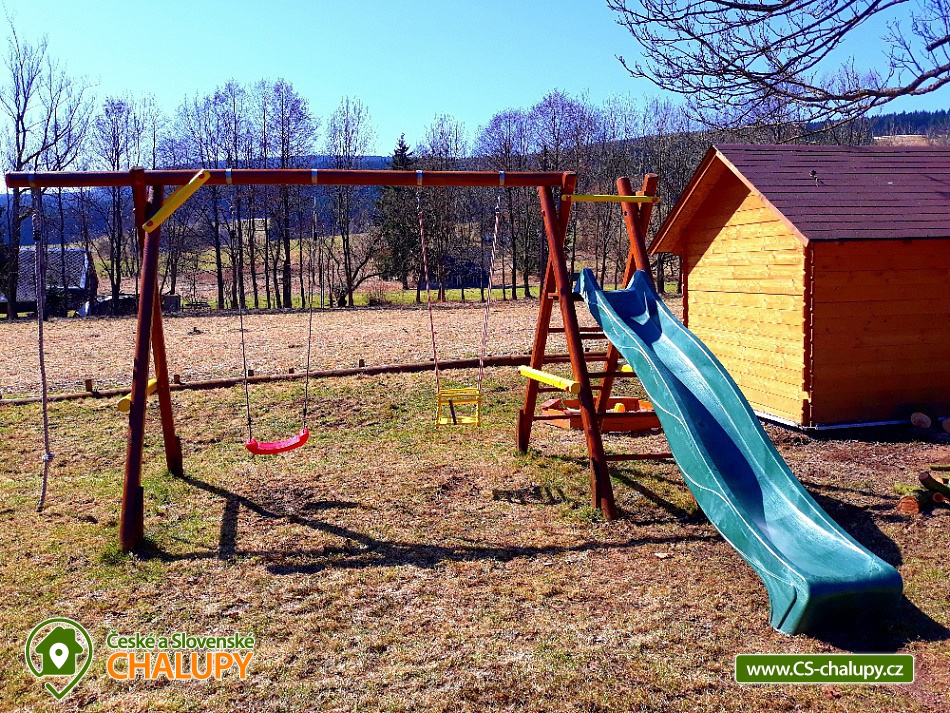 Poloroubená chalupa Orlické hory s kachlovými kamny a ležením na peci u obce Říčky v Orlických horách (8 km), obec Orlické Záhoří, okres Rychnov nad Kněžnou. Chalupa s celkovou kapacitou až 14 osob nabízí ubytování pro 12 osob ve 3 ložnicích a další 2 lůžka za pecí. V přízemí roubené chalupy je společenská místnost spojená s kuchyní (vybavení kuchyně: lednice s mrazákem, el. trouba a el. varná deska, mikrovlnná trouba, nádobí pro větší skupinu lidí, velký stůl). Ve společenské místnosti je televize, hi-fi a zejména klasická kachlová pec se spaním. V kuchyni lze vařit jak na el. varné desce, tak přímo na peci, kde se dá samozřejmě i péct. V přízemí je koupelna s pračkou, samostatné WC a technická místnost. V patře jsou 3 ložnice, v každé ložnici jsou 4 lůžka. Jedna z ložnic je apartmán (je prostornější, je v ní televize, křesílka, truhla s hračkami). V patře je také koupelna se sprchovým koutem a toaletou. Venku je kryté i venkovní posezení, gril, ohniště, houpačky a skluzavka pro děti, pískoviště. Objekt si pronajímáte vždy celý, nezáleží na počtu osob. Domácí mazlíčci jsou povoleni, ale zpoplatněni. Topí se briketami v kachlových kamnech s rozvodem tepla po celé chalupě. Teplá voda se v létě ohřívá el. bojlerem, v zimě se ohřívá topným systémem do kombinovaného bojleru. Parkuje se přímo u chalupy, v zimě je parkoviště vyhrnováno. V chalupě je k dispozici Wi-Fi internet. Chalupa se nachází v Orlických horách, kde si můžete vybrat mezi sjezdovým lyžováním a běžkami. Je to oblast plná moderních ski areálů (v místě Ski Areál Jadrná 900 m od chalupy, lyžařský areál Bedřichovka), Ski centrum Deštné v Orlických horách či Ski centrum Říčky, pár kilometrů od hranic s Polskem pak Ski aréna Zieleniec. Dále je běžecká trať přímo v Orlickém Záhoří, která se připojuje k již mnoha stávajícím běžeckým tratí. V létě si přijdou na své milovníci horské turistiky a cykloturistiky. Oblíbená místa návštěvníků Orlických hor jsou např.: Pěticestí nebo výšlap na vrchol hory Velká Deštná, Luisino údolí. Neváhejte a přijeďte se podívat do krásných Orlických hor. Další doporučená místa v okolí: Kunštátská kaple, Komáří vrch, Vrch Zakletý, Zdobnice, rezervace Hraniční louka, Anenský vrch, Malá Deštná, Říčky, Zákoutí, Jelení lázeň, Šerlich, pevnost Hanička, rezervace Bukačka, Špičák, Antonínovo údolí, Sedloňovský vrch, Vrchmezí, Rokytnice, Bartošovice, Sedloňov, Olešnice, Naučná stezka Olešnice, Kunvald, Zemská brána, Čihák, Klášterec nad Orlicí, Rychnov nad Kněžnou, městské koupaliště Rychnov nad Kněžnou.