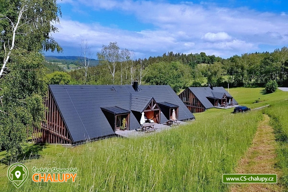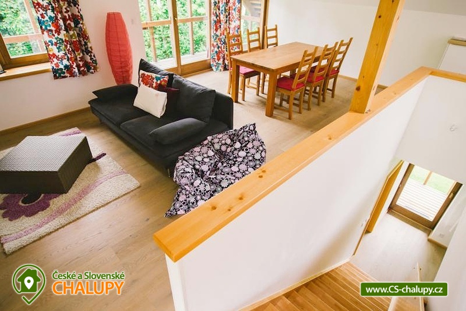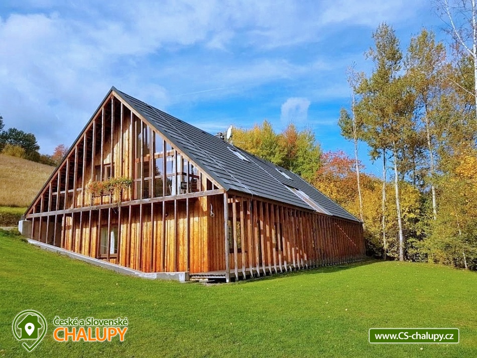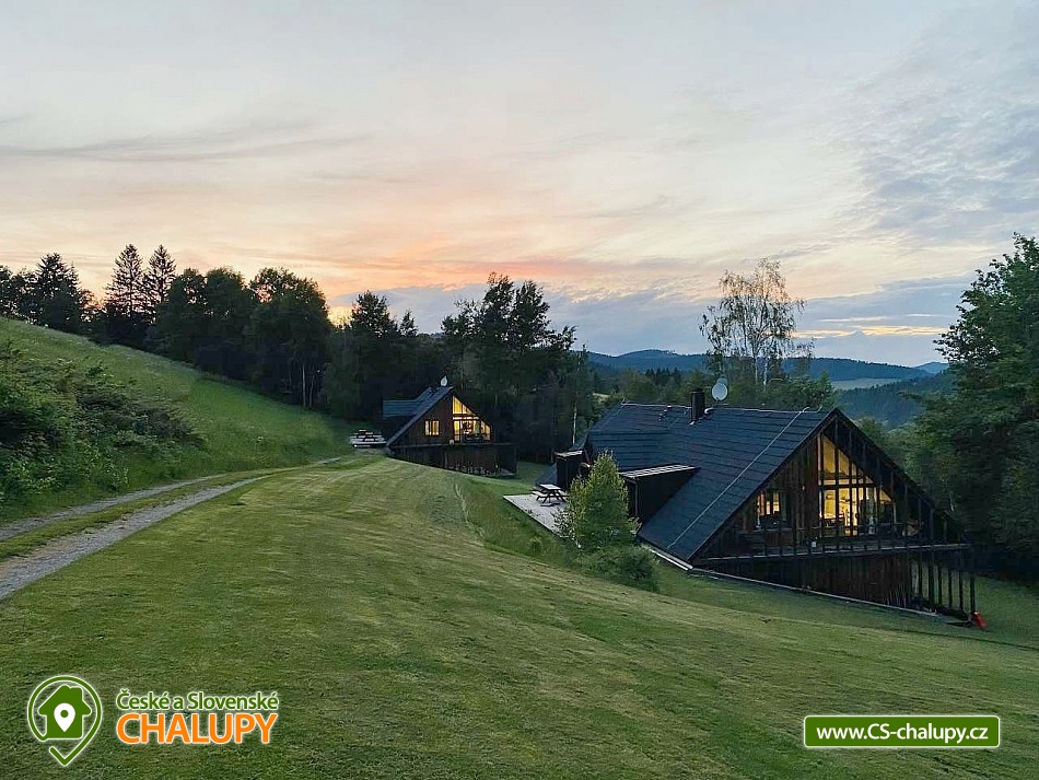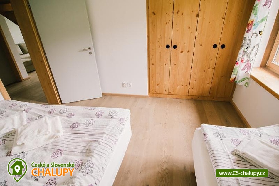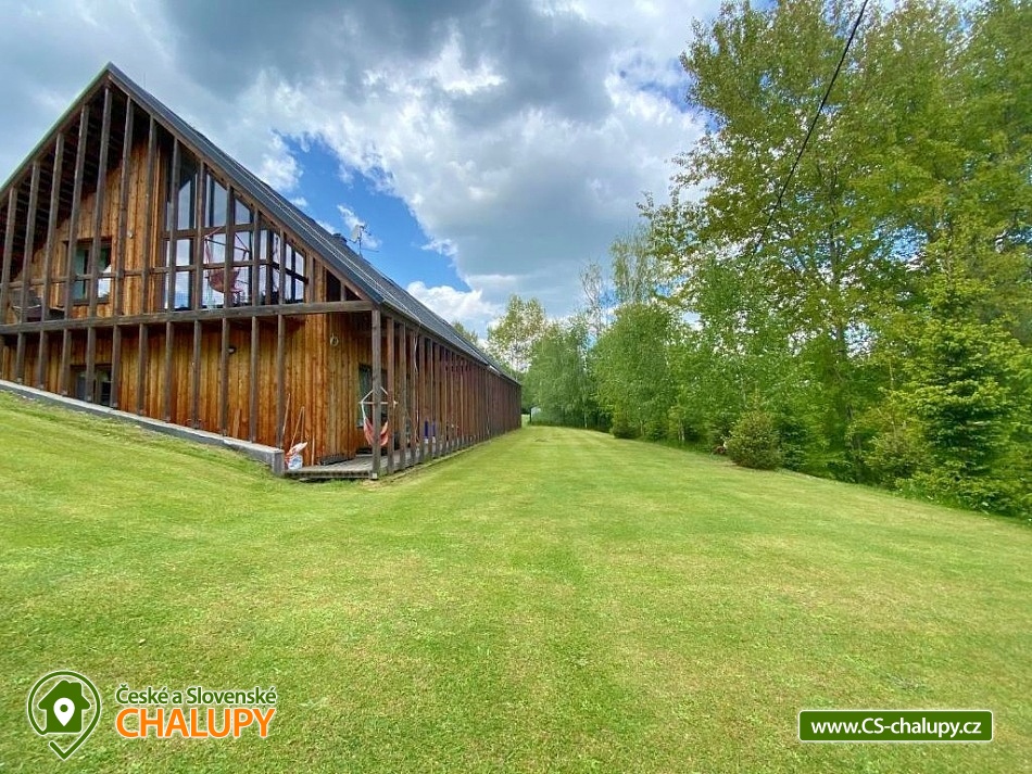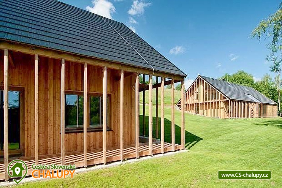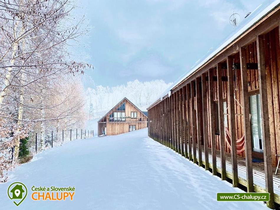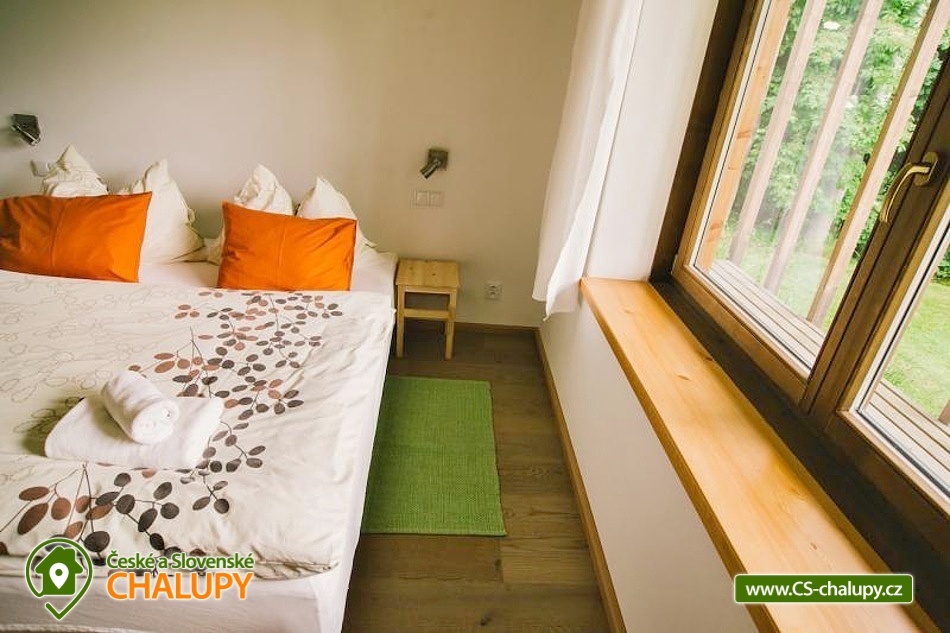 Dvě luxusní chalupy Šumava s koupacím jezírkem se nachází na samotě u lesa u obce Dlouhá Ves, poloha nad řekou Otavou. Jedná se o dvě samostatné chalupy umístěné na pozemku o velikosti 1,5ha a vzdálené 80 m od sebe. Každá chalupa se skládá ze dvou zcela oddělených stejných mezonetových apartmá o rozloze 125 m2 s terasami (40 m2). Každé apartmá má vlastní vchod, nesdílí s druhým apartmá žádnou společnou zeď a je zcela samostatné. Soukromí všech hostů je zajištěno. Luxusní Chalupy nabízí ubytování pro až 20 osob ve 4 samostatně pronajímaných apartmánech. Každé apartmá má k dispozici kapacitu pro 5 osob ve dvou ložnicích umístěných ve spodním patře. Všechny ložnice jsou vybavené úložnými prostory, velmi komfortními postelemi a lůžkovinami. Na každé posteli jsou speciální 5 cm masážní podložky, díky kterým se opravdu dobře vyspíte. První ložnice je dvoulůžková (1 x manželská postel) a druhá ložnice třílůžková (1x manželská postel + 1x jednolůžko). Obě ložnice mají kvalitní postele. Po domluvě možné dvě přistýlky řešené rozkládací pohovkou v spacím koutě, který není oddělený dveřmi. Dětskou postýlku lze zajistit. Součástí všech apartmánů je v patře umístěná velká, světlá obývací místnost, ve které je k dispozici pohovka, křesla, stolek, LED TV a jídelní stůl pro 6 osob. Po domluvě lze zajistit jídelní židličku. Skrz velká okna s proskleným štítem si lze užívat krásný ničím nerušený výhled do panenské přírody. Obývací místnost je spojená s plně vybavenou kuchyní (varná indukční deska, myčka nádobí, moderní trouba, kávovar a digestoř). Z této místnosti lze také vstoupit na jižní dřevěnou terasu umístěnou na úrovni terénu s posezením a slunečníkem. K zapůjčení jsou lehátka. Každý apartmán má také zastřešený balkon s krásným výhledem. Sociální zařízení v jednom apartmánu zahrnuje jednu koupelnu se dvěma umyvadly, přebalovacím pultem a vchodem do oddělené sprchy. Dále je k dispozici jedno WC u obývacího prostoru a jedno WC ve spodním patře s ložnicemi. K zapůjčení jsou ručníky, osušky, povlečení, utěrky a náhradní peřiny. Vytápění je řešeno nejmodernějším kotlem na peletky. Dále je k dispozici bojler 500 litrů pro jednu chalupu na teplou vodu. Objekt má také vlastní studnu s kvalitní vodou a vlastní čističku. V celém objektu je k dispozici WIFI připojení na internet. Kolem chalupy se rozléhá travnatá zahrada, kde je možné relaxovat nebo si lze také užívat společné koupací jezírko. Obě chalupy mají také vnitřní společný zastřešený prostor, kde je možné sedět např. za deště, s výhledem do krajiny přes prosklenou střechu. V každé chalupě je pro dvě apartmá k dispozici jeden gril. Posedět lze u ohniště. Pro všechny ubytované děti je k dispozici pískoviště a trampolína. Parkovat lze 30 metrů od chalup. Pro výklad zavazadel lze přijet až k chalupě. V okolí chalup možnost turistiky, cykloturistiky, koupání, houbaření, rybaření, lyžování a běžkování. V blízkosti je také jízdárna. Mezi možnosti koupání patří např.: aquapark Sušice, koupaliště Hartmanice, koupaliště Sušice, koupaliště Petrovice u Sušice, lom Čimické jezírko, rybník Bušek, Úbislavický rybník, koupaliště Rohanov, rybník Zdíkovec, rybník Valcha, koupaliště Kvilda, Přírodní koupaliště Žabáky, atd. V zimním období jsou k dispozici blízká lyžařská střediska: Hartmanice, Kašperské Hory, Nezdice a další. K výletům v okolí láká okolí řeky Otavy, Vyhlášený skleněný oltář Dobrá Voda, Kašperské Hory, hrady Kašperk, Velhartice a Rabí či Krásná ZOO Lohberg. Těšíme se na Vás u nás.