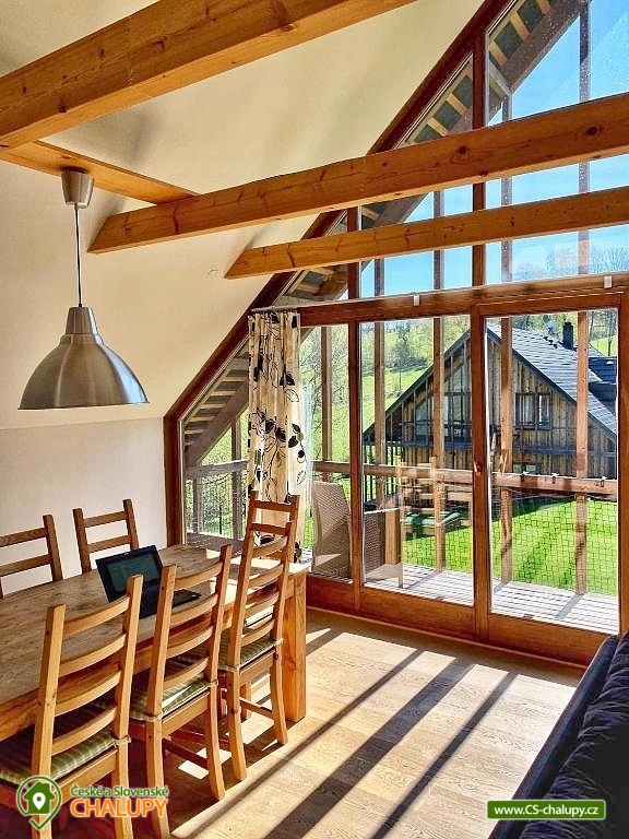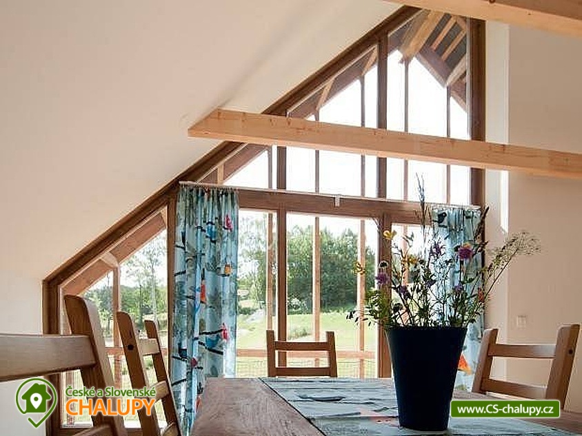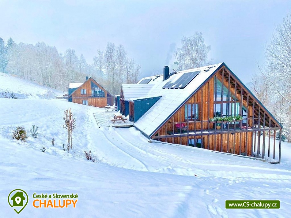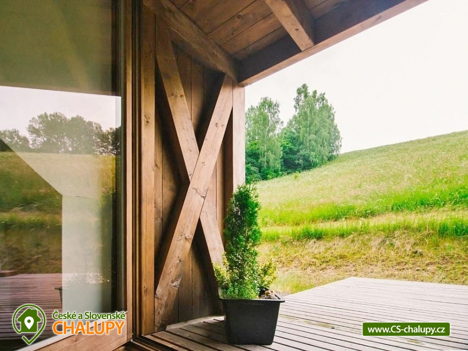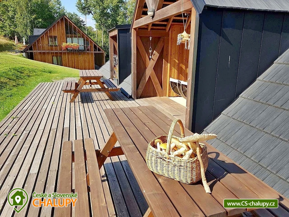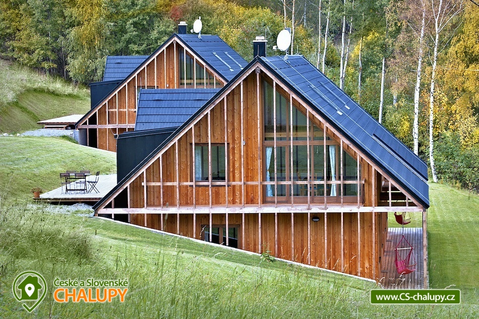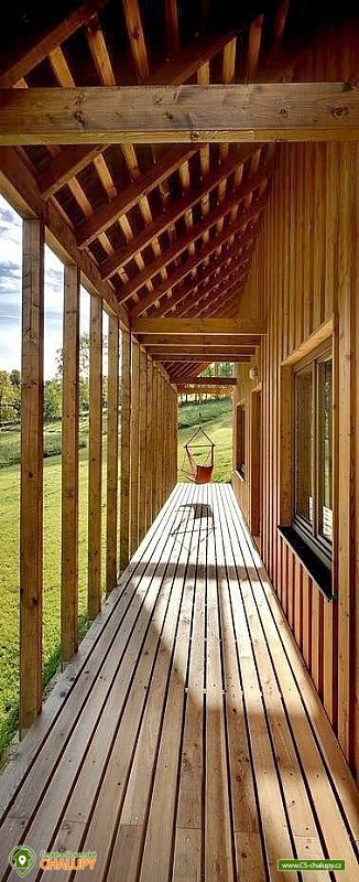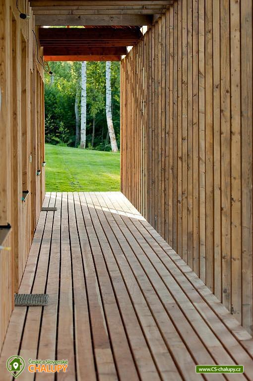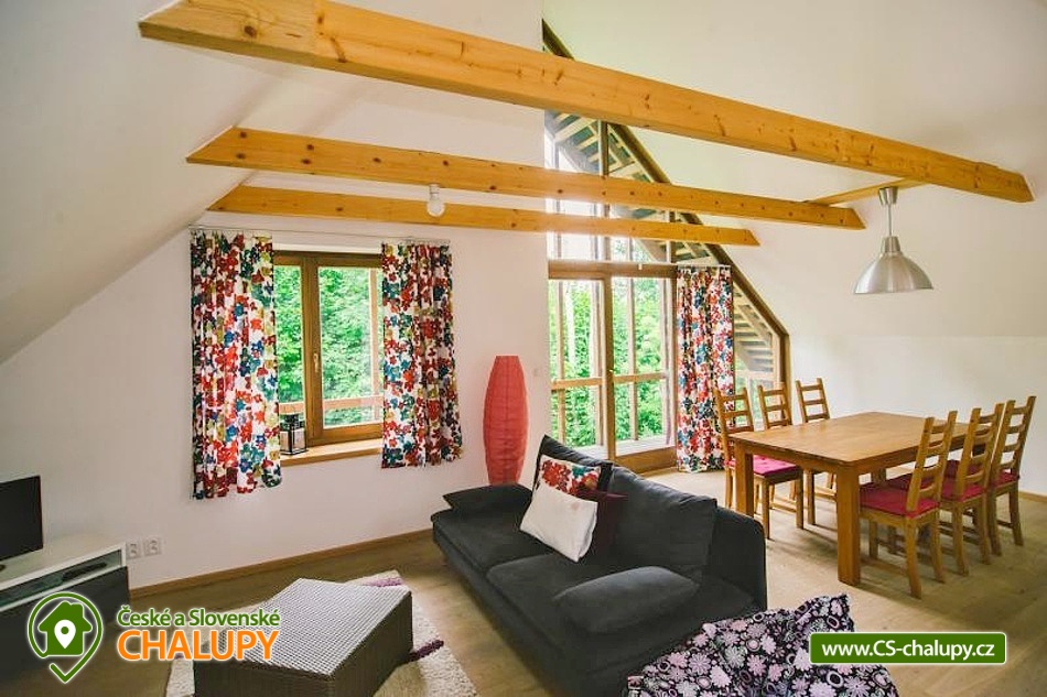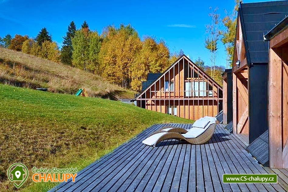 Dvě luxusní chalupy Šumava s koupacím jezírkem se nachází na samotě u lesa u obce Dlouhá Ves, poloha nad řekou Otavou. Jedná se o dvě samostatné chalupy umístěné na pozemku o velikosti 1,5ha a vzdálené 80 m od sebe. Každá chalupa se skládá ze dvou zcela oddělených stejných mezonetových apartmá o rozloze 125 m2 s terasami (40 m2). Každé apartmá má vlastní vchod, nesdílí s druhým apartmá žádnou společnou zeď a je zcela samostatné. Soukromí všech hostů je zajištěno. Luxusní Chalupy nabízí ubytování pro až 20 osob ve 4 samostatně pronajímaných apartmánech. Každé apartmá má k dispozici kapacitu pro 5 osob ve dvou ložnicích umístěných ve spodním patře. Všechny ložnice jsou vybavené úložnými prostory, velmi komfortními postelemi a lůžkovinami. Na každé posteli jsou speciální 5 cm masážní podložky, díky kterým se opravdu dobře vyspíte. První ložnice je dvoulůžková (1 x manželská postel) a druhá ložnice třílůžková (1x manželská postel + 1x jednolůžko). Obě ložnice mají kvalitní postele. Po domluvě možné dvě přistýlky řešené rozkládací pohovkou v spacím koutě, který není oddělený dveřmi. Dětskou postýlku lze zajistit. Součástí všech apartmánů je v patře umístěná velká, světlá obývací místnost, ve které je k dispozici pohovka, křesla, stolek, LED TV a jídelní stůl pro 6 osob. Po domluvě lze zajistit jídelní židličku. Skrz velká okna s proskleným štítem si lze užívat krásný ničím nerušený výhled do panenské přírody. Obývací místnost je spojená s plně vybavenou kuchyní (varná indukční deska, myčka nádobí, moderní trouba, kávovar a digestoř). Z této místnosti lze také vstoupit na jižní dřevěnou terasu umístěnou na úrovni terénu s posezením a slunečníkem. K zapůjčení jsou lehátka. Každý apartmán má také zastřešený balkon s krásným výhledem. Sociální zařízení v jednom apartmánu zahrnuje jednu koupelnu se dvěma umyvadly, přebalovacím pultem a vchodem do oddělené sprchy. Dále je k dispozici jedno WC u obývacího prostoru a jedno WC ve spodním patře s ložnicemi. K zapůjčení jsou ručníky, osušky, povlečení, utěrky a náhradní peřiny. Vytápění je řešeno nejmodernějším kotlem na peletky. Dále je k dispozici bojler 500 litrů pro jednu chalupu na teplou vodu. Objekt má také vlastní studnu s kvalitní vodou a vlastní čističku. V celém objektu je k dispozici WIFI připojení na internet. Kolem chalupy se rozléhá travnatá zahrada, kde je možné relaxovat nebo si lze také užívat společné koupací jezírko. Obě chalupy mají také vnitřní společný zastřešený prostor, kde je možné sedět např. za deště, s výhledem do krajiny přes prosklenou střechu. V každé chalupě je pro dvě apartmá k dispozici jeden gril. Posedět lze u ohniště. Pro všechny ubytované děti je k dispozici pískoviště a trampolína. Parkovat lze 30 metrů od chalup. Pro výklad zavazadel lze přijet až k chalupě. V okolí chalup možnost turistiky, cykloturistiky, koupání, houbaření, rybaření, lyžování a běžkování. V blízkosti je také jízdárna. Mezi možnosti koupání patří např.: aquapark Sušice, koupaliště Hartmanice, koupaliště Sušice, koupaliště Petrovice u Sušice, lom Čimické jezírko, rybník Bušek, Úbislavický rybník, koupaliště Rohanov, rybník Zdíkovec, rybník Valcha, koupaliště Kvilda, Přírodní koupaliště Žabáky, atd. V zimním období jsou k dispozici blízká lyžařská střediska: Hartmanice, Kašperské Hory, Nezdice a další. K výletům v okolí láká okolí řeky Otavy, Vyhlášený skleněný oltář Dobrá Voda, Kašperské Hory, hrady Kašperk, Velhartice a Rabí či Krásná ZOO Lohberg. Těšíme se na Vás u nás.