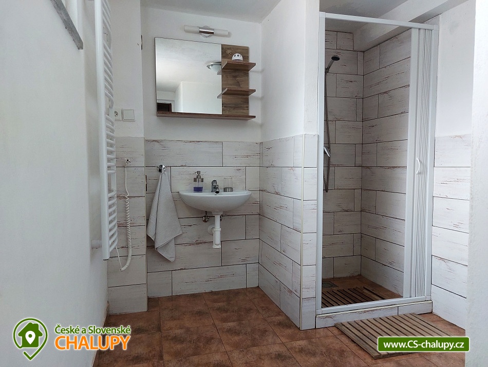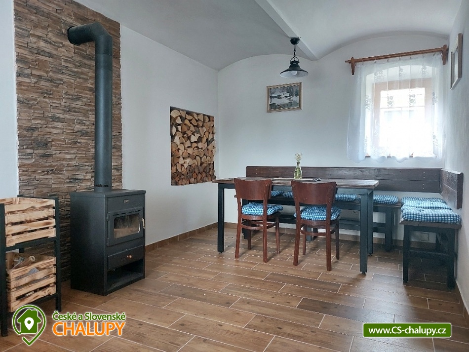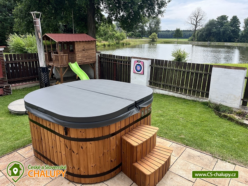 Chalupa s vyhřívaným koupacím sudem s vířivkou u hradu Choustník na Táborsku. Ubytování s nádherným výhledem na obecní rybník je perfektní pro rodiny, páry i skupiny přátel, kteří chtějí relaxovat v přírodě a zároveň mít na dosah spoustu atraktivních míst. Kapacita chalupy je až 8 osob ve 2 ložnicích. Chaloupka nabízí dvě útulné ložnice a maximální kapacita pro ubytování je 8 lidí + 1 prťous v dětské postýlce. Menší ložnice – pohodlná manželská postel (180 × 200 cm) a jedno menší lůžko (90 x 200 cm). Větší ložnice – manželská postel (180 x 200 cm) a tři samostatná lůžka (90 x 200 cm), ideální pro rodinu s dětmi nebo skupinu přátel. Možno přidat dětskou postýlku pro prťouse. Stravování - V chaloupce se nachází kuchyně vybavená plynovým vařičem se dvěma plotýnkami a elektrická ploténka. Dále se zde nachází lednička s mrazákem, mikrovlnná trouba, toustovač. Sociální zařízení - V koupelně naleznete sprchový kout, umyvadlo a zrcadlo. Záchod je umístěn v oddělené místnosti hned vedle koupelny. Vytápění - Společenská místnost je vybavena krbovými kamny s výměníkem a teplo je rozvedeno do radiátorů po celém objektu. V ložnicích jsou pro jistotu umístěny přímotopy, kdyby se vám nechtělo zatápět na noc v kamnech. Auto můžete nechat zaparkované před chalupou na travnaté ploše nebo přímo ve dvoře chalupy. Do dvora se vejde jeden osobní automobil a před chalupou můžou zaparkovat až tři auta. V okolí: Zřícenina hradu Choustník (1 km) – tajemná historie a krásné výhledy, Chýnovské jeskyně (15 km) – fascinující podzemní svět, Zámek Červená Lhota (19 km) – pohádkový zámek uprostřed rybníka, Historické centrum Tábora (21 km) – úzké uličky, husitská historie, Hrad Kámen (23 km) – unikátní hrad s expozicí motocyklů, Zámek Hluboká nad Vltavou (50 km) – perla jihočeské architektury. Další zajímavá místa - Rozhledna Čermákův vrch (4 km) – nádherný panoramatický výhled, Letecké muzeum Deštná (15 km) – expozice letadel a letecké historie, Provaznické muzeum Deštná (15 km) – tradiční české řemeslo a Zoologická zahrada Větrovy (20 km) – skvělý výlet pro rodiny. Těšíme se na Vás u nás.