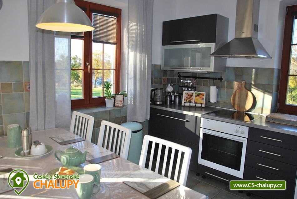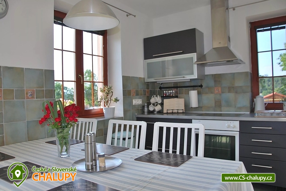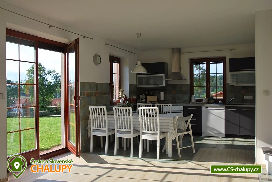 Chalupa s krytým venkovním vyhřívaným bazénem v lokalitě Český ráj - Turnovsko. Chalupa na polosamotě u lesa v krásném prostředí Českého ráje pod horou Kozákov nedaleko hradu Trosky a s výhledem na Ještěd. Chalupa nabízí příjemné procházky do chráněné krajinné oblasti Klokočské skály se zříceninou hradu Rotštejn (cca 2 km). Zároveň je výhodou blízkost města Turnova s veškerou vybaveností (cca 3 km). Chalupa k pronajmutí poskytuje ubytování pro až 11 osob ve 4 ložnicích. POPIS: Moderně vybavená kuchyňská linka s vestavěnými spotřebiči, lednice + mrazák, rychlovarná konvice, sklokeramická deska + elektrická trouba, myčka nádobí, mikrovlnná trouba, topinkovač, kávovar na Tchibo kapsle. Nádobí komplet k dispozici. Ručník a utěrky v kuchyni k dispozici. Ložnice v patře - 1. Ložnice se třemi lůžky 90x200 cm, 2. Ložnice s dvěma lůžky 90x200 cm a balkónem, 3. Ložnice s manželskou postelí 180 cm, gaučem (přistýlka) a balkónem. Ložnice v přízemí - 4. Ložnice s manželskou postelí 180 cm a vstupem ke krytému bazénu, plus pracovní kout s pevným internetem. Povlečení a ručníky jsou součástí vybavení. Sociální zařízení: 2x WC v přízemí samostatné, 1x koupelna se sprchovým koutem, 1x WC a bidet v patře součástí koupelny s vířivou vanou, bojler - 160 l. V koupelně je též k dispozici fén a žehlička na vlasy. Vytápění chalupy: Krbová kamna, přímotopy, podlahové elektrické topení v koupelně v přízemí. Další vybavení: Televize s USB a HDMI připojením, knížky, internet, společenské hry. Parkování přímo u chalupy (1 garážové stání + zbytek venku na vyhrazené ploše). U chalupy je Vám k dispozici: venkovní krytý vyhřívaný bazén, 6x3 m (hloubka 120 cm) k dispozici cca od dubna do října, stolní tenis, zahrada 5000 m2, venkovní gril, kotlík, ohniště a venkovní posezení. V okolí doporučujeme: hrad Valdštejn, Malá Skála - Pantheon, Klokočské skály, Drábské světničky, zámky Hrubá Skála, Sychrov, skalní město, zlatá stezka Českého ráje, dominanta Českého ráje – zřícenina hradu Trosky, hrad Kost, město Turnov 3 km, kde se nachází nově vybudovaný bazénový komplex. Velmi oblíbené jsou bohaté cyklostezky napříč Českým rájem a procházky po lese (borůvky, houby). Kozákov (restaurace s rozhlednou). Paragliding Kozákov. Koupání: aquapark Turnov, Malá Skála - Žlutá plovárna a rafty na Jizeře. Lyžařská střediska: Kozákov, Liberec – Ještěd, Koberovy – Hamštejn, Lišný, Vysoké nad Jizerou – Šachty, Tanvaldský špičák. V zimní sezoně Ski areál Struhy přímo v Turnově (příjemná sjezdovka vhodná i pro nejmenší). V blízkém okolí (půl hodiny autem) jsou výborné lyžařské podmínky v Krkonoších, Jizerských horách, na Bedřichově (běžecká magistrála, kde se pravidelně běží Jizerská padesátka), 20 km od ubytování jsou sjezdovky na Ještědu. Těšíme se na Vás u nás.