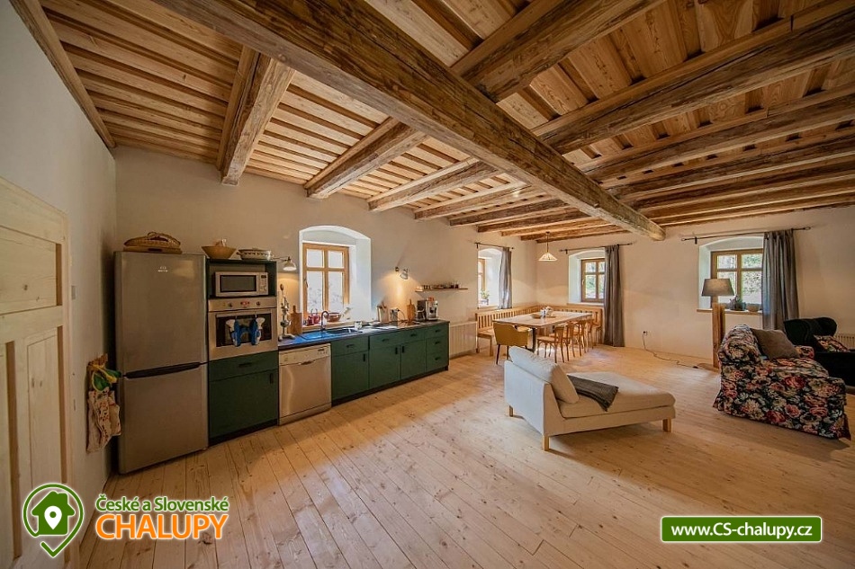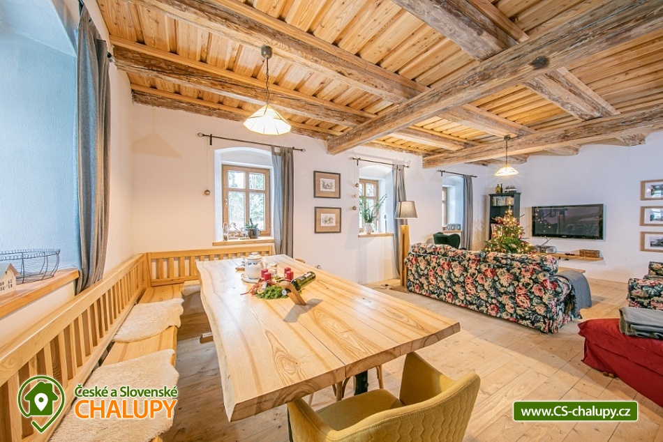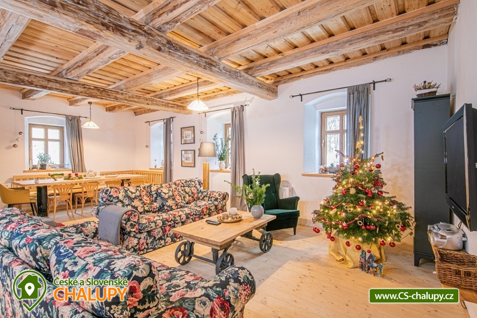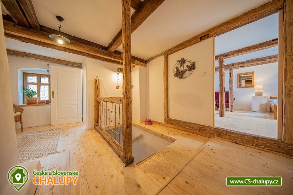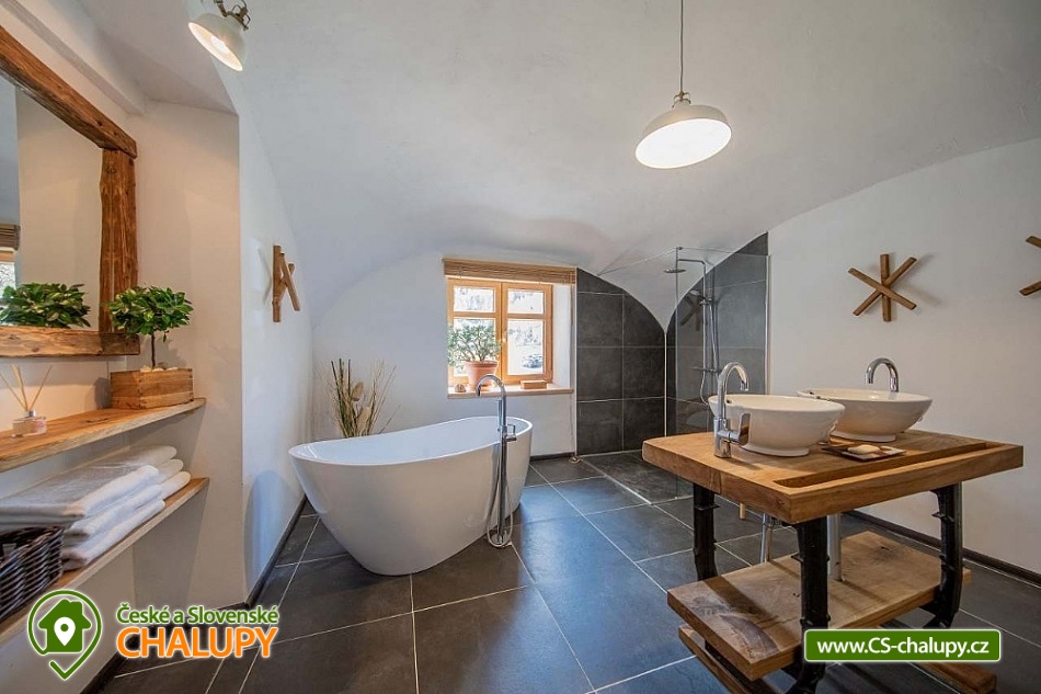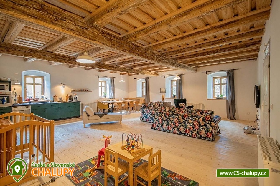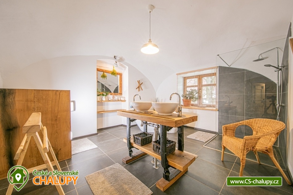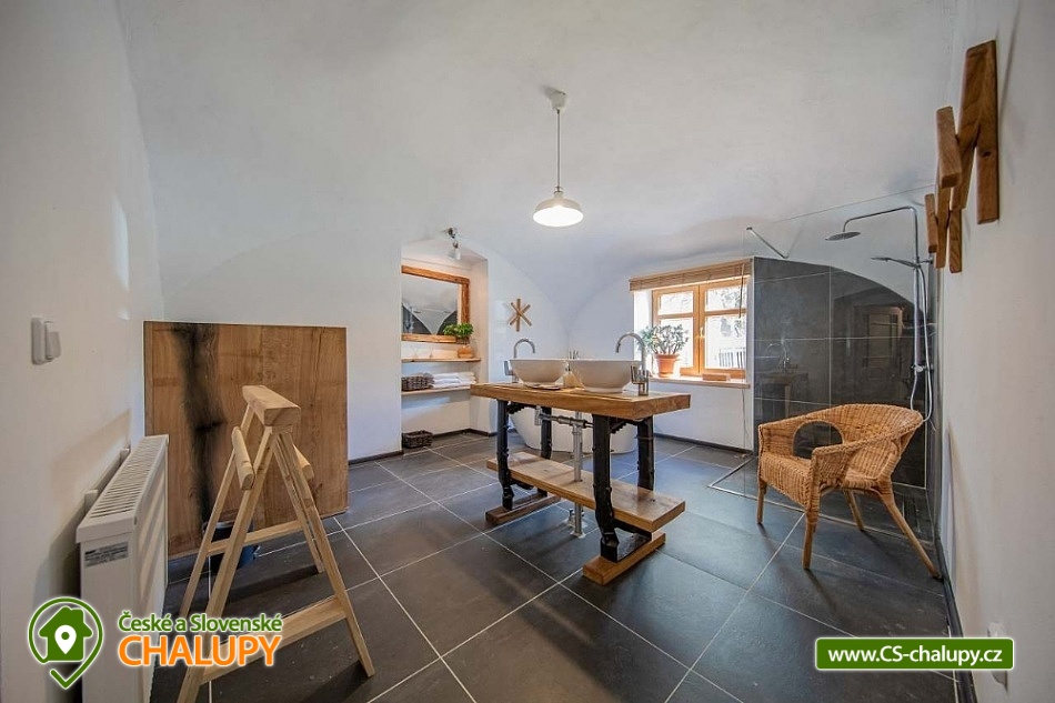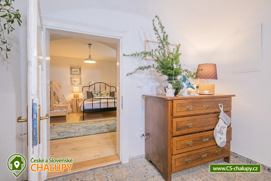 Komfortní chalupa se saunou se nachází 15 km od Karlovy Studánky, která je považována za místo s nejčistším ovzduším v České republice. Chalupa v osadě Skrbovice prošla kompletní rekonstrukcí. Nabízíme Vám útulné ubytování s kapacitou až 12 lůžek, ideální pro rodiny s dětmi. V chalupě jsou k dispozici tři ložnice - každá s kapacitou 4 lůžek. V přízemí chalupy se nachází velkorysá společenská místnost, která je vybavena moderní kuchyní, velkým jídelním stolem, sedačkou a televizí. Na tuto místnost navazuje větší veranda. V přízemí je rovněž jeden pokoj pro 4 - 5 osob (patrová postel) a velká moderní koupelna vybavena jak sprchovým koutem, tak pohodlnou vanou určenou nejen pro relaxaci. Z chodby po původním schodišti vystoupáme do podkroví chalupy, kde se nachází další dva pokoje. Jeden větší, pro 4 osoby, druhý menší, rovněž pro 4 osoby s rozkládací postelí. V patře se také nachází druhá toaleta s malým umyvadlem. Pro hospodyňky: myčka s tabletami, lednička s mrazákem, mikrovlnná trouba, elektrická trouba, sklokeramická deska, presso na zrnkovou kávu (k dispozici 1kg kávy), kompletní vybavení nádobím a základním kořením. Kuchyň je taktéž vybavena jarem, houbičkou na nádobí a utěrkami. Pro maminky: možnost dětské cestovní postýlky, krmící židličky, dětská jídelní sada, vanička, nočník (prosíme o upozornění předem). Pro děti je k dispozici dětský koutek ve společenské místnosti s dřevěnými hračkami. V chalupě je elektrické vytápění, parkování je u objektu a je pod dohledem kamer. Chalupa leží přímo na cyklostezce, kromě romantických procházek po okolí a sběru lesních plodů a hub se Vám proto nabízejí i vzdálenější místa na probádání. Určitě si u nás vyzkoušejte i "den bez auta" - jen 2 km od nás je vlaková zastávka Skrbovice. Výlet vlakem bude jedinečným zážitkem nejen pro děti, ale i dospělé. Fanoušci památek si přijdou na své prohlídkou muzea a zámku Bruntál. Horké letní dny strávíte ideálně u vody - Koupaliště Bruntál, Rybník Andělská Hora, Vodní nádrž Slezská Harta atd. Lyžaři a snowboardisté si zase zamilují zasněžené svahy středisek Ski Annaberg, Arena Vrbno, Vleku Vraclávek, Ski areálu Ludvíkov, Čerťák a mnoha dalších.