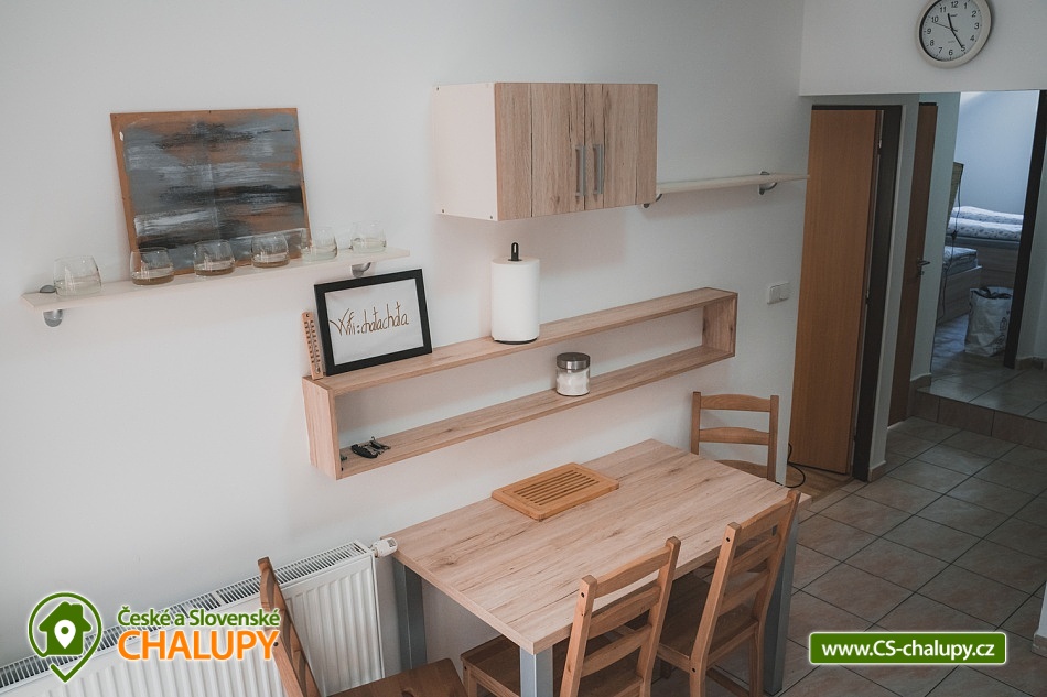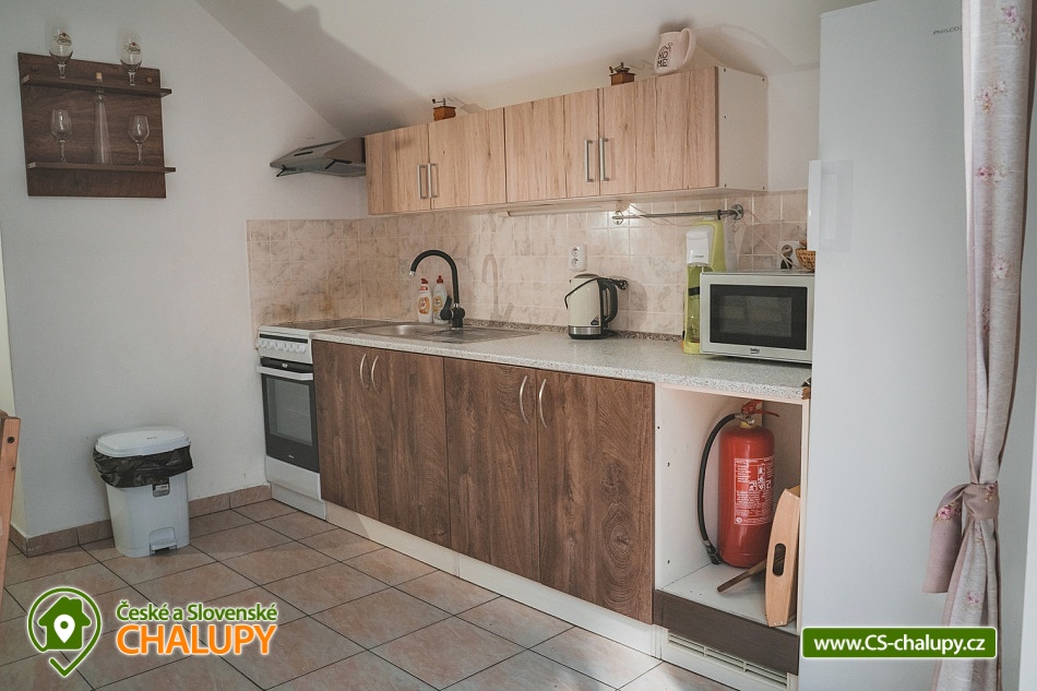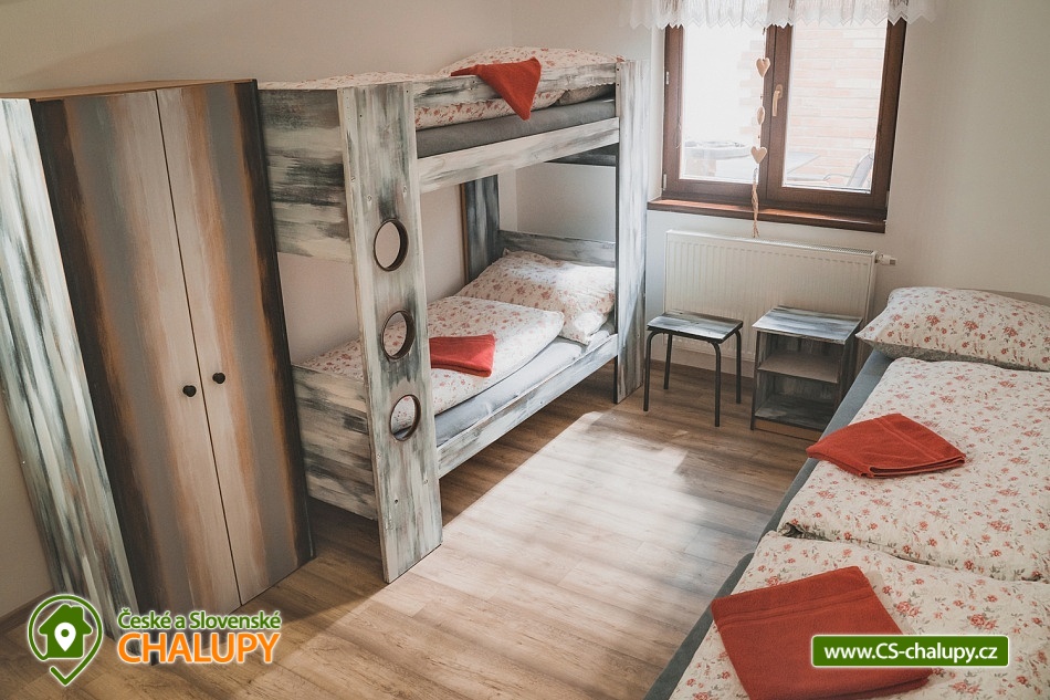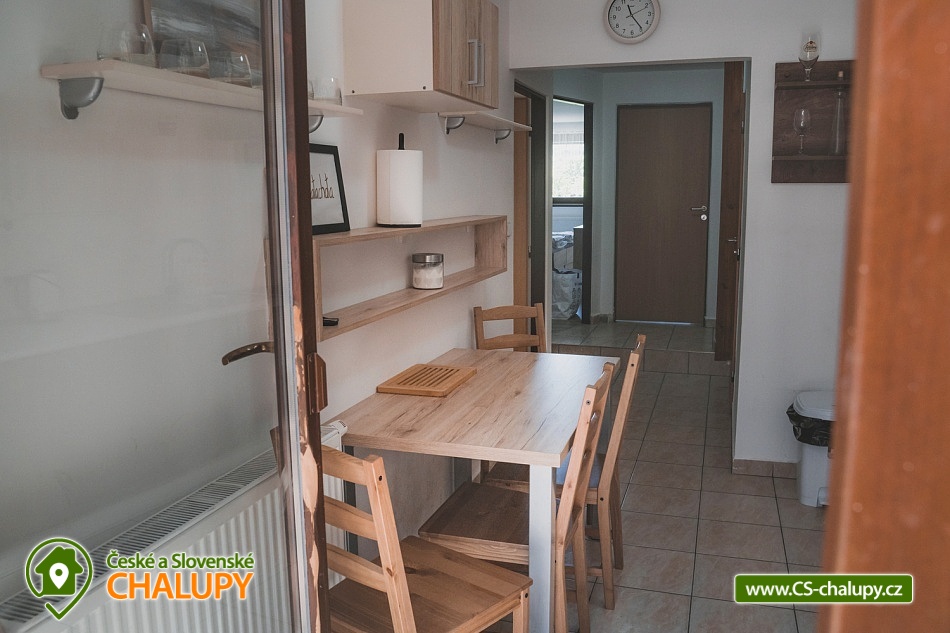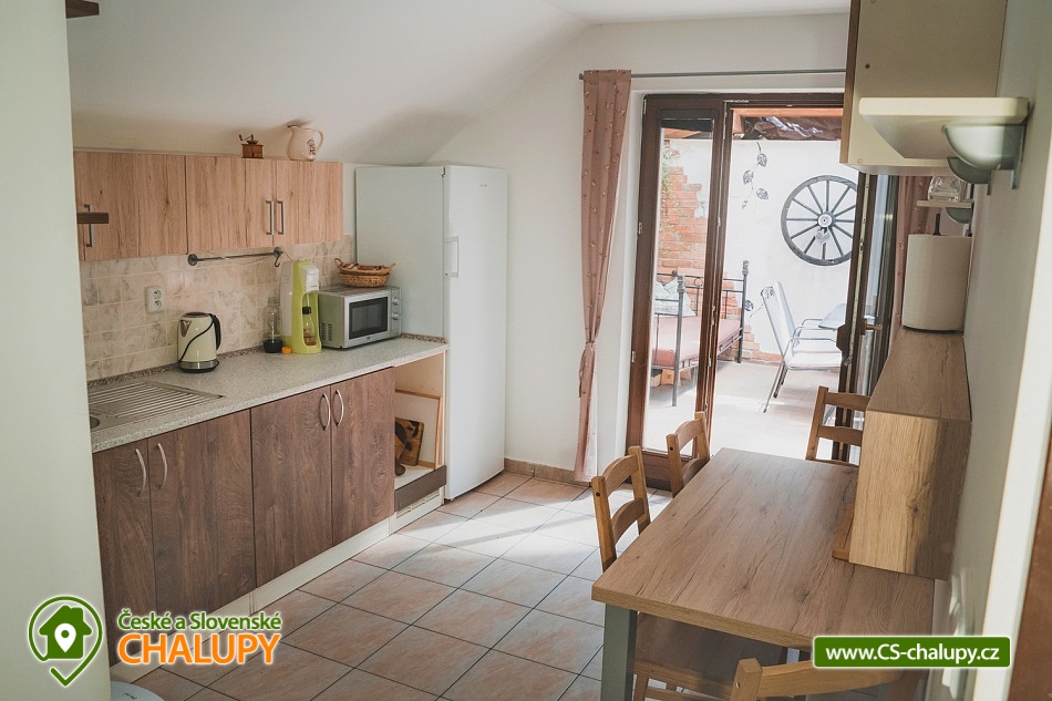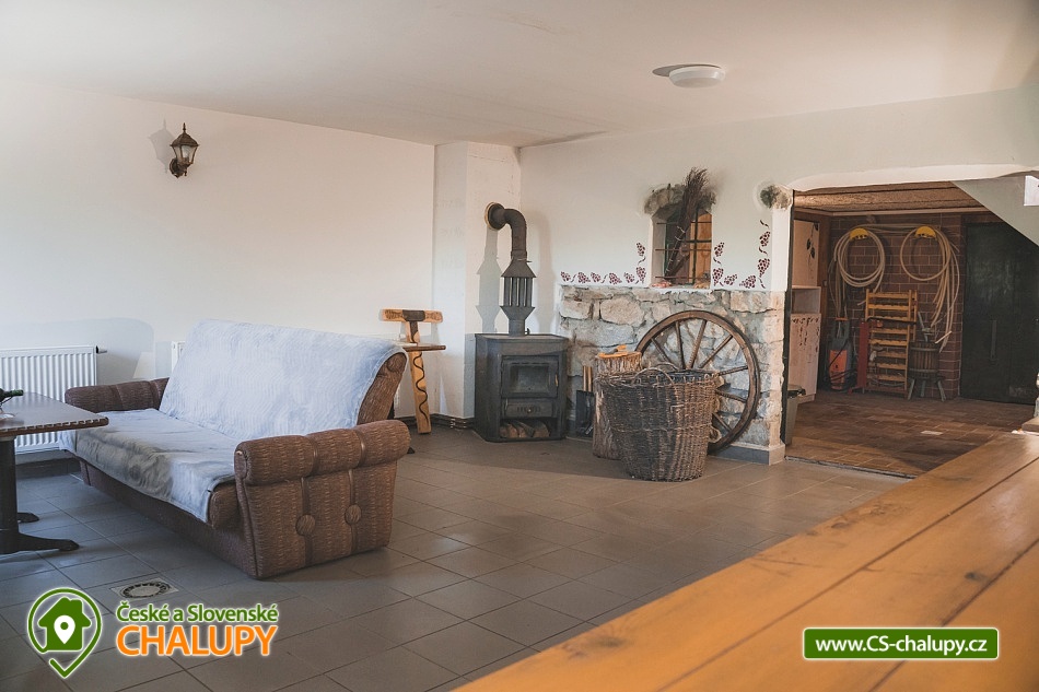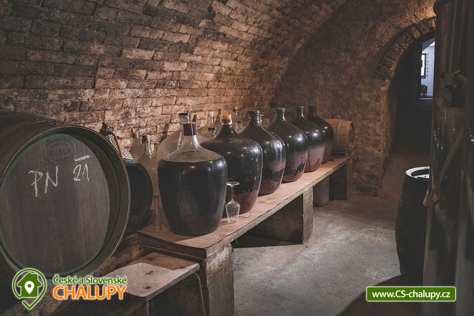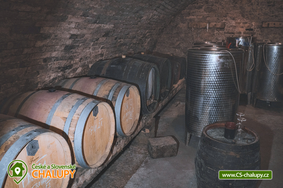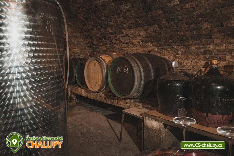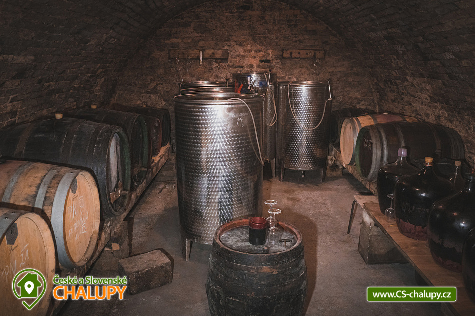 Chalupa a vinný sklep se nachází nedaleko jihomoravského města Hustopeče a Lednicko-valtického areálu zapsaného na seznamu světového dědictví UNESCO. Poloha u Novomlýnské přehradní nádrže - Pálava. Těšit se můžete na posezení v hlubokém vinném sklepě, který je dominantou celého objektu a slouží k řízené degustaci. Chalupa a vinný sklep nabízí ubytování pro až 12 osob ve třech čtyřlůžkových ložnicích. Po domluvě lze zajistit pobyt se snídání. Všechny tři ložnice se nachází v patře, jedna ložnice má k dispozici patrovou postel a dvě jednolůžka, v dalších dvou jsou umístěné čtyři jednolůžka s možností spojit je do dvoulůžek. Všechny ložnice jsou vybavené skříní, nočním stolkem, TV a WIFI. V patře je dále umístěná plně vybavená kuchyň (varná deska, lednice, mikrovlnná trouba a varná konvice). Z kuchyně se vstupuje na útulnou zastřešenou terasu s krbem s možností grilování. Po domluvě jsou k dispozici během pobytu přívlastková vína, obložené mísy a maso na grilování. V patře je také k dispozici koupelna se sprchovým koutem a WC. V přízemí lze posedět v obývací místnosti s krbovými kamny, dvěma sedacími soupravami (možnost dalších přistýlek) a TV. K dispozici je zde druhá koupelna se sprchovým koutem a WC. Ve vinném sklepě lze zajistit řízenou degustaci kvalifikovaným degustátorem. U chalupy je zahrada a v létě je možné posedět a opalovat se na druhé venkovní letní terase. Děti se mohou těšit na dětské hřiště. K dispozici je úschovna pro kola a lyže. Parkovat lze přímo u objektu. V okolí možnost turistiky, cykloturistiky, koupání, rybaření, houbaření a lyžování. Přímo v okolí chalupy je hřiště pro děti, přírodní areál u Myslivny, koně a hospůdka s venkovním posezením. V obci lze využít fotbalové a tenisové hřiště. V okolí je spousta cyklistických (vinných) tras s výhledem do krásné přírody. Mezi možnosti koupání patří např.: bazén Hustopeče, koupaliště Hustopeče, koupaliště Horní Bojanovice, vodní nádrž Nové Mlýny, koupaliště Němčičky, koupaliště Žabčice, aquapark Pasohlávky Aqualand Moravia, koupaliště Koupaliště města Židlochovice, bazén Blučina, atd. K dalším výletům lákají Hustopeče se ZOO farmou, Mandloňovými sady s rozhlednou na město, dále obec Zaječí s Vinařstvím u Kapličky s wellness, Zámek Židlichovice, NP Podyjí, Vodní nádrž Nové Mlýny nebo historické centrum Brna. Těšíme se na Vás u nás.