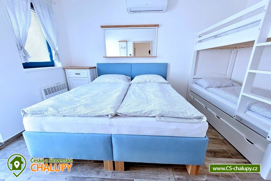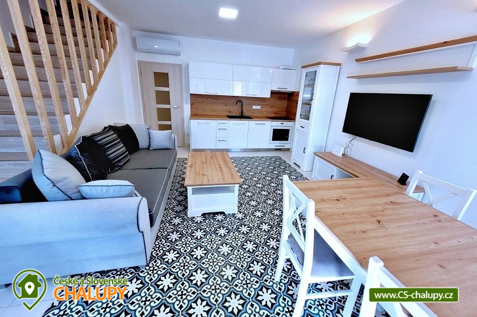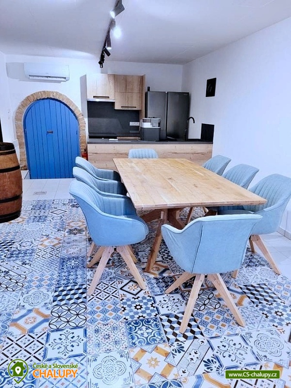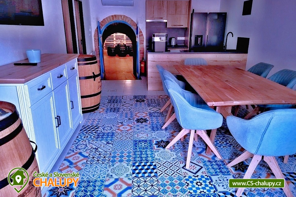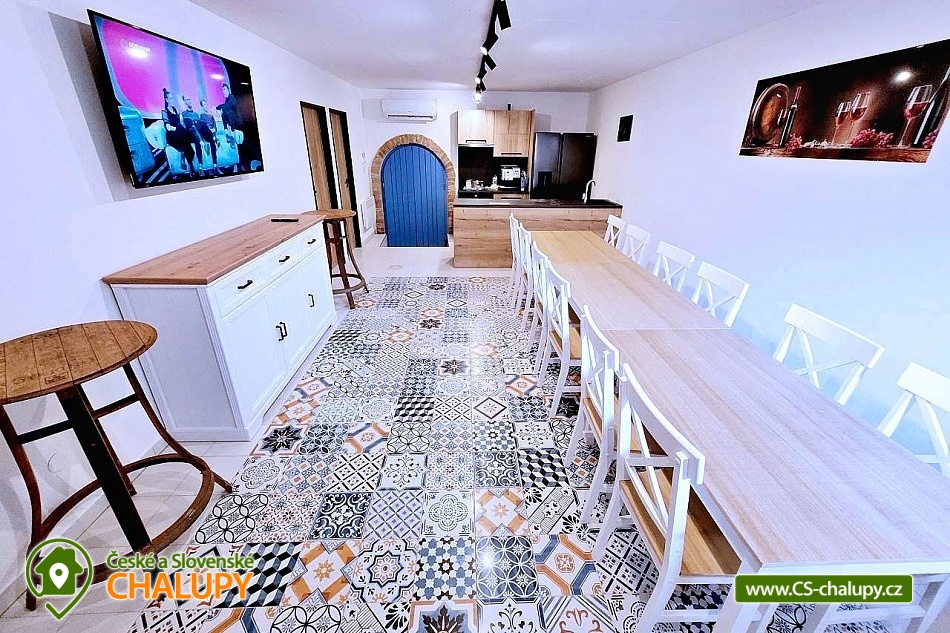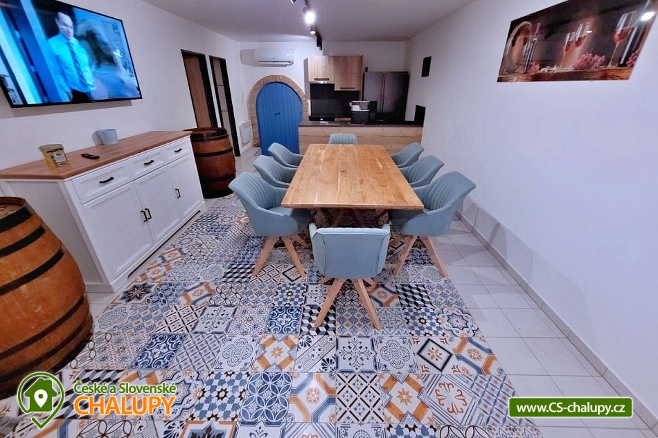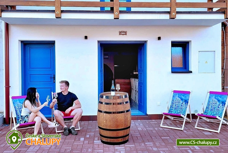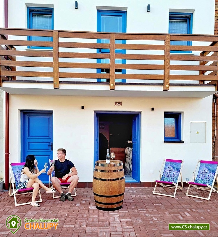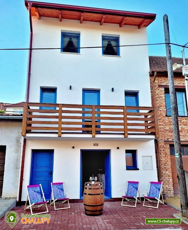 Chalupa a vinný sklep Pálava nedaleko Levandulové farmy Starovičky, ve vinařském městečku Velké Pavlovice s polohou u vinařské stezky Krajem vína - krajem André vedoucí vinicemi, mandloněmi a meruňkovými sady. Chalupa leží mezi sklepy místních vinařů, na klidném místě. Součástí objektu je vinný sklep s víny od místních vinařů. Poblíž se nachází Pálava, zámek Lednice a spousta dalších zajímavých míst jižní Moravy. Chalupa poskytuje ubytování pro až 8 osob ve 2 ložnicích. V přízemí sklepu je klimatizovaná vinárna s kuchyňským koutem a toaletou. Z vinárny je volný vstup do kvelbeného historického sklepu s odrůdovými víny. V 1. patře je klimatizovaný obývací pokoj s vybaveným kuchyňským koutem (trouba, myčka, lednice a kávovar). Chodbička s vestavěnou skříní a koupelna. Ve 2. patře dvě klimatizované ložnice po čtyřech pevných lůžkách, koupelna a chodbička s věšákem. Vybavení: Ve vinárně televize, vybavený kuchyňský kout s troubou, myčkou, indukční varnou deskou a americkou lednicí. V obýváku televize a vybavený kuchyňský kout s indukční varnou deskou, myčkou, troubou a lednicí. Klimatizace. Sociální zařízení: V přízemí wc s umyvadlem, v prvním patře koupelna s wc a sprchovým koutem, ve druhém patře koupelna s wc a sprchovým koutem. Vytápění: Tepelné čerpadlo. Parkování je možné před a za chalupou. Nedaleko je koupaliště v obci Němčičky, Horní Bojanovice, Hustopeče a aquapark Pasohlávky. Možnost vyhlídkových plaveb na přehradě Nové Mlýny pod Pálavou. Nedaleko je také Lednicko - Valtický areál se Státním zámkem Lednice, kousek je to na levandulovou farmu Starovičky. Těšíme se na Vás u nás.
