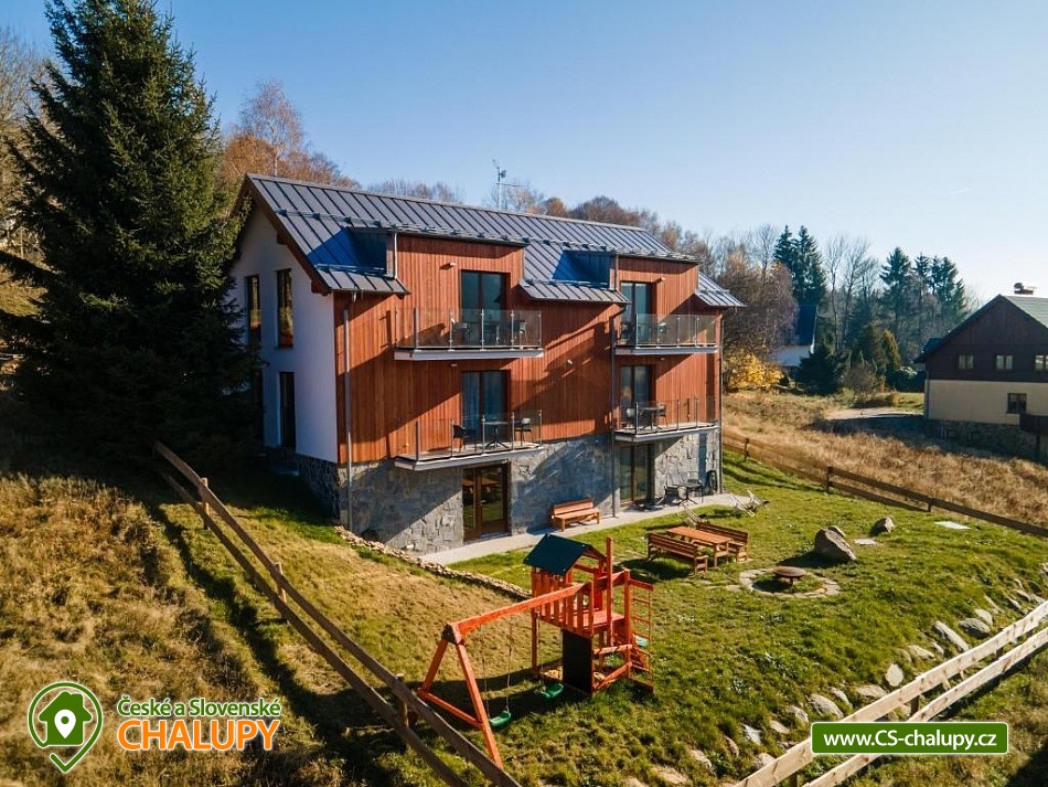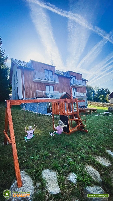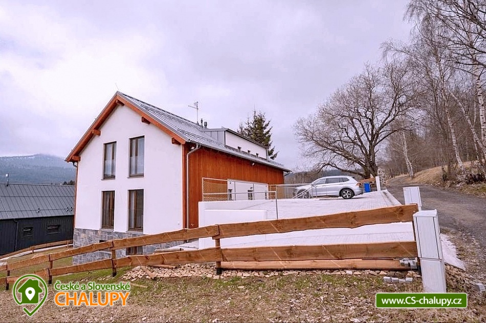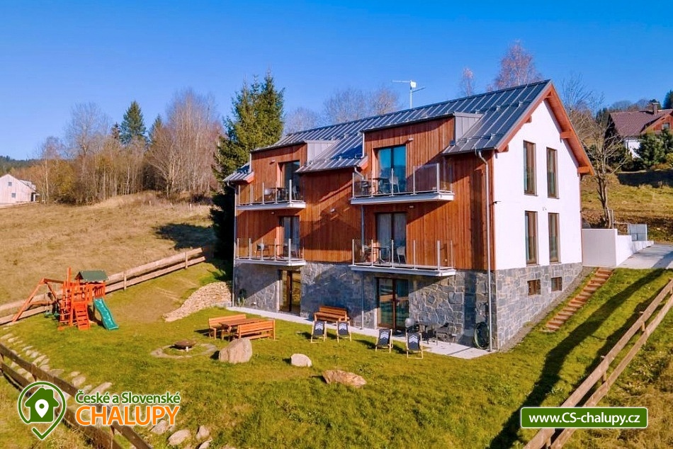 Chalupa Alpalouka nedaleko Černého jezera a Přírodní památky Královský hvozd u města Železná Ruda na Šumavě. Kapacita chalupy je až 20 osob ve 4 apartmánech. Popis - Všechny apartmány mají obývací pokoj s kuchyní a 2 ložnice (1 pokoj manželská postel a druhý pokoj má 2 oddělené postele), koupelna (sprchový kout a WC), balkon/terasa. Plně vybavené kuchyně v každém apartmánu - mikrovlnná trouba, varná konvice, kávovar, mixér, varná deska a trouba. Sociální zařízení - Všechny apartmány mají koupelnu (sprchový kout a WC), toaleta se nachází také u společenské místnosti. Vytápění - Každý apartmán má radiátory s termostaty. TV se nachází ve všech apartmánech i ve společenské místnosti. Dále k dispozici lyžárna a u chalupy na zahradě je ohniště, venkovní posezení a dětské hřiště. Parkování - 6 parkovacích míst u chalupy. Chalupa se nachází se na poklidném kopci, obklopená smrky, které vytvářejí kouzelnou atmosféru klidu a harmonického souznění s přírodou. Okolí nabízí vyžití jak v létě tak v zimě. A to jak pro lenochy, tak pro sportovní nadšence. Každý si tu najde to své. Cyklistika - cyklostezky v okolí, neváhejte vyrazit i za hranice do Bavorska. Zoo Lohber, Zoo Ludwigstahl, Aquapark – Osserbad. Pohádková stezka – začátek stezky 2,4 km od chalupy nebo se dá dojet vlakem do „Hojsova Stráž – Brčálník“ a začít stezku tam a ukončit u chalupy. Dále pěší výlety: na Čertovo jezero a Černé jezero. V zimě - Na lyžích od chalupy. Skiareál Špičák, Lyžařský areál Pancíř, Lyžařský areál Nad nádražím. Přímo u chalupy je pak lyžařský areál Alpalouka. Těšíme se na Vás u nás.