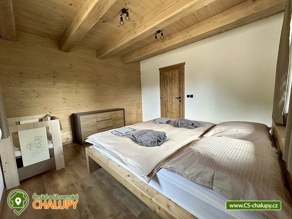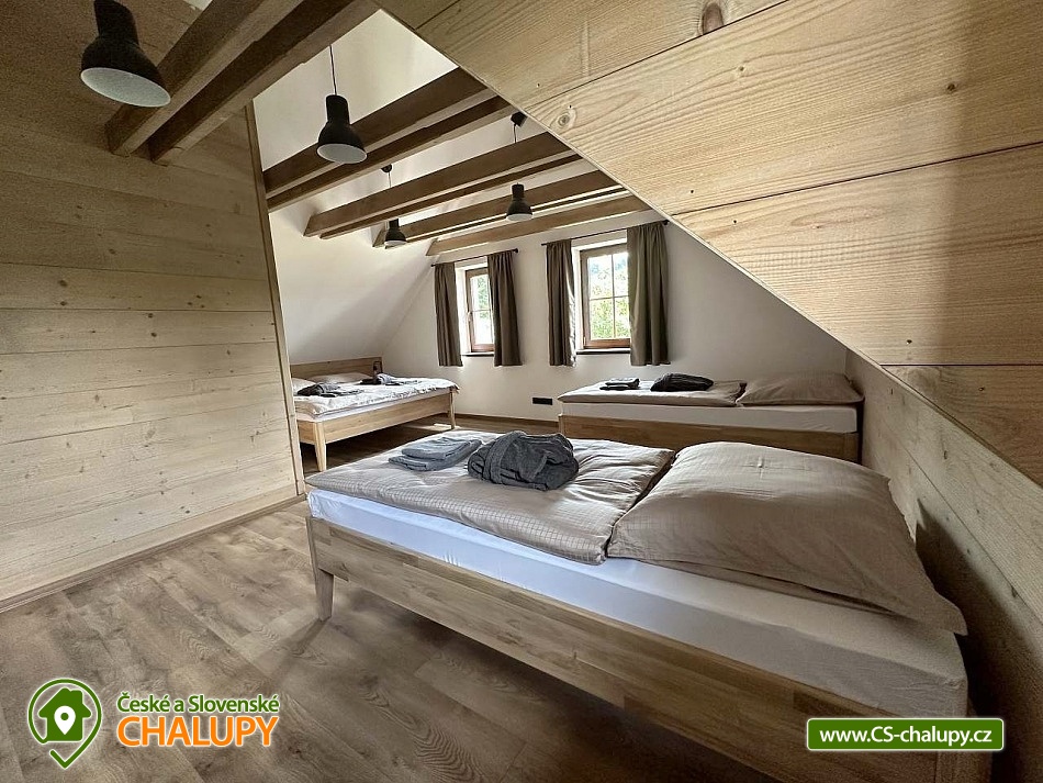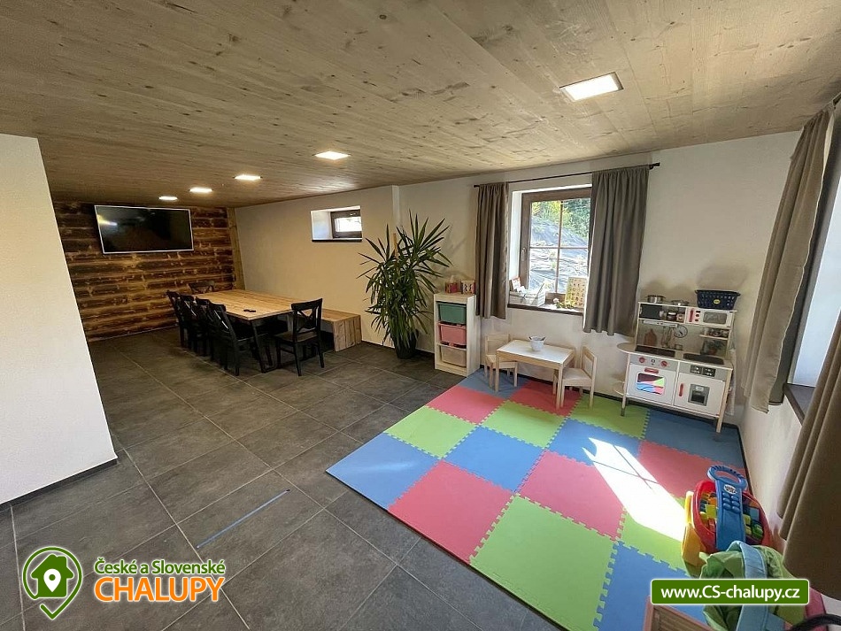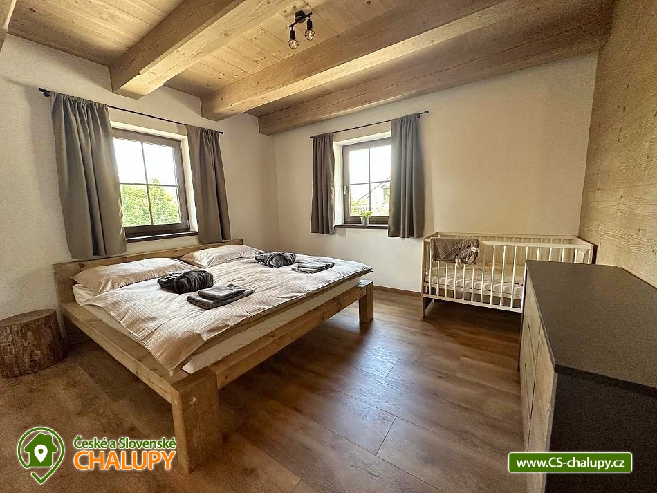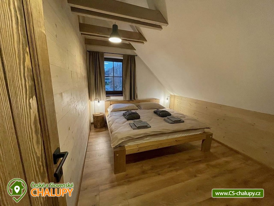 Chalupa s bazénem a saunou na pomezí Jizerských hor a Krkonoš, poloha u říčky Kamenice nedaleko obce Zlatá Olešnice. Těšit se můžete na venkovní bazén, saunu a ti nejmenší na dětské hřiště. Chalupa nabízí ubytování pro až 10 osob ve 4 ložnicích. V horním patře jsou k dispozici 2 dvoulůžkové ložnice, 1 čtyřlůžková (manželská postel a dvě samostatné postele) a koupelna s vanou a WC. V přízemí je 1 dvoulůžková ložnice, koupelna se sprchovým koutem a WC. Prostorný obývací pokoj se vstupem na balkon, krbová kamna a velký jídelní stůl. Uvařit si můžete v plně vybavené kuchyni (lednice, mrazák, trouba, indukční deska, myčka, mikrovlnná trouba, toustovač, rychlovarná konvice, kávovar na zrnkovou kávu, topinkovač, mixér). Připraveny pro vás máme také 2 dětské postýlky a jídelní židličku. V suterénu chalupy je sezení s výčepním zařízením, dětský koutek, šipky, velká televize, finská sauna s odpočívárnou, sprchový kout a samostatná toaleta. Každý host u nás dostane svůj župan, osušky a ručníky. Na vyžádání můžeme zapůjčit herní konzole PlayStation a Nintendo. V celém objektu je k dispozici WIFI připojení na internet. Vytápění je v chalupě podlahové, každá místnost je samostatně regulovatelná digitálními termostaty. Další možností vytápění jsou krbová kamna. Parkování přímo u chalupy. Venku je připraveno posezení s grilem a ohništěm. V letních měsících lze využívat venkovní bazén. Pro malé návštěvníky je na zahradě k dispozici dřevěné dětské hřiště s houpačkou, skluzavkou a trampolína. V okolí chalupy možnost turistiky, cykloturistiky, koupání, houbaření. Mezi možnosti koupání patří například: koupaliště Zlatá Olešnice, koupaliště Bumbálka Jesenný, koupaliště Tanvald, koupaliště Jablonec nad Jizerou. Je zde na výběr z mnoha výletů: Bozkovské Jeskyně, Mumlavské vodopády, rozhledny Štěpánka, Černá Studnice, Kozí Farma v Pěnčíně, Příchovice U Čápa, Osada Jizerka, Protržená přehrada Desná. V zimě je přímo v obci lyžařský vlek s umělým zasněžováním, velké ski areály jsou v těsné blízkosti: Skiareál Paseky nad Jizerou, Plavy, Zlatá Olešnice, Kořenov - Rejdice, U Čápa - Příchovice. Těšíme se na Vás u nás.