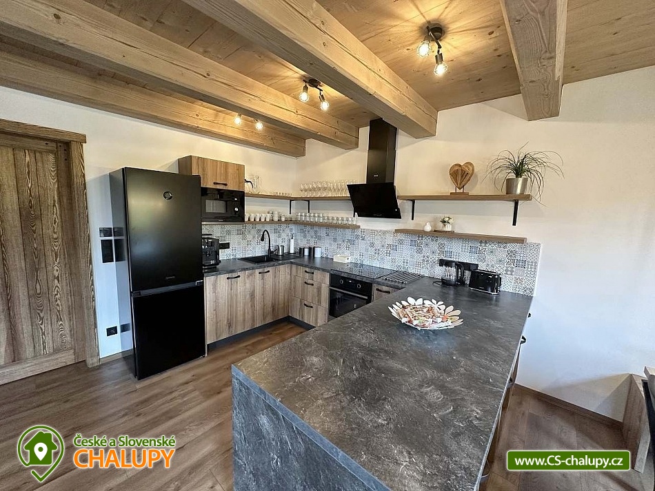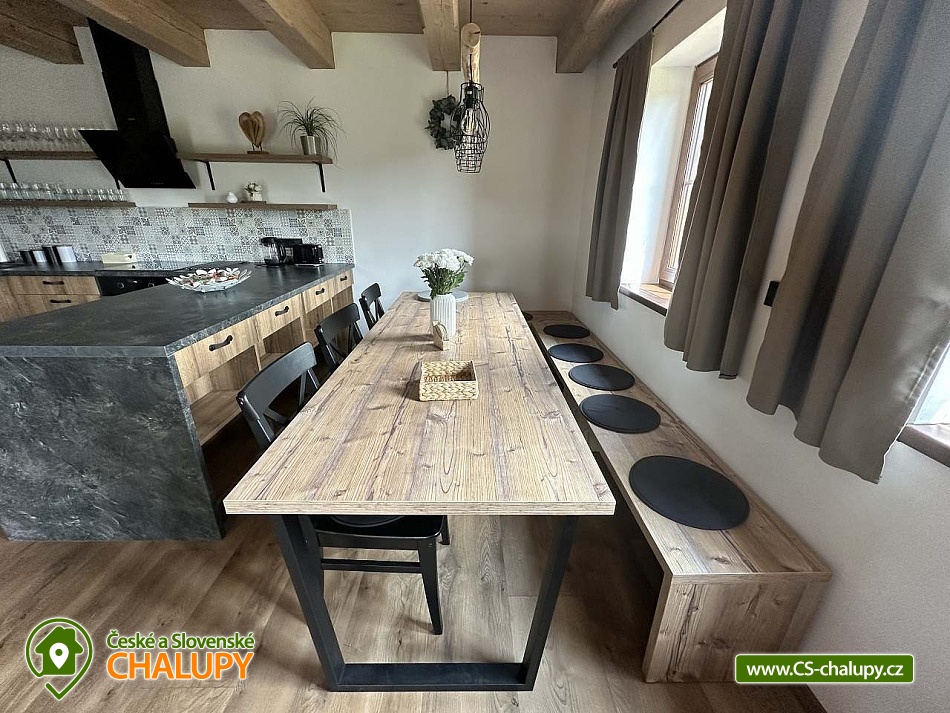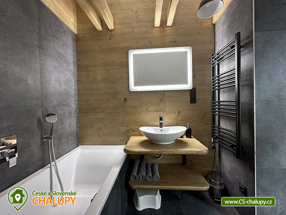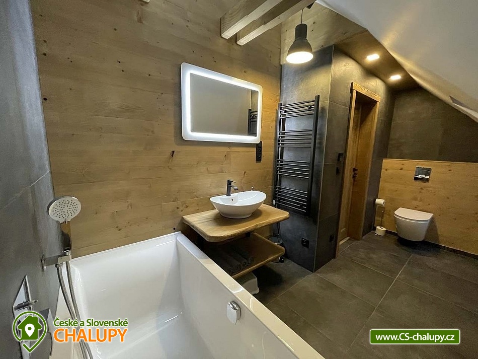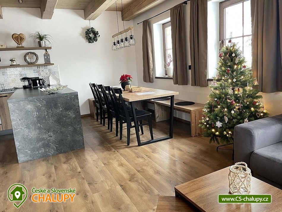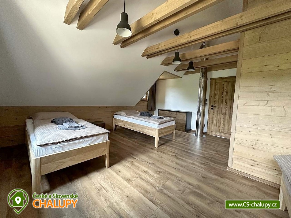 Chalupa s bazénem a saunou na pomezí Jizerských hor a Krkonoš, poloha u říčky Kamenice nedaleko obce Zlatá Olešnice. Těšit se můžete na venkovní bazén, saunu a ti nejmenší na dětské hřiště. Chalupa nabízí ubytování pro až 10 osob ve 4 ložnicích. V horním patře jsou k dispozici 2 dvoulůžkové ložnice, 1 čtyřlůžková (manželská postel a dvě samostatné postele) a koupelna s vanou a WC. V přízemí je 1 dvoulůžková ložnice, koupelna se sprchovým koutem a WC. Prostorný obývací pokoj se vstupem na balkon, krbová kamna a velký jídelní stůl. Uvařit si můžete v plně vybavené kuchyni (lednice, mrazák, trouba, indukční deska, myčka, mikrovlnná trouba, toustovač, rychlovarná konvice, kávovar na zrnkovou kávu, topinkovač, mixér). Připraveny pro vás máme také 2 dětské postýlky a jídelní židličku. V suterénu chalupy je sezení s výčepním zařízením, dětský koutek, šipky, velká televize, finská sauna s odpočívárnou, sprchový kout a samostatná toaleta. Každý host u nás dostane svůj župan, osušky a ručníky. Na vyžádání můžeme zapůjčit herní konzole PlayStation a Nintendo. V celém objektu je k dispozici WIFI připojení na internet. Vytápění je v chalupě podlahové, každá místnost je samostatně regulovatelná digitálními termostaty. Další možností vytápění jsou krbová kamna. Parkování přímo u chalupy. Venku je připraveno posezení s grilem a ohništěm. V letních měsících lze využívat venkovní bazén. Pro malé návštěvníky je na zahradě k dispozici dřevěné dětské hřiště s houpačkou, skluzavkou a trampolína. V okolí chalupy možnost turistiky, cykloturistiky, koupání, houbaření. Mezi možnosti koupání patří například: koupaliště Zlatá Olešnice, koupaliště Bumbálka Jesenný, koupaliště Tanvald, koupaliště Jablonec nad Jizerou. Je zde na výběr z mnoha výletů: Bozkovské Jeskyně, Mumlavské vodopády, rozhledny Štěpánka, Černá Studnice, Kozí Farma v Pěnčíně, Příchovice U Čápa, Osada Jizerka, Protržená přehrada Desná. V zimě je přímo v obci lyžařský vlek s umělým zasněžováním, velké ski areály jsou v těsné blízkosti: Skiareál Paseky nad Jizerou, Plavy, Zlatá Olešnice, Kořenov - Rejdice, U Čápa - Příchovice. Těšíme se na Vás u nás.