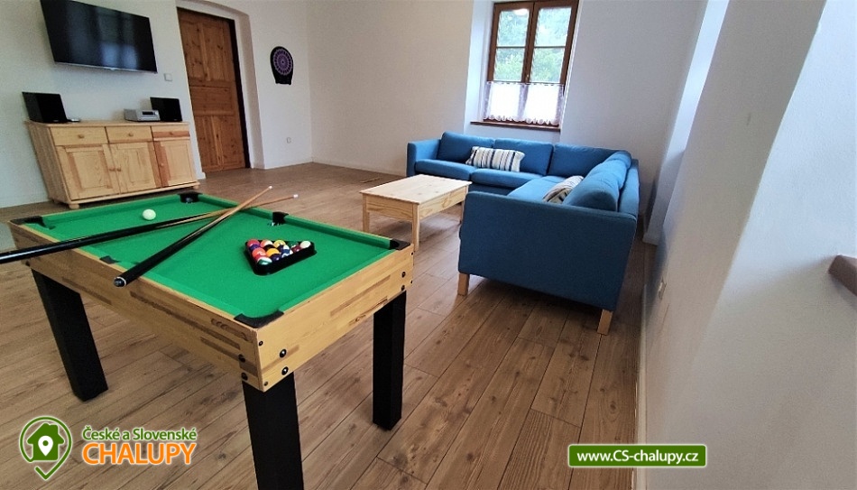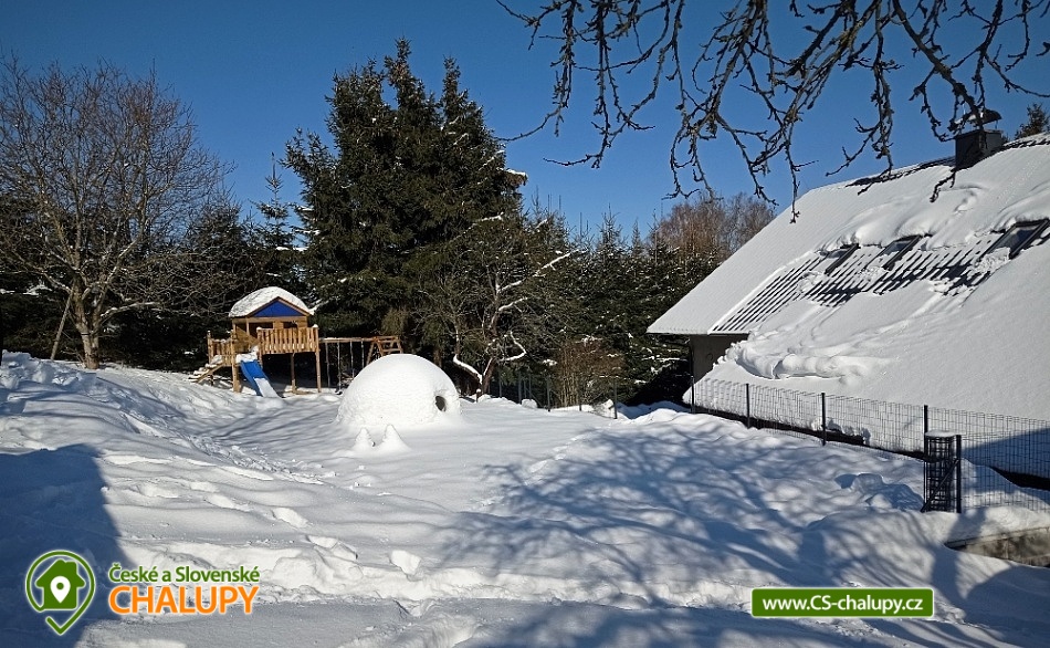 Chalupa s bazénem a saunou nedaleko vyhlášeného střediska Dolní Morava. Poloha v malebné krajině na rozhraní Orlických hor a Jeseníků v oblasti Králického Sněžníku. Kapacita chalupy je až 17 osob ve 4 ložnicích. POPIS chalupy: Přízemí - prostorná kuchyň s velkou jídelnou, barovým pultem, kachlovými kamny s pecí a troubou, dále hrací koutek pro nejmenší děti. Vedle kuchyně je komora s regály na potraviny. Vybavení kuchyně: myčka, digestoř, elektrická trouba, dva vestavěné elektrické sporáky, dvě ledničky s mrazákem, mikrovlnná trouba, veškeré nádobí, hrnce, příbory. Společenská místnost s TV, prostorným gaučem, stolním fotbálkem a šipkami. V přízemí dále pokoj pro bezbariérové ubytování (2x jednolůžko). Koupelna s WC, vanou a bezbariérovým sprchovým koutem a pračkou se sušičkou. Patro - Pokoj č.1: tři lůžka, komoda, skříň. Pokoj č.2: čtyři lůžka, komoda, skříň. Pokoj č.3: pět lůžek, komoda, skříň. Pokoj č.4: pět lůžek, komoda, skříň. V patře dále 2x koupelna se sprchovým koutem a umyvadlem, 2x samostatné WC s umyvadlem a společná část s knihovnou a prostorem pro hraní stolních her. Vytápění objektu: podlahové topení s elektrokotlem, kamna s pecí na pevná paliva (dřevo) - přikládání z chodby. Zádveří, které slouží jako šatna. Další místnost pak jako kočárkárna/lyžárna. Kola je možné nechávat v garáži hned vedle chalupy. Příjezd je po obecní komunikaci a parkování je připraveno pro 4 auta. Přímo před chalupou je terasa s posezením a grilem. Dále pak je k dispozici trampolína, hrací domek, bazén, badmintonové hřiště. Za oplocenou částí se nachází ovocný sad a potůček s rybníčkem. V okolí doporučujeme: Resort Dolní Morava - nabízí celoročně množství sportovních, zážitkových a adrenalinových aktivit. Léto: Lanovka pro turisty, bikery i paraglidisty, Mamutí horská dráha, bobová dráha, lanové centrum, Disc Golf Park, Power Fan, Big swing, horolezecká věž. V zimě vyhlášené lyžařské středisko. Rozhledny - Val, Klepý, Stezka v oblacích, Křížová hora, Suchý vrch. Zřícenina Nový hrad Hanušovice, Pivovarské muzeum a pivovar Holba. Velké Losiny - zámek, muzeum papíru, termální aquapark. Těšíme se na Vás u nás.