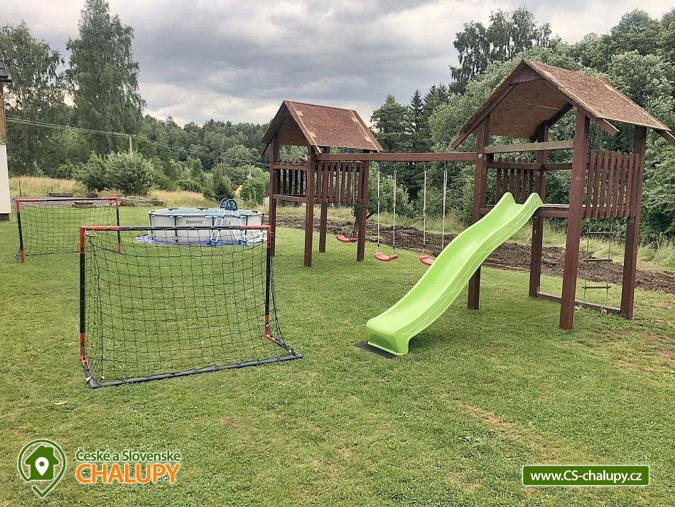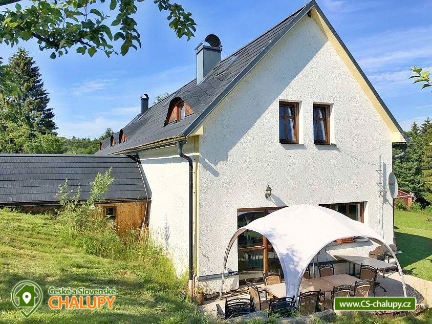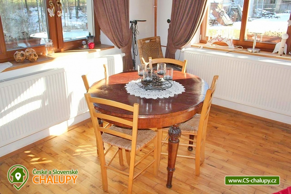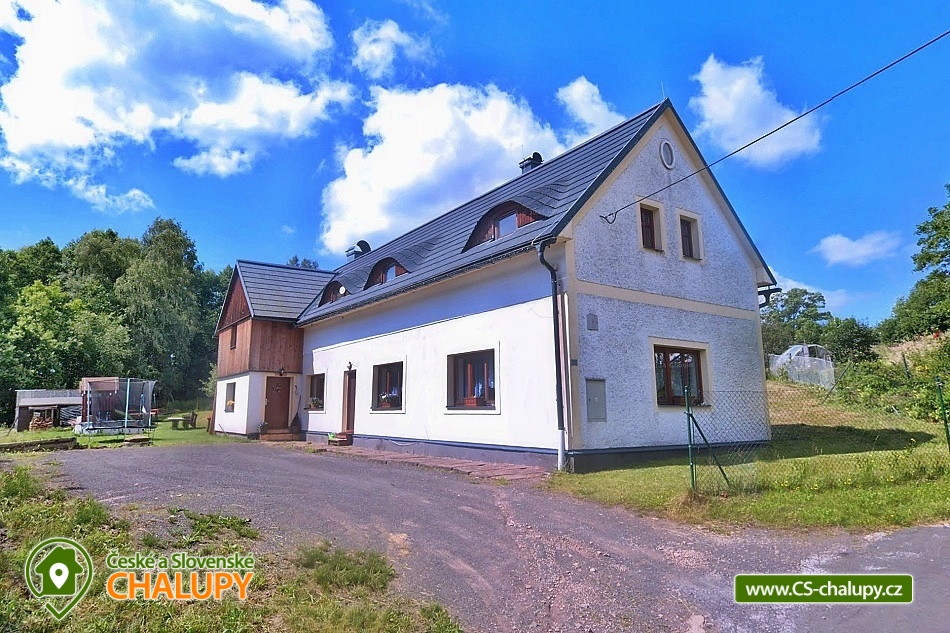 Chalupa s nadzemním bazénem a saunou se nachází na polosamotě v krásné přírodě Krkonoš, poloha nedaleko střediska Prkenný Důl a města Trutnov. Kapacita chalupy je až 16 osob v 6 ložnicích (4x dvoulůžková a 2x čtyřlůžková v podkroví). V přízemí se nachází vstupní veranda, chodba, prostorný obývací pokoj se třemi pohovkami, krbem a televizí a plně vybavená kuchyň s velkou jídelnou (lednička, mrazák, myčka na nádobí, elektrická trouba, varná deska, mikrovlnná trouba, kávovar, toustovač, rychlovarná konvice, nádobí a všechny potřeby k vaření). V přízemí se též nachází sauna a WC. V patře se nachází 4 vybavené dvoulůžkové ložnice, dvě toalety a dvě koupelny. Jedna s vířivou vanou a druhá se sprchovým koutem. V podkroví pak najdete 2 čtyřlůžkové ložnice. K dispozici dětská postýlka, sauna, pračka a Wi-Fi připojení. Vytápění celého objektu je zajištěno automatickým plynovým kotlem, možno si zatopit v krbu v obývacím pokoji a temperovat teplotu v celém objektu, nebo jen tak pro pohodu. Samozřejmostí je elektrický velkoobjemový bojler s teplou vodou. Parkování možné přímo u objektu pro 6 aut. Součástí chalupy je velká zahrada, ideální pro rodinnou dovolenou s dětmi. K dispozici je nadzemní bazén, dětské hřiště se skluzavkou a houpačkami a velká terasa s grilem a posezením. Objekt má dvě ubytovací jednotky. Jedna je pronajímána, druhá slouží k rekreačnímu využití majitele. Každá jednotka má však vše samostatné a oddělené bez omezení. V okolí chalupy se můžete věnovat turistice, cykloturistice, houbaření a lyžování. Tipy na výlety: městské muzeum Žacléř, dělostřelecká tvrz Stachelberg, Albeřické lomy, zřícenina hradu Břecštejn, Modré kameny, Pohádková stezka. Možnosti koupání: aquacentrum Jánské Lázně, jezero Bukówka, koupaliště Petříkovice, koupaliště Retro park Sejfy, koupaliště a bazén Trutnov, rybník Dolce, koupaliště Malé Svatoňovice. V zimě si můžete zalyžovat v nedalekých skiareálech: Žacléř - Prkenný Důl, Petříkovice, Mladé Buky, Janské Lázně. Těšíme se na Vás u nás.