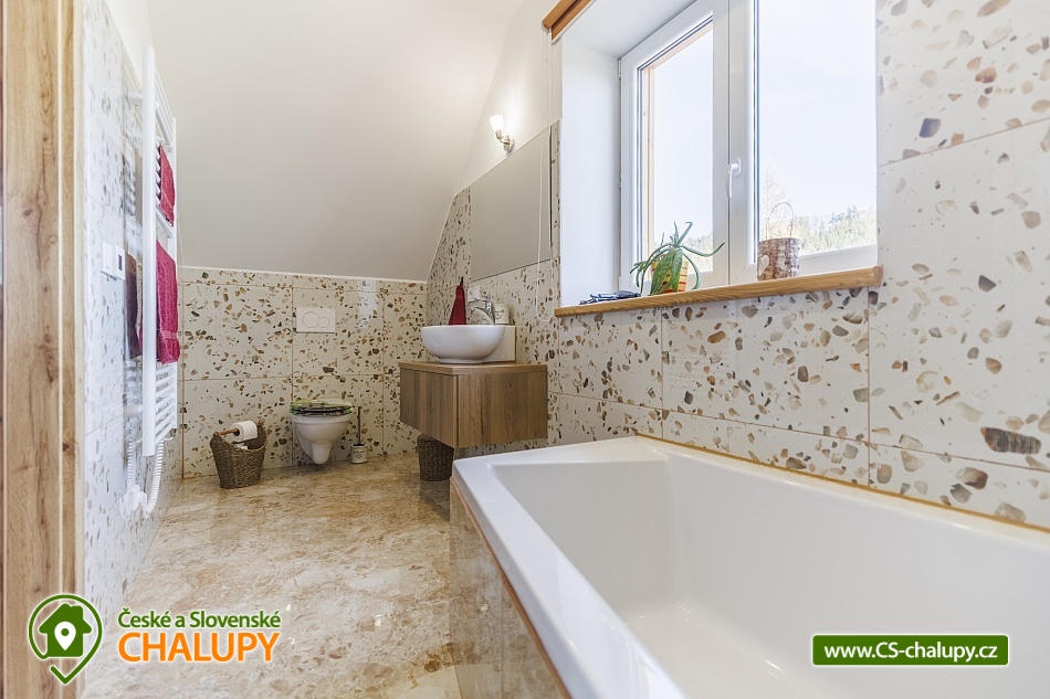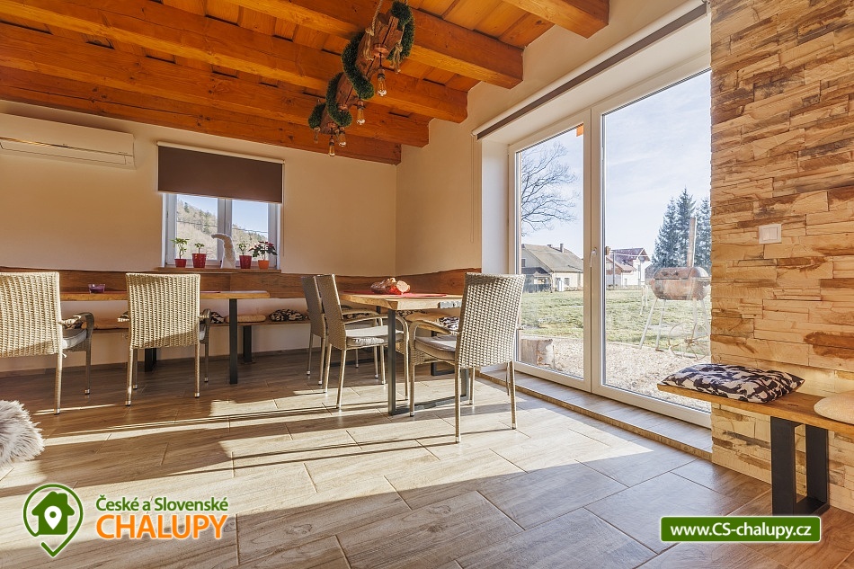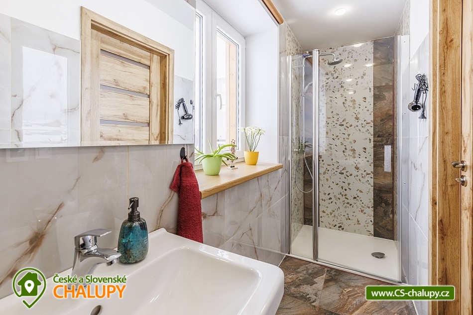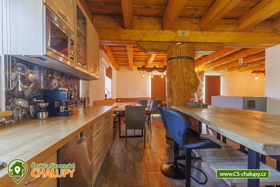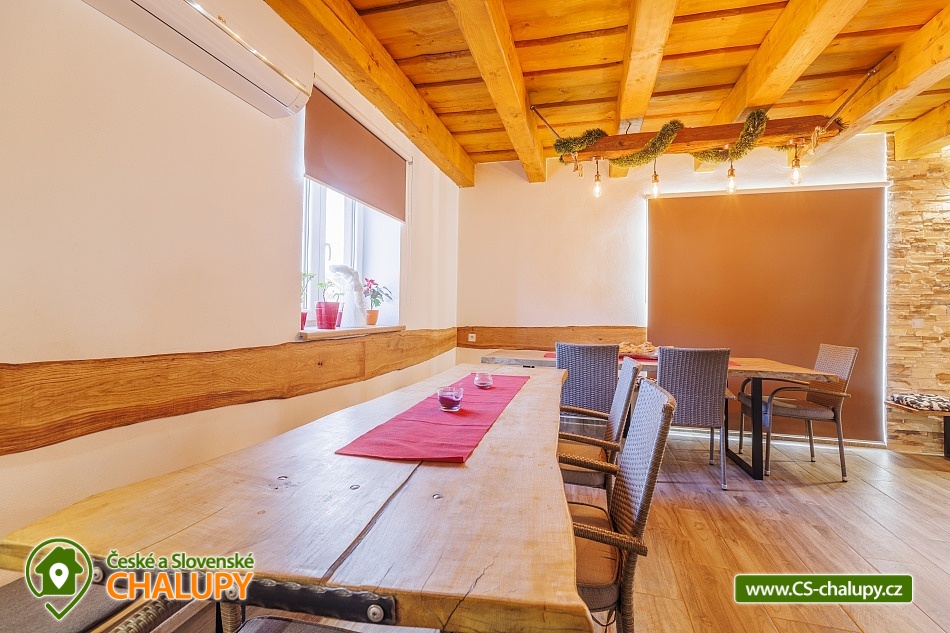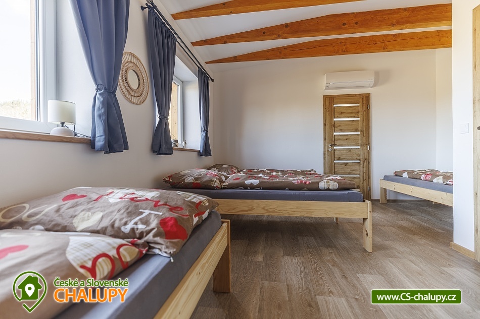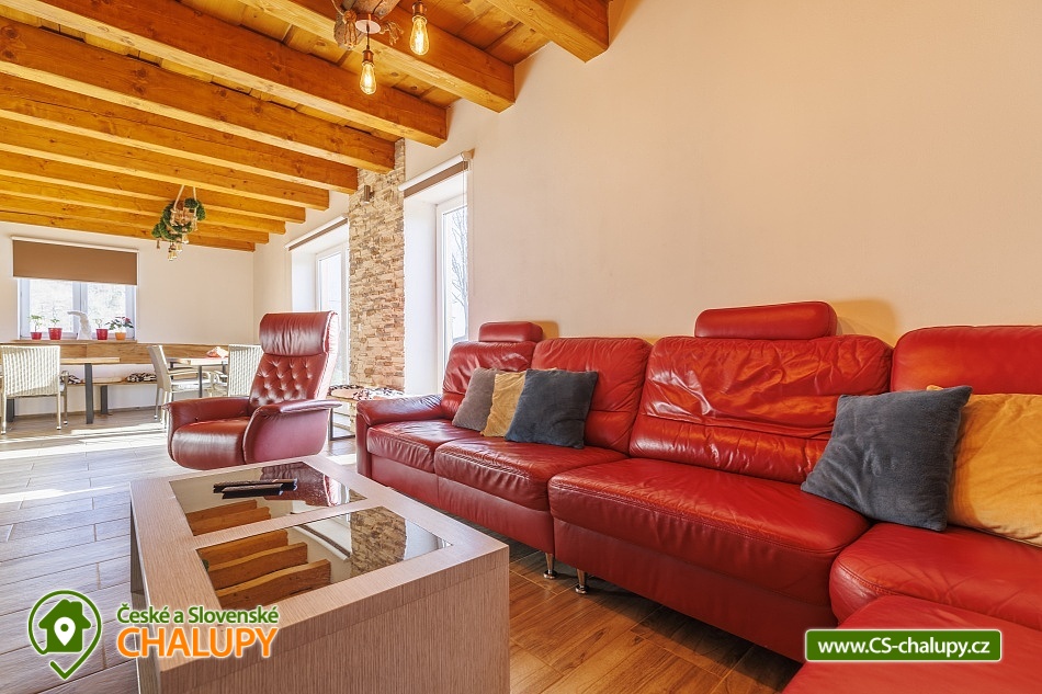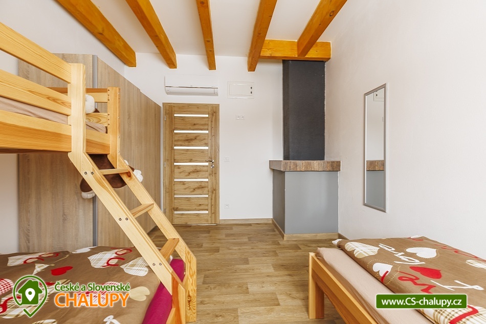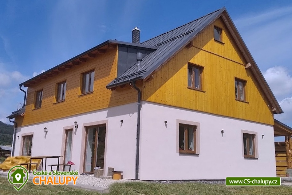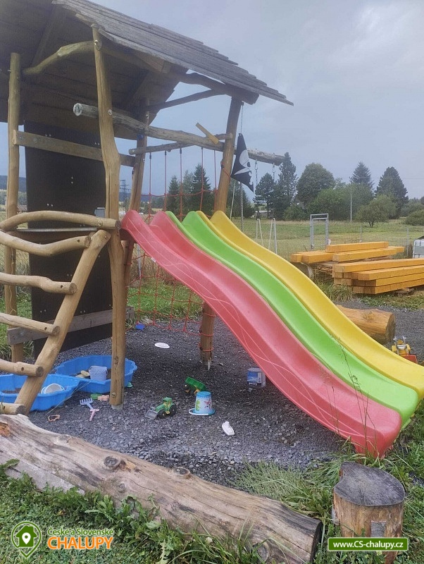 Chalupa s bazénem a saunou u rozhledny Suchý vrch s výhledem na Bukovou horu se nachází v obci Mlýnický Dvůr, která je součástí obce Červená Voda v Orlických horách. Chalupa poskytuje ubytování pro až 26 osob ve čtyřech čtyřlůžkových ložnicích a dvou pětilůžkových. Dvě ložnice mají k dispozici vlastní koupelnu se sprchovým koutem a WC, další dva pokoje mají vlastní vanu s WC. Všechny pokoje jsou klimatizované. V přízemí ke společným chvílím slouží společenská místnost se sedací soupravou, TV, připojení na dataprojektor, krbovými kamny s pecí, jídelním koutem s posezením z jasanového dřeva a plně vybavenou kuchyní (indukční deska, trouba, lednice, mikrovlnná trouba, myčka nádobí, kávovar, rychlovarná konvice a nádobí). Dále je součástí přízemí lyžárna, herna pro děti. V celém objektu je k dispozici WIFI připojení na internet. Sociální zařízení zahrnuje celkem 5 koupelen s WC a jedno samostatné WC. K dispozici je pračka se sušičkou. Vytápění je v přízemí řešeno krbem, podlahovým vytápěním a klimatizací. V prvním patře jsou k dispozici klimatizace (v létě chladí, v zimě topí), koupelny mají vlastní podlahové vytápění. Venku u chalupy je umístěná terasa s venkovním posezením. K dispozici je gril. Děti se mohou těšit na pískoviště, trampolínu a prolézačky. V teplém počasí si lze užívat venkovní bazén. Parkovat lze přímo u objektu. V okolí chalupy možnost turistiky, cykloturistiky, koupání, houbaření, lyžování a běžkování. Mezi možnosti koupání patří např.: přehrada Pastviny, Štíty - Acrobat Park, koupaliště Králíky, koupaliště Jablonné nad Orlicí, koupaliště Ruda nad Moravou, koupaliště Bludov - Vlčí Důl, Lanškroun - Dlouhý rybník, koupaliště Šumperk - Bratrušák, bazén Zábřeh, bazén Mezilesí, rybník Postřelmov, koupaliště Letohrad, bazén Šumperk - Aquacentrum, atd. V zimním období jsou k dispozici lyžařská střediska: Červená Voda - Buková hora, Heroltice, Čenkovice, Šanov, Ovaz Výprachtice, Bystřec, Panorama - Štědrákova Lhota a další. K dalším výletům v okolí láká rozhledna Suchý vrch, muzeum papíru Losiny, vojenská tvrz Bouda, Skiresort Buková hora se spoustou atrakcí: lanová dráha, horské káry, apresski bar, disc golf, elektrokola, koloběžky a pumptrek, Dolní Morava s bobovou dráhou, a lanovým centrem a rozhlednou Stezka v oblacích, Rozhledna Křížová hora, Králický Sněžník, ZOO park v Rapotíně a Letohrad. Těšíme se na Vás u nás.