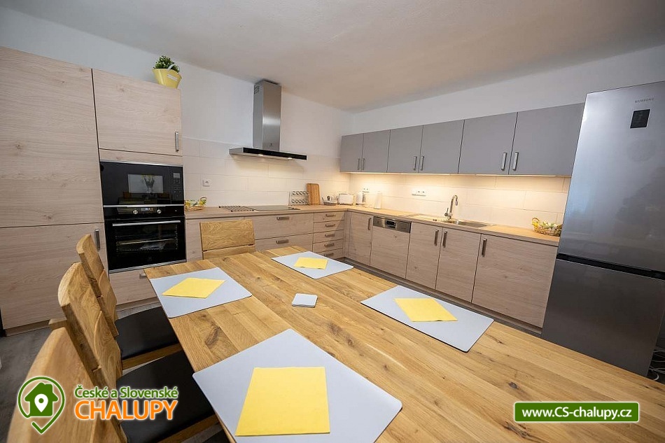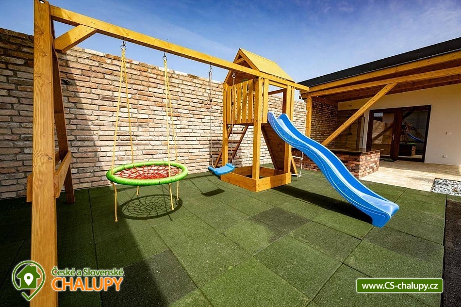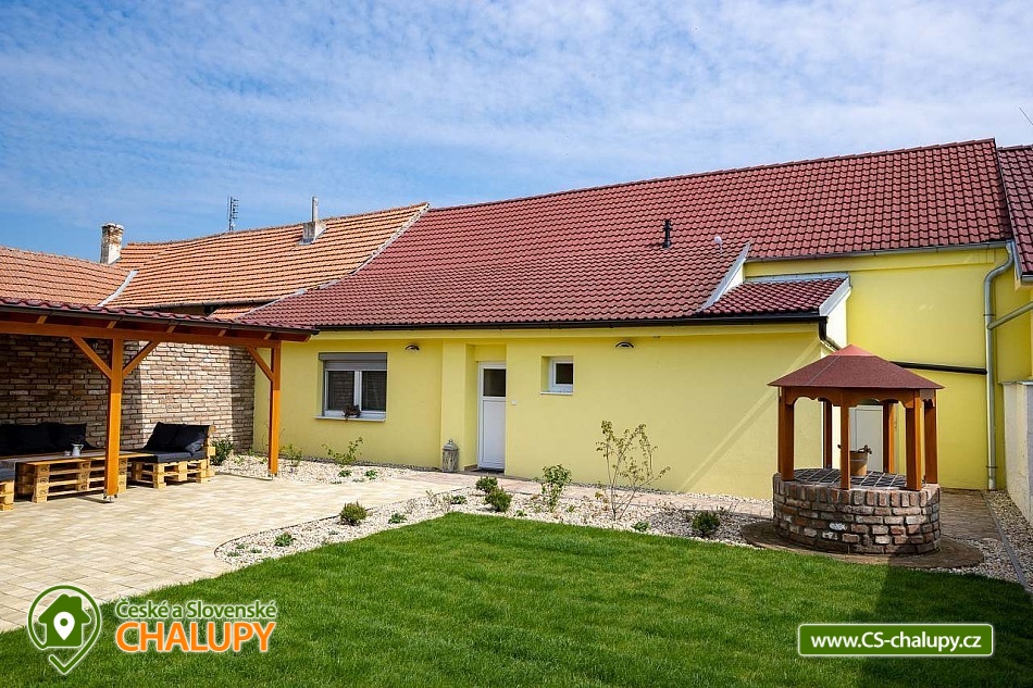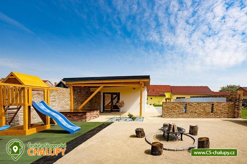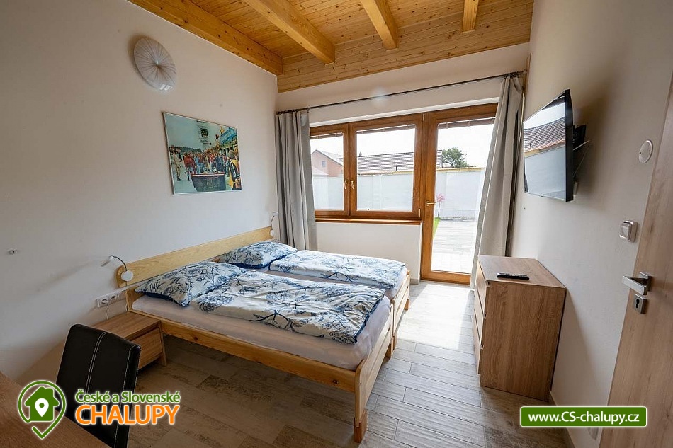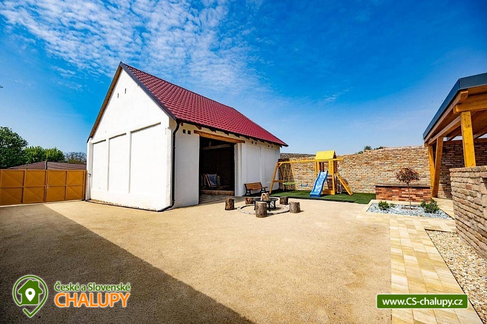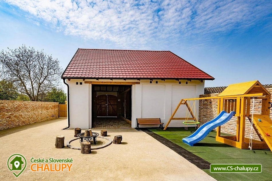 Chalupa s bazénem, saunou a vinným sklepem ve vinařské oblasti nedaleko Pavlovských vrchů, Dyje a Mušovských jezer (Horní nádrž Nové Mlýny) se nachází v malebné vinařské obci Jevišovka. Chalupa nabízí klidné zázemí pro pohodové chvíle na chalupě i aktivní objevování jižní Moravy pěšky nebo na kole. Kapacita chalupy je až 16 osob ve 2 objektech - Ubytování je rozděleno do dvou oddělených budov v rámci jednoho uzavřeného areálu, což zajišťuje dostatek prostoru i soukromí. Hlavní chalupa (až 8 osob) nabízí dva pokoje pro čtyři osoby. Domeček (až 8 osob) ve dvoře disponuje dvěma pokoji pro tři osoby, s možností pronájmu dalšího dvoulůžkového pokoje za příplatek. Všechny pokoje jsou vybaveny vlastní koupelnou s WC a plochou televizí, v celém objektu je dostupné Wi-Fi připojení. Hostům je k dispozici plně vybavená kuchyně s myčkou nádobí, troubou, mikrovlnnou troubou, lednicí, varnou konvicí a kávovarem. Součástí chalupy je také malebný vinný sklep, který vytváří příjemné zázemí pro večerní posezení se sklenkou vína. V letních měsících hosté ocení venkovní bazén, uzavřený dvůr s posezením, gril nebo ohniště a dětské hřiště s houpačkami a skluzavkou. V zadní části pozemku se nachází nově zrekonstruovaná ZÁŽITKOVÁ STODOLA v selském stylu. Součástí je posezení pro 16 lidí, vybavená kuchyně (tekoucí voda, dřez, lednička, myčka, nádobí). Pro chladnější měsíce možnost zatopení v krbových turbo kamnech a k dispozici je také finská sauna. Pro aktivní hosty je k dispozici uzamykatelná místnost pro úschovu kol. Okolí Chalupy nabízí ideální podmínky pro aktivně strávený čas v přírodě i pohodové výlety po jižní Moravě. Díky své poloze v klidné vinařské oblasti si zde přijdou na své cyklisté, milovníci pěší turistiky i vodních aktivit. Ať už preferujete vyjížďky mezi vinicemi, pěší výlety do přírody nebo den strávený u vody, v okolí najdete řadu možností, které můžete snadno kombinovat s návratem do pohodlí a klidu chalupy. Oblíbené výletní cíle: Zámek Mikulov, zámek Lednice, Lednicko - Valtický areál, Termální koupele Láá An der Thaya, Aqualand Moravia, vodní sporty - řeka Dyje, Mušovská jezera, Rozhledna U křížku - Drnholec, Archeopark Pavlov, Pálava - Sirotčí hrádek a Děvičky. Těšíme se na Vás u nás.