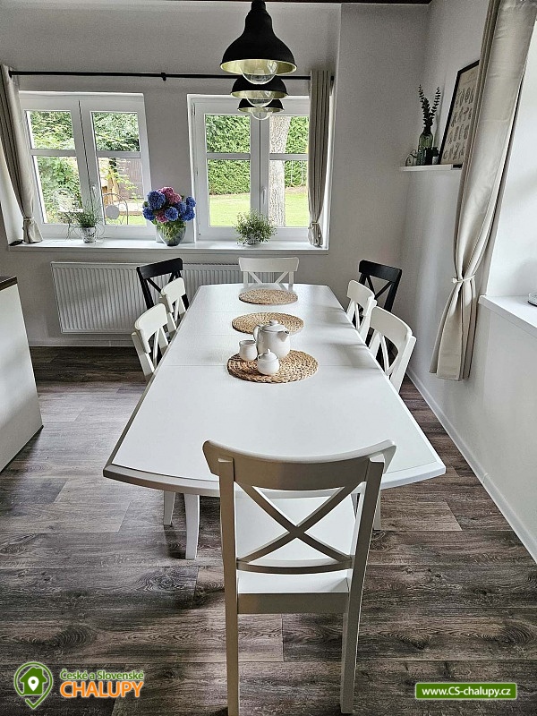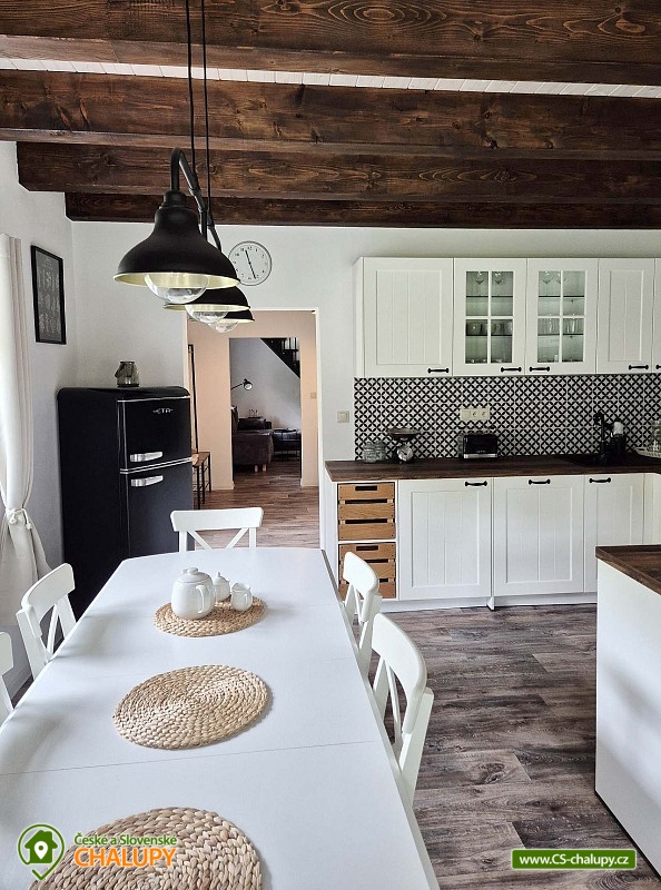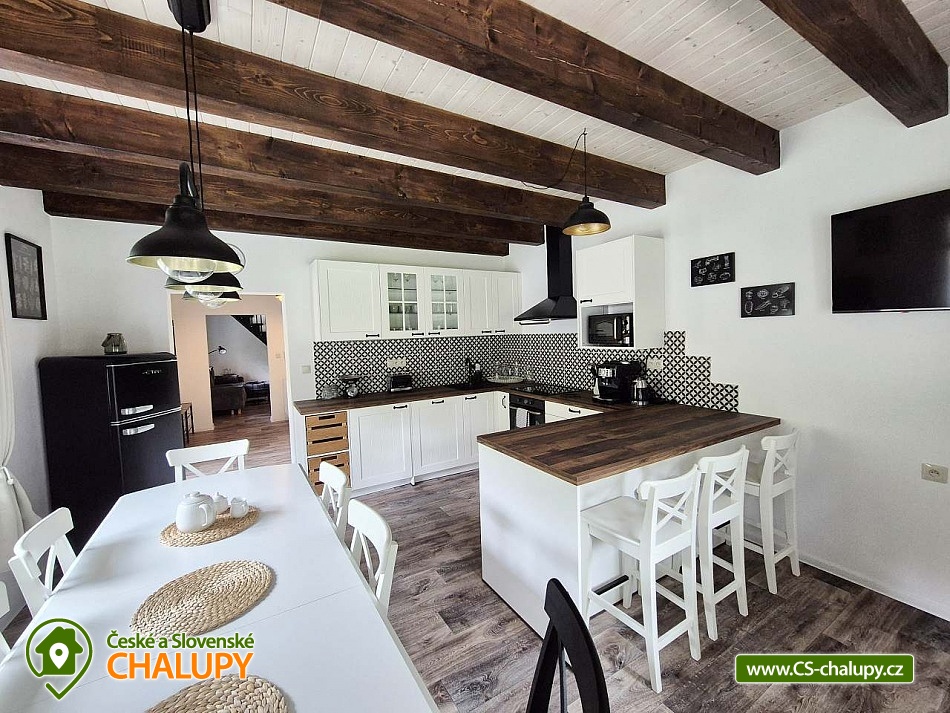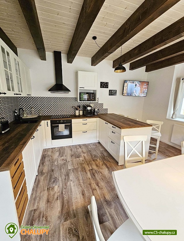 Jihočeská chalupa s bazénem a wellness (sauna + vířivka) nedaleko Zvíkovského Podhradí (hrad Zvíkov) - polosamota u obce Rastory, část obce Podolí, okres Písek. Chalupa spojuje tradiční kouzlo venkova s moderním komfortem. Nabízí dostatek prostoru pro celou rodinu i partu přátel – pohodlně zde přespí až 12 osob ve 4 ložnicích (10 dospělých a 2 děti). Na zahradě o rozloze 500 m2 si užijete nadzemní bazén, vířivku pod širým nebem, stolní tenis i zastřešené posezení s krbem, kde večery voní po grilování. Děti se vyřádí na skluzavce a houpačce, zatímco vy si vychutnáte pohled na potok, který protéká přímo kolem chalupy a vytváří malé jezírko. Uvnitř chalupy na vás čeká útulná kuchyně, která se stane srdcem vašeho pobytu. Najdete tu vše, co potřebujete k vaření i k dlouhým večerním debatám u stolu – od sklokeramické desky a myčky až po kávovar nebo barové posezení. Pro chvíle se sklenkou v ruce je připravena originální „pánská místnost“ s gaučem, televizí a dokonce vlastním výčepem. Pokud se chcete bavit aktivněji, stačí zajít do herny – kulečník, stolní fotbálek i šipky zaručí, že se nudit rozhodně nebudete. K odpočinku slouží čtyři útulné ložnice (3x ložnice pro 2 osoby a 1x ložnice pro 4 osoby plus 2x rozkládací pohovka). V podkroví najdete také finskou saunu, která se postará o dokonalý relax, a koupelnu s vanou, ideální jako ochlazovna po saunování. Pro nejmenší hosty je připravena i cestovní postýlka. Samozřejmostí je Wi - Fi připojení a moderní vytápění (tepelné čerpadlo), takže se tu budete cítit pohodlně v každém ročním období. Ať už hledáte aktivní dovolenou plnou her, nebo si chcete dopřát klidné chvíle u krbu, v sauně či vířivce, vždy u nás najdete přesně to, co potřebujete. Sociální zařízení: koupelna v přízemí (se sprchou) a koupelna v patře (s vanou). Neoplocené parkování před chalupou + 1 zastřešené oplocené parkovací místo. Okolí: hrad Zvíkov, zřícenina hradu Borotín, Turistické rozcestí u Podolského mostu, Boubínský prales a rozhledna Boubín, Přírodní park Česká Kanada, Medvědí stezka na Šumavě. Pro rodiny: Park Fantazium (Roseč), Obludiště Dolní Pěna, Zážitkový park Zeměráj (u Orlické přehrady). Zážitky: Plavba lodí po Orlické přehradě ke Zvíkovu, Otáčivé hlediště v Týně nad Vltavou, Muzeum vltavínů a Chýnovská jeskyně. Těšíme se na Vás u nás.