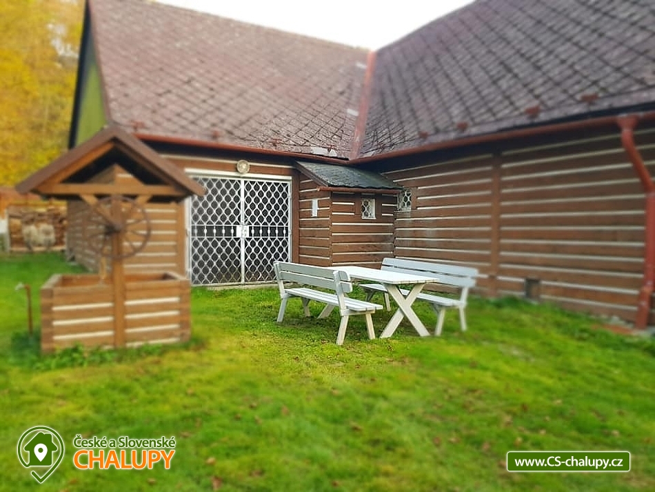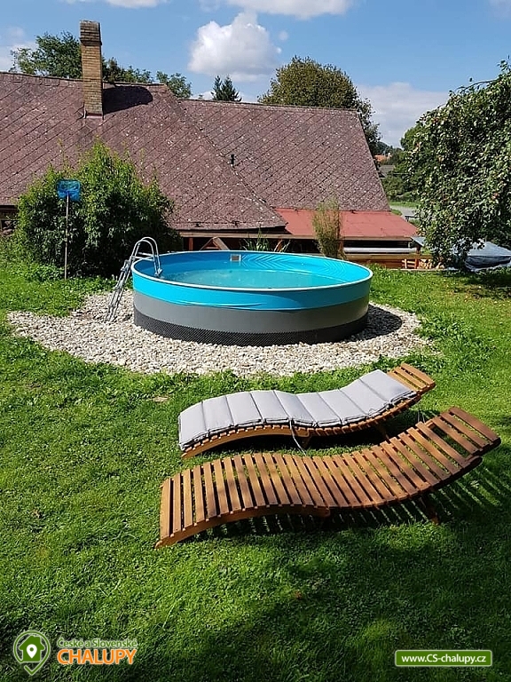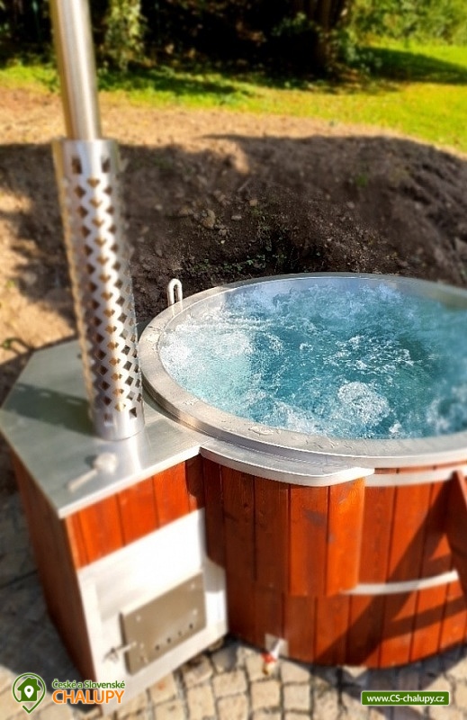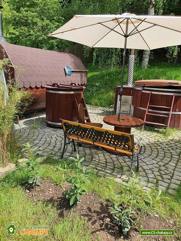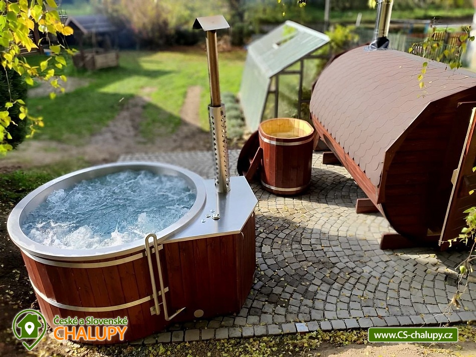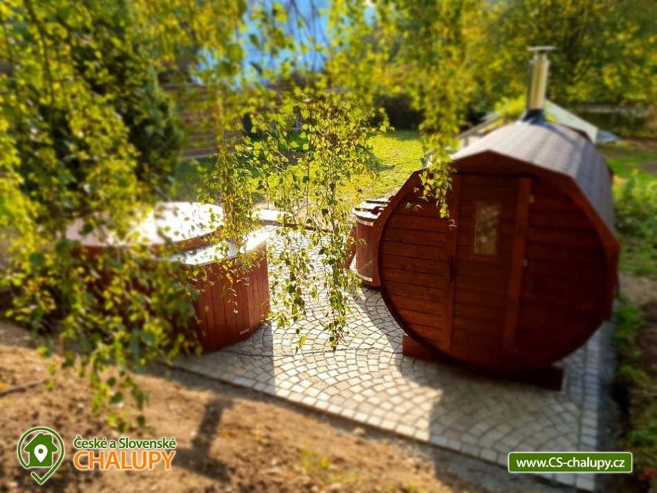 „Chalupa s wellness a bazénem - finská sauna a koupací sud.“
