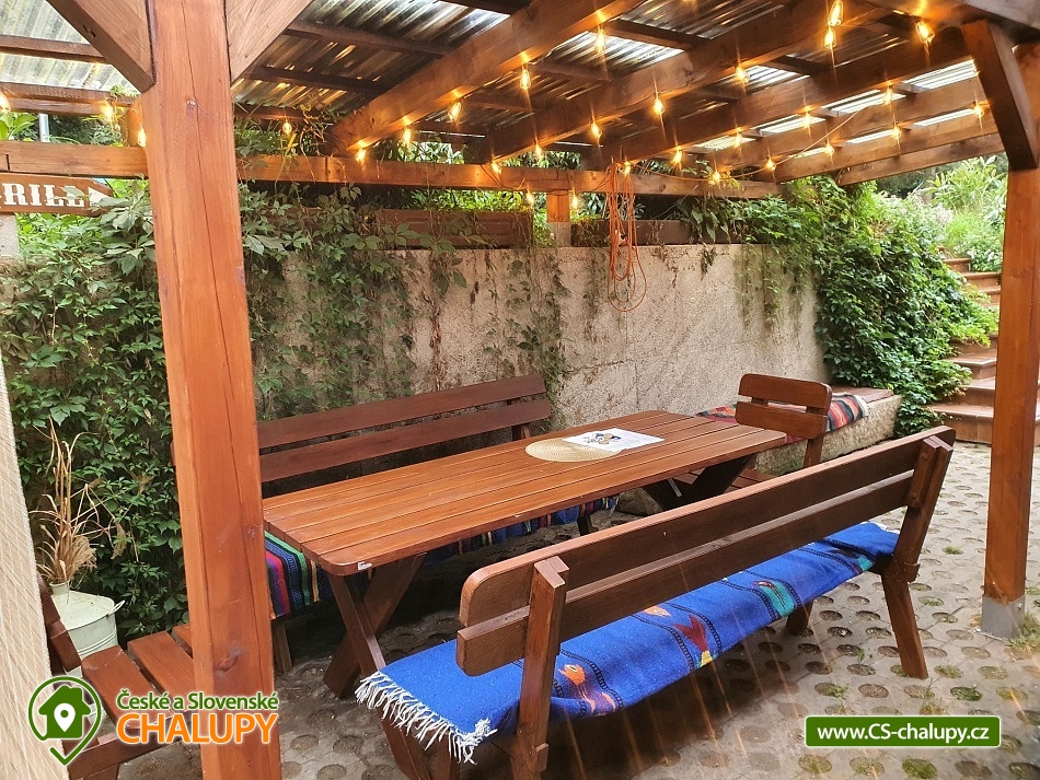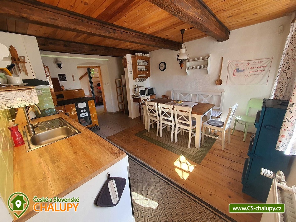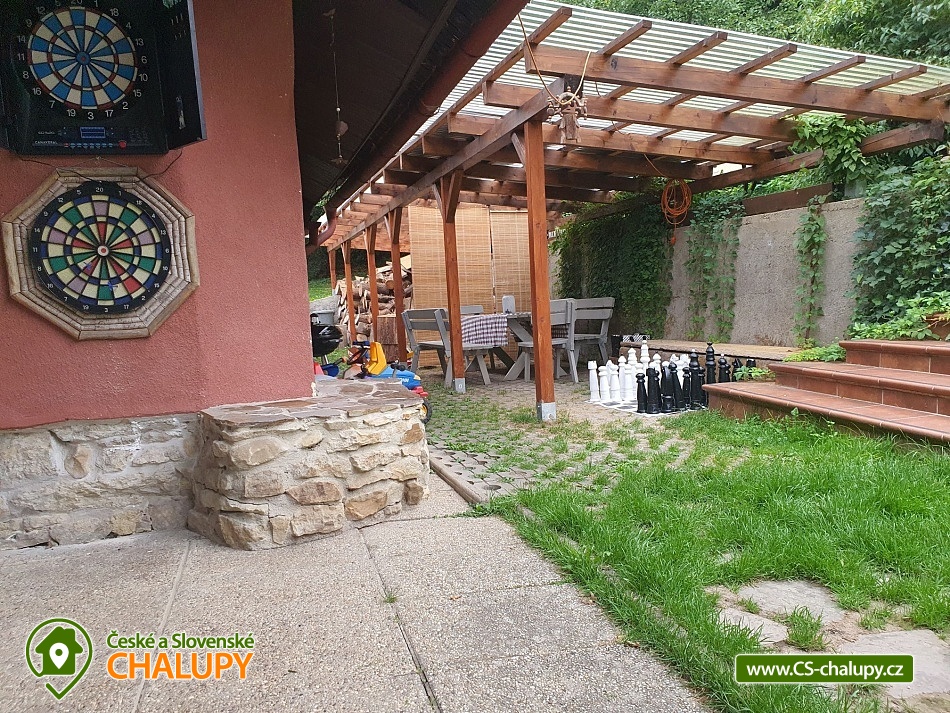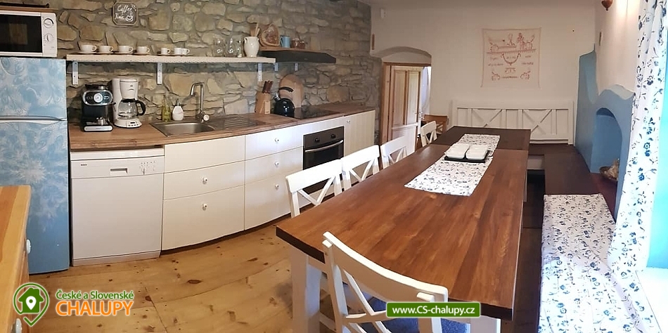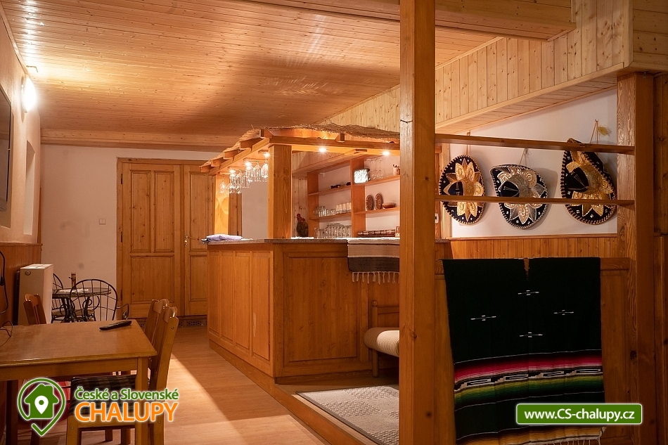 Chalupa s wellness a bazénem (finská sauna a vyhřívaný koupací sud) v obci Třebařov - Zábřežská vrchovina - podhůří Orlických hor. Chalupa nabízí ubytování pro až 22 osob v 6 ložnicích (plus 2 dětské postýlky). Chalupa v blízkosti hradu Bouzov, zámku Úsov, jeskyní Javoříčko a Mladeč, aquaparku v Moravské Třebové. V okolí jsou vhodné terény na běžkování a cyklo i pěší turistiku. V létě obcí projíždí cyklobus. K dispozici je WIFI, velká společenská místnost s barem, kulečníkem, TV a samostatným WC. V baru je k dispozici kávovar, vaflovač, výrobník párků v rohlíku a nádobí. Uprostřed chalupy je dvoreček s letním posezením a velkým plynovým grilem. Rozlehlá zahrada nabízí dostatek prostoru pro děti. V létě je k dispozici venkovní bazén, dětský koutek pro nejmenší, dětské hřiště se skluzavkou, pískoviště, travnaté hřiště na volejbal a badminton, ohniště, ruské kuželky, zahradní šachy a velká trampolína. Wellness: finská sauna sudová 3m s přikládáním z venku, ochlazovací káď, koupací nerez káď 180cm průměr s bublinkami, hydromasáží a osvětlením s kamny na dřevo. POPIS: Apartmán 1 (3x dvojlůžko, 6x jednolůžko, dětská postýlka, 100m2): Lůžka: 5x v podkrovní ložnici (1x dvojlůžko, 3x jednolůžko), 1x dvojlůžko v otevřené podkrovní ložnici, 5x v ložnici v přízemí (2x postel, 1x rozkládací IKEA postel, 1x na peci) + možnost dětské postýlky. Dispozice: Vstupní chodba. Obývací pokoj s krbem. Plně vybavená nová kuchyň s jídelnou (lednice s mrazákem, myčka, mikrovlnka, elektrická trouba, indukce, kávovar). Koupelna (nově vybudovaná koupelna se dvěma umyvadly a sprchou). Samostatné WC. Apartmán 2 (3x dvojlůžko, 4x jednolůžko, dětská postýlka, 75 m2): Lůžka: 5x v ložnici v podkroví (1x dvojlůžko, 3x jednolůžko), 1x dvojlůžko v otevřené ložnici v podkroví, 3x v ložnici v přízemí (rozkládací postel IKEA, 1x postel). Dispozice: Vstupní chodba. Obývací pokoj. Plně vybavená nová kuchyň s kachlovými kamny a jídelnou (lednice s mrazákem, myčka, mikrovlnka, elektrická trouba, indukce, kávovar automatický espresso). Koupelna s WC (nově vybudovaná koupelna s umyvadlem a sprchou). V okolí doporučujeme: Mladějovská úzkokolejka, Mariánská studánka - pěší výlet, Hrad Bouzov, Javoříčské jeskyně, Zámek Úsov, Aquapark Moravská Třebová, Rozhledna Pastýřka a Naučná stezka Vodárenský les. Těšíme se na Vás u nás.