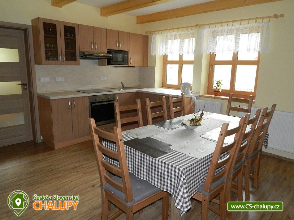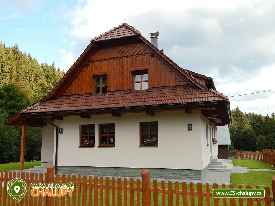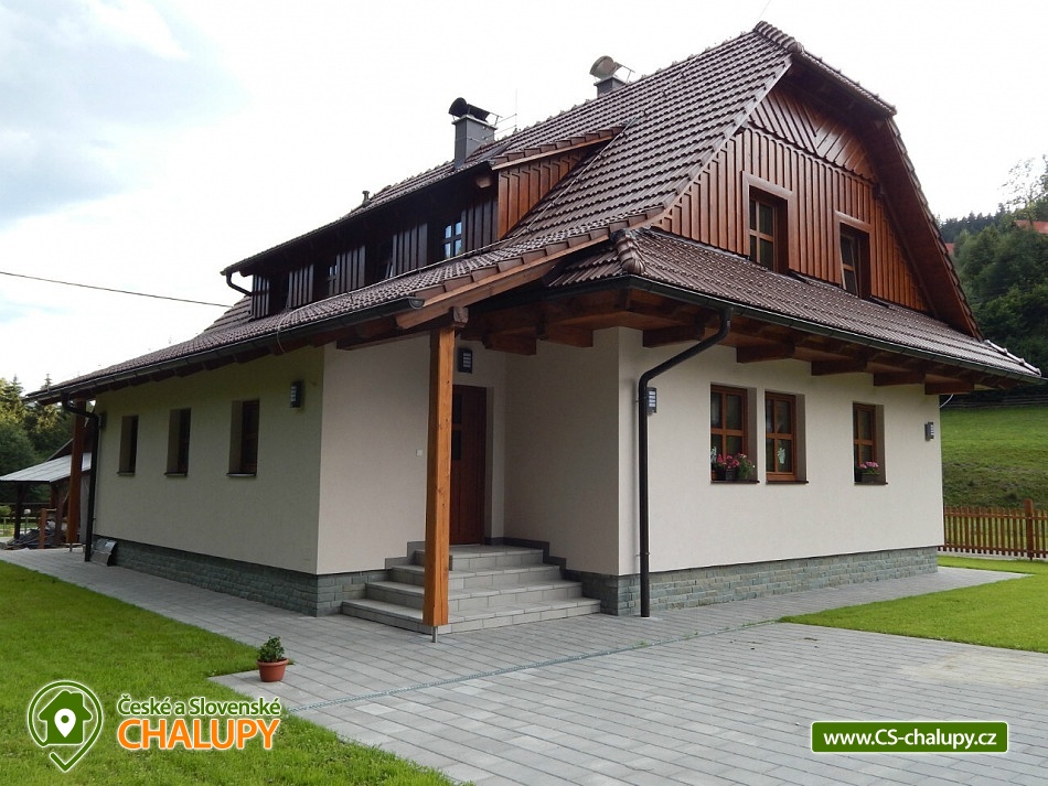Chalupa Beskydy k pronájmu pro až 20 osob ve 2 apartmánech se nachází v Karolince v samém srdci Valašska, západně od centra Velkých Karlovic v malebném údolí zvaném Bzové. Nabízíme i bezbariérové ubytování v přízemí ve velké bytové jednotce, kde se nachází upravená bezbariérová prostorná koupelna, kuchyň s posezením i ložnice v přízemí. V chalupě je celkem 6 ložnic, ubytovat se je možné v malém apartmánu o kapacitě 8-mi lůžek nebo ve velkém apartmánu o kapacitě 12-ti lůžek (popř. obsadit celou chalupu - 20 lůžek). I v případě, že obsadíte pouze malý apartmán budeme garantovat, že zbývající lůžka (chalupa) zůstanou neobsazená a celá zahrada je k dispozici pouze pro Vás. Vaše soukromí a pohodlí je pro nás prioritou. K dispozici je vybavená kuchyň vč. lednice, mikrovlnné trouby, varné konvice, sporáku a dalších elektrických spotřebičů. Chalupa je dále vybavena TV a SAT, DVD přehrávačem a internetem, který je samozřejmě v ceně pobytu. K vytápění lze použít krbová kamna nebo elektrokotel. Součástí objektu je oplocená zahrada, ve které máte možnost venkovního posezení a grilování. Pro vyžití Vašich dětí je pak připraveno pískoviště a houpačka. U chalupy je i prostor pro uložení kol, kočárků nebo lyží. V objektu se nachází celkem 4 sprchové kouty a WC, z toho 1 sprchový kout ve velké bytové jednotce je uzpůsoben pro méně pohyblivé. Parkování je možné přímo u objektu. Pokud patříte mezi milovníky turistiky, cykloturistiky, houbaření nebo lyžování, nebo snad jen chcete poznat život na Valašsku, odpočinout si od každodenních starostí, užít si odpočinku s možností kdykoli vyjít do přírody a přitom být na místě i v zimě lehce dostupném autem, nemůžete si snad vybrat lepší místo. Nabízíme Vám ubytování na rozhraní Javorníků a Beskyd v centru turistiky na Valašsku. V zimních měsících bývá tento kraj hojně navštěvován především lyžaři. Jsou zde lyžařská střediska s moderními vleky. Začátečníci a zdatnější lyžaři mají vytvořeny vhodné podmínky. Zájemci o běžecké lyžování mohou využít různě náročné upravené běžecké trasy. Rádi Vám po příjezdu poradíme. Těšíme se na Vás u nás.