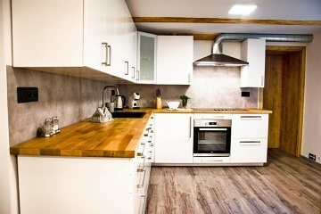 Chalupa Pardubické boudy s wellness se nachází na samotě, uprostřed lesů, na vrcholu Krkonoš (1190 m. n. m.) v bezprostřední blízkosti největšího krkonošského Černohorské rašeliniště a nedaleko od města Janské Lázně. Blízké okolí nabízí spoustu možností pro odpočinek i aktivní dovolenou. Přímo z chalupy si lze užívat výhled na Krkonošskou magistrálu vhodnou pro pěší i cyklo turistiku, koloběžky nebo zimní sporty. V zimním období výhodou blízkost lanovky vedoucí ke Ski areálu Černá hora - Pec pod Sněžkou. Během ubytování se můžete těšit na svěží vůní horského lesa, na relax ve wellness se saunou a vířivkou. Pardubické boudy poskytují ubytování pro 20 osob v sedmi ložnicích. Ložnice se nachází v 1.patře chalupy a nabízí nezapomenutelné výhledy do okolní krajiny. Čtyři ložnice jsou dvoulůžkové, z toho tři s manželskou postelí a jedna s dvěma jednolůžky. Další tři ložnice jsou čtyřlůžkové s manželskou postelí a dvěma jednolůžky. Třetí a čtvrtá ložnice jsou spojené. Dětská postýlka je k dispozici. Pro společné chvíle slouží obývací pokoj se sedací soupravou a smart TV připojenou na internetovou televizi a prostřednictvím bezdrátového připojení se lze připojit na jakékoli vaše zařízení. Součástí chalupy je plně vybavená kuchyň (americká lednice, varná deska s šesti plotnami, trouba, kontaktní gril, mikrovlnná trouba, kávovar na kapsle, mixér a mnoho dalšího vybavení). V celém objektu je k dispozici WIFI připojení na internet. Relaxovat lze ve wellness zóně se saunou pro 6 - 8 osob a vířivkou. Sociální zařízení zahrnuje v přízemí 2x samostatné WC, 1x koupelnu s WC a sprchovým koutem. Dále dva sprchové kouty v přízemí u wellness. V prvním patře jsou další dvě koupelny se sprchovým koutem a toaletami. K dispozici je pračka. Vytápění je řešeno ústředním elektrickým kotlem. Každá z koupelen a wellness zóna mají navíc podlahové vytápění. Venku u chalupy je připraveno venkovní posezení s grilem a krásným výhledem do přírody Národního parku Krkonoše. K dispozici je ohniště. Malí návštěvníci se mohou těšit na dětské hřiště s prolézačkami, klouzačkou a houpačkou. V letních měsících lze parkovat přímo u objektu. V zimním období (zhruba od konce října do poloviny dubna) jsou zajištěna parkovací místa na parkovišti v Jánských Lázních a za poplatek lze zajistit dopravu k chalupě pásovým terenním vozidlem značky Hagglunds. Dále je možné se k ubytování dostat kabinovou lanovkou na Černou horu a ve stylu „expedice Apalucha“ dojít či sjet k chalupě. V okolí Pardubických boud možnost turistiky, cykloturistiky, koupání, houbaření, lyžování a běžkování. V blízkosti jsou také tenisové kurty, lanový park a hřiště. Mezi možnosti koupání patří např.: aquacentrum Jánské Lázně, koupaliště Čistá, koupaliště Retro park Sejfy, Trutnov - Pekelský rybník, aquacentrum Aquacentrum Vrchlabí, rybník Vejsplachy, aquapark Špindlerův Mlýn, přehrada Labská, koupaliště Valteřice, jezero Bukówka, rybník Dolce, bazén Trutnov, atd. V zimním období blízká lyžařská střediska: Černá hora - Jánské Lázně, Košťálka, Skiport - Velká Úpa, Svoboda nad Úpou, Černá hora - Černý Důl, Pec pod Sněžkou, Třešňovka - Horní Maršov, Pěnkavčí vrch a další. K okolním výletům dále láká Černá hora s vyhlídkou a půjčovnou koloběžek, skalní vyhlídka Modré kameny, Stezka korunami stromů Krkonoše, Sněžka, Lanový park v Jánských Lázních, Lázeňská kolonáda v Jánských Lázních nebo Baldův svět a letní tubing Mladé Buky. Těšíme se na Vás u nás.