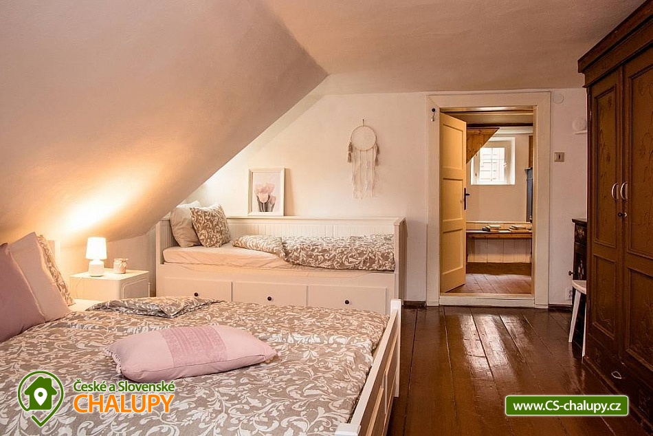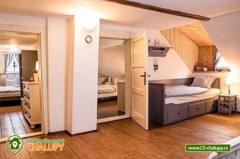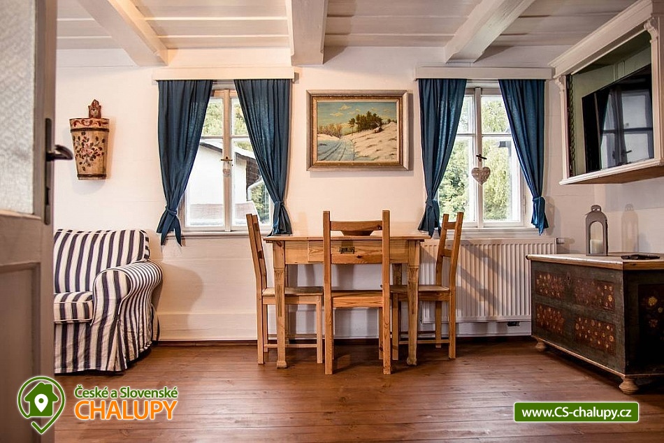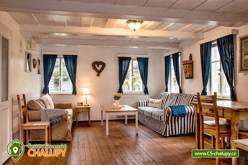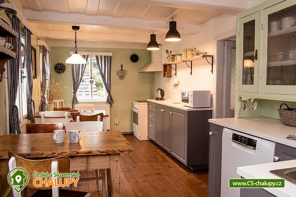 Chalupa České Švýcarsko - stylové ubytování - Přijeďte si odpočinout do chalupy pro až 10 osob, která leží na pomezí NP České Švýcarsko, CHKO Lužické hory a CHKO Labské pískovce. V přízemí chalupy je obývací pokoj s litinovými kamínky, které ovšem zapálíte pouze pro doladění dokonalé atmosféry. Vedle obývacího pokoje najdete kuchyň s elektrickým sporákem, pečící troubou, myčkou, mikrovlnou troubou, mixérem a dostatečným množstvím nádobí. O teplo celé chalupy je postaráno centrálním plynovým topením, které Vám dálkově nastavíme už před Vaším příjezdem. Přijedete tak do krásně vyhřáté chaloupky. V horní části chalupy jsou dvě ložnice. Jedna ložnice je pro tři osoby a druhá pro 5 osob. Dále je v horní prostorné a velmi útulné chodbě s oknem pohodlné rozkládací lůžko pro dvě osoby. V prostorné chodbě najdete velkou lednici a v chod do koupelny s vanou, sprchovým koutem a toaletou. Druhá toaleta v přízemí má samostatný vchod. Zadními dveřmi vstoupíte na rozlehlou zahradu, kde je zahradní posezení pod slunečníkem, nebo ve stínu vzrostlých jabloní. K dispozici je zahradní gril a ohniště. Přímo ze zahrady vstoupíte také do prostorného sklepa, kde pohodlně uložíte až 10 kol nebo lyží. Chalupa neleží na samotě, ale v poklidné okrajové části Krásné Lípy. Máte proto možnost dojít pěšky na nákup, zajít na točené pivo v místní hospůdce, nebo do pivovaru Falkenštejn přímo na náměstí Krásné Lípy. Pár kroků do kopce, Vás bude dělit od nekonečných luk a lesů. Nespočet kouzelných míst a výhledů Českého Švýcarska potkáte po několika málo kilometrech autem či na kole. Z vysoké lesnatosti a zároveň minimálního osídlení budou nadšeni turisté, cyklisté, běžkaři a vlastně všichni. České Švýcarsko je krajinou překrásných vyhlídek, skalních mostů, bran a rozhleden. Pár tipů od nás: Pravčická brána, skalní hrad Šaunštejn, hrad Tolštejn, rozhledna Jedlová, Kyjovské údolí, most Bastei nebo např. Dolský mlýn. Těšíme se na Vás u nás.