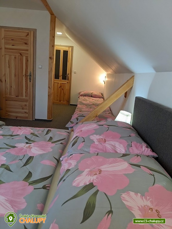 Chalupa Český ráj na břehu rybníka v krásném prostředí Českého ráje, poloha u vstupu do nádherného údolí vedoucího k hradu Kost s názvem Plakánek. Čeká na vás ubytování ve 2 až 4 lůžkových pokojích s vlastní koupelnou, společná kuchyň, společenská místnost, zahradní sezení s výhledem na rybník a vlastní vstup do vody. Chalupa je ideální pro ty, co hledají klid a pohodlí. Máme k pronájmu 4 pokoje v patře a 1 apartmán v přízemí. Každý pokoj má svou koupelnu se záchodem, sprchou a umyvadlem. Pokoje jsou v zimě vytápěné a v létě jsou chlazené stropní cirkulací studené vody (tzn. bez hluku a nepříjemného studeného vzduchu, který způsobuje klasická klimatizace). POPIS: Pokoj č.1 - Jediný čtyřlůžkový pokoj s koupelnou, kde najdete jednu manželskou postel a dvě válendy. Výhled do zeleně. Pokoj č.2 - Dvoulůžkový pokoj s koupelnou a s možností přistýlky na rozkládacím gauči pro jednu dospělou osobu nebo dvě děti. Výhled do zeleně. Tento pokoje se nachází vedle pokoje č.1 a pronájem obou pokojů může být vhodný i pro rodinu. Pokoj č.3 - Třílůžkový pokoj s koupelnou a střešním oknem. Jedna manželská postel a jedna válenda. Nachází se vedle pokoje č.4. Pokoj č.4 - Třílůžkový pokoj s koupelnou a střešním oknem. Jedna manželská postel a jedna válenda. Nachází se vedle pokoje č.3. Apartmán - Dvoulůžkový apartmán se nachází v přízemí. Dvě lůžka, jídelní stůl s židlemi, gauč, šatní skříně, kuchyň s vybavením včetně sporáku, mikrovlnné trouby, toustovač, remoska, lednice, základní nádobí. Společné prostory - K dispozici je kuchyně s nádobím, lednice, sporák, dále společenská místnost s televizí, jídelní stoly, venkovní terasa s výhledem na rybník a trávník, ze kterého je po schůdkách vlastní vstup do vody. V celé chalupě je k dispozici Wi-Fi internet. Okolí - Z okolí je krásný výhled na lovecký zámeček Humprecht, začíná zde cesta romantickým údolím Plakánek lemovaného skalními útvary, po které se dostanete až k nejzachovalejšímu gotickému hradu u nás - hrad Kost. Znáte pohádku "S ČERTY NEJSOU ŽERTY"? A mlýn Máchala? Toto půvabné stavení se stále funkčním kolem zde v obci také naleznete. V okolí dále zámky: Humprecht, Mnichovo Hradiště, Hrubá Skála, Hrubý Rohozec, Dětenice se středověkou krčmou, Sychrov a Staré Hrady. Těšíme se na Vás u nás.