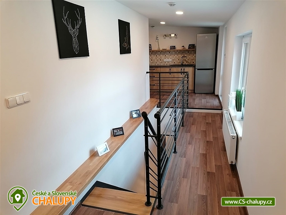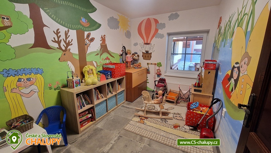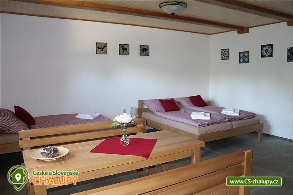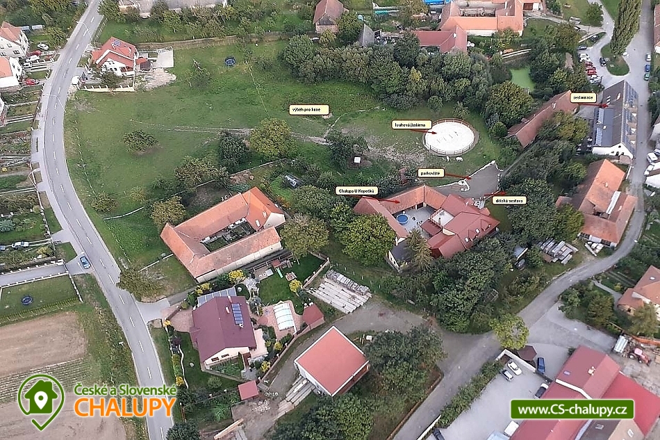 Chalupa s bazénem a saunou na okraji CHKO Moravský kras v malebné obci Petrovice. V blízkosti chalupy je ohrada pro koně s kruhovou jízdárnou. Chalupa poskytuje ubytování pro až 20 osob ve 4 apartmánech. POPIS: 1. apartmán v přízemí (pro 6 osob) je rozdělen na ložnici s manželskou postelí + 1 plnohodnotným lůžkem a pokoj s dvoupatrovou postelí a jednolůžkem. Pokoj je vybaven koutkem s minibarem, rychlovarnou konvicí a zrcadlem. Dále pak jídelní stůl s lavicemi a TV. Výhled na dětskou sestavu s houpačkami a skluzavkou na zahradě plus ohniště. 2. apartmán v 1. patře (pro 5 osob) je rozdělen na ložnici s manželskou postelí + pokoj s dvoupatrovou postelí a plnohodnotným lůžkem. Pokoj je vybaven koutkem s umyvadlem, zrcadlem, minibarem a rychlovarnou konvicí. Jídelní stůl s lavicí a židlemi, TV. S krásným výhledem na dětskou sestavu s houpačkami a skluzavkou, ohniště a kruhovou jízdárnu. 3. apartmán v patře (pro 5 osob) je naprosto totožný s apartmánem číslo 2 jen zrcadlově otočený. 4. apartmán v patře (pro 4 osob) se nachází přes chodbu naproti horní kuchyňce a vedle koupelny. Je stejně tak vybavený a totožný s apartmánem č. 2 a č. 3. V pokoji je však pouze dvoupatrová postel čili apartmán pojme pouze 4 osoby. Dětské postýlky a přebalovací pult k dispozici. V chalupě se nachází 2 prostorné koupelny, 3 WC a pisoár v technické místnosti. První koupelna s původními klenutými stropy se nachází v přízemí rozdělena do dvou částí. Zadní část koupelny je vybavena 1x WC, sprchový kout, umyvadlo, fén, zrcadlo. Druhá část s rohovou vanou a přebalovacím pultem. V přízemí samostatné WC. Horní koupelna - sprchový kout, dvě umyvadla, fén, zrcadlo, WC. Vytápění chalupy je plynové ústřední. Pohodlné parkování přímo před chalupou. Kompletně vybavená kuchyně v přízemí je vyrobena z dubového masivu - Velká lednice, myčka, indukční deska, mikrovlnná trouba, horkovzdušná trouba, rychlovarná konvice, toustovač, topinkovač. Kávovar na zrnkovou kávu (káva není v ceně).Společenská místnost (v přízemí) - pohodlné sezení pro 25 osob, smart TV, pohovka. V přízemí se nachází i hrací pokoj pro děti, vymalovaný v pohádkovém stylu. Dlouhá chodba, z které se pohodlně dostane na dvůr, k altánu, pískovišti či bazénu. Dvůr - Altán s posezením spojený s budovou, přes okno již zmiňovaný hrací pokoj. Plynový gril. Venkovní pískoviště. Bazén o průměru 3,6 m (se schůdky) s výhledem na venkovní TV, které je instalováno v bývalém seníku, posezení bylo zrekonstruováno za účelem sledování sportovních přenosů, pohádek nebo jen TV ve větší skupině. V patře - kuchyňský kout, přímo u vchodu na prostornou terasu s posezením, vybavený lednicí s mrazákem, rychlovarnou konvicí a dřezem.Před chalupou dětská sestava s houpačkami a skluzavkou. Ohniště (k dispozici dřevo i opékací jehlice na párky). Možnost zapůjčení chlazení na točené pivo za poplatek. Pingpongový stůl. Finská sauna. V okolí doporučujeme: Lanové centrum Baldovec. Přírodní areál Velká Dohoda (ferraty, lanový park, lanovka, stěna, dětské hřiště, jeskyně). Velké množství značených cyklostezek, singletraily v Jedovnicích. Vodní sporty, rybaření v Jedovnicích v kempu Suchý. Moravský kras - propast Macocha, Sloupsko - Šošůvské jeskyně, jeskyně Kateřinská, Balcarka, Punkevní jeskyně s plavbou po podzemní řece Punkvě, Výpustek. Rudický mlýn. Rudické propadání. V Blansku zámek, muzeum, aquapark + krytý plavecký bazén. V Boskovicích - zámek a hrad, vyhlášené westernové městečko, Synagoga - židovská čtvrť a hřbitov, muzeum, koupaliště s tobogánem, krytý plavecký bazén. Zámek Rájec - Jestřebí.